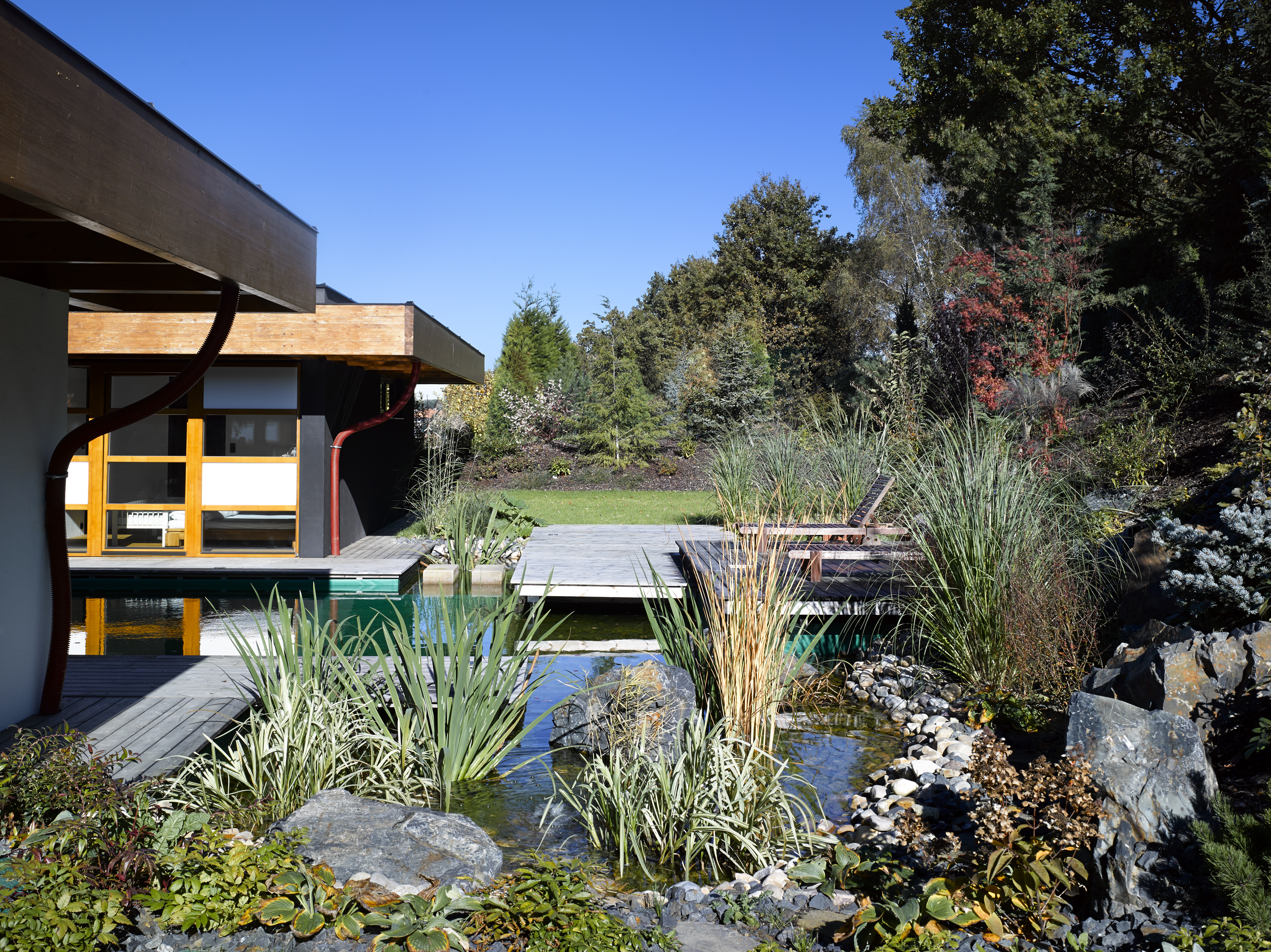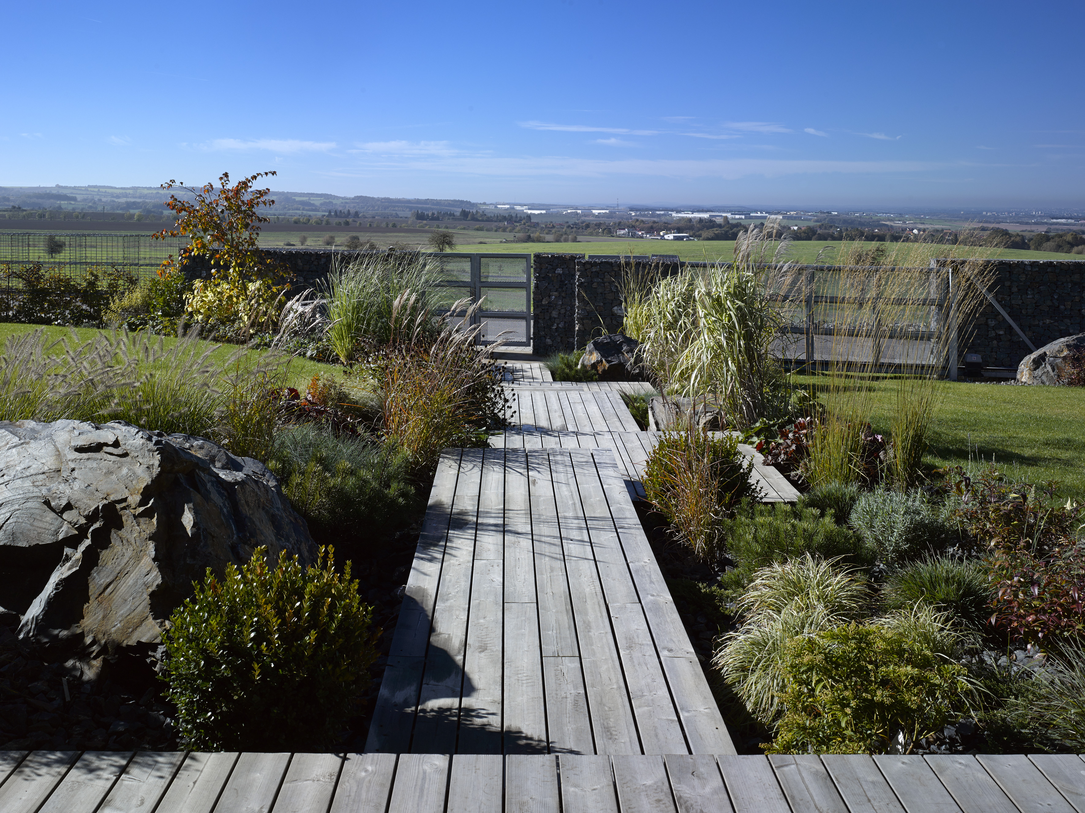 Ano dům jsme navrhli kompletně celý včetně jeho interiéru počínaje od všech doporučených materiálů, barevných kombinací, návrhu designu kuchyně, vloženého atypického mobiliáře až po výběr designu ovladačů elektra, včetně okenního a dveřního kování.. Vyjímkou byla zahrada , specifikace zavlažovacího systému včetně technologie vodní plochy, to je dílem firmy FM - Zahrady. Tomu jsme velmi stručně popsali naši představu jakou atmosféru by měla tato část domu mít a ostatní už bylo zcela na nich. Říkali jsme si že jestliže jsme dostali absolutní důvěru v projektu domu my musíme ji dále předávat i na ostatní řemesla co se na domu podílí.