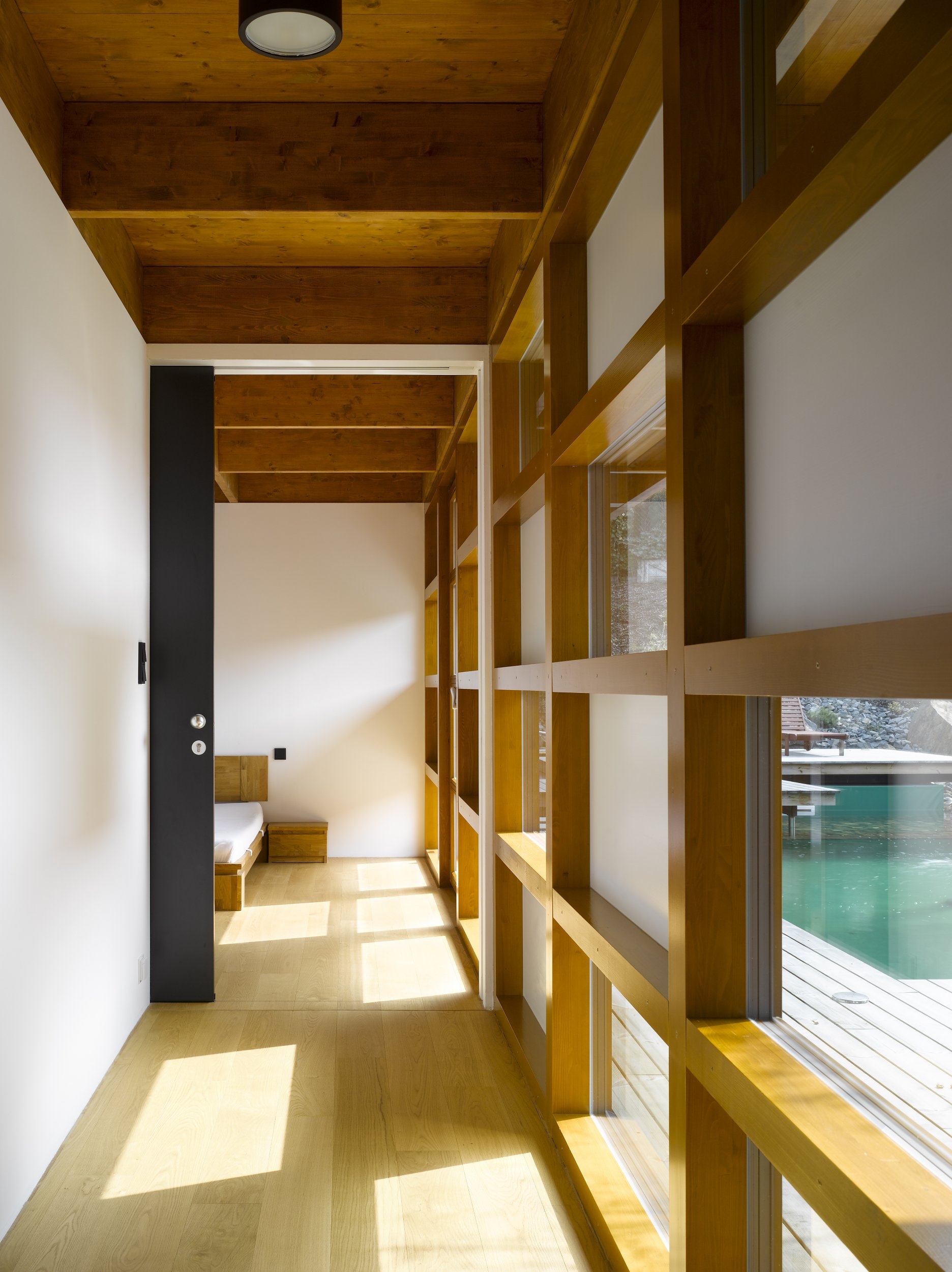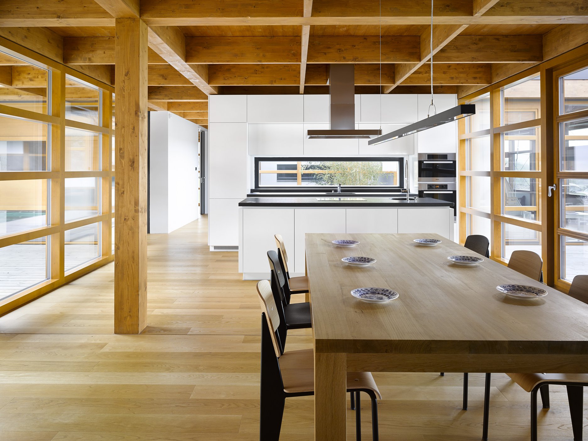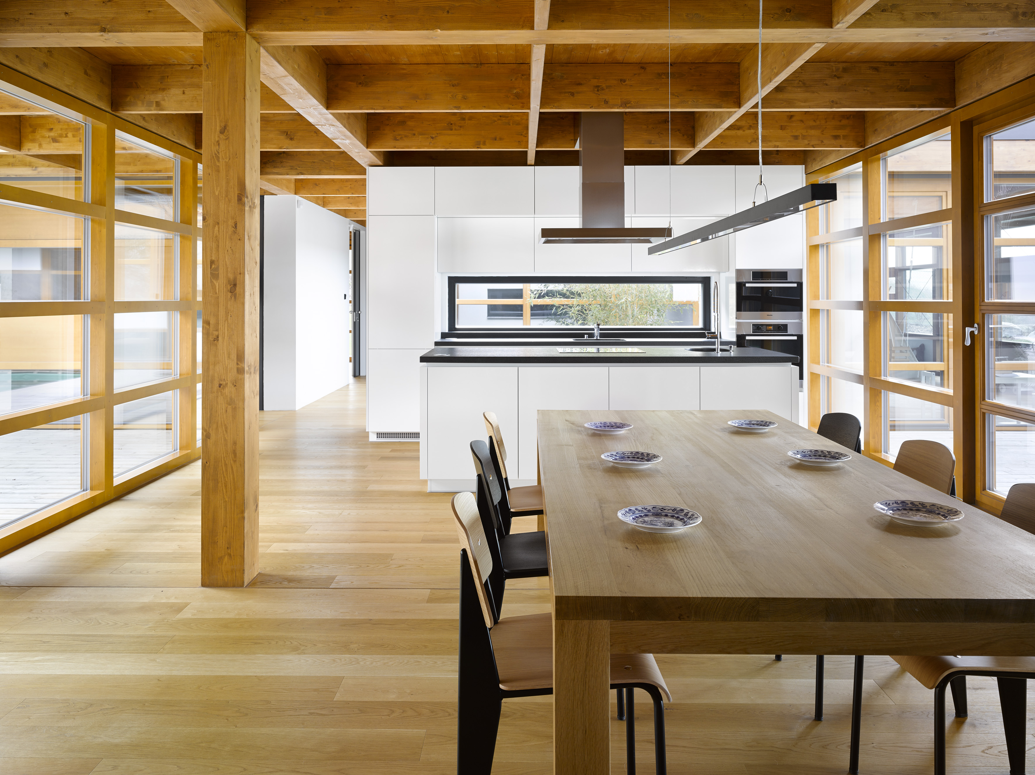 Borovicový skelet byl přitom koncipován tak, aby finální struktura poskytovala prostorovou transparentnost, vyvolávající pocit určité svobody. Přispívá k tomu nejen množství průhledů i prosklených stěn. Signifikantním prvkem jsou stěny s tabulkovou výplní obdelníkového formátu, která domu propůjčuje jistou hravost. Působivých detailů se v interiéru najde celá řada, ale jak sami architekti říkají, není to jednom o výjimečném detailu, ale bezpočtu detailů, které společně tvoří jeden harmonický celek. “Vždy se domy snažíme navrhovat tak, aby řemeslníci neměli šanci nic sami vymýšlet. Naše návrhy přitom nejsou nijak zvlášť rafinované – prostě jsou vytvořené jednoduše a smysluplně. Další věcí je však jestli si připravenou dokumentaci řemeslníci důkladně projdou..." tvrdí architekt Radim Babák.