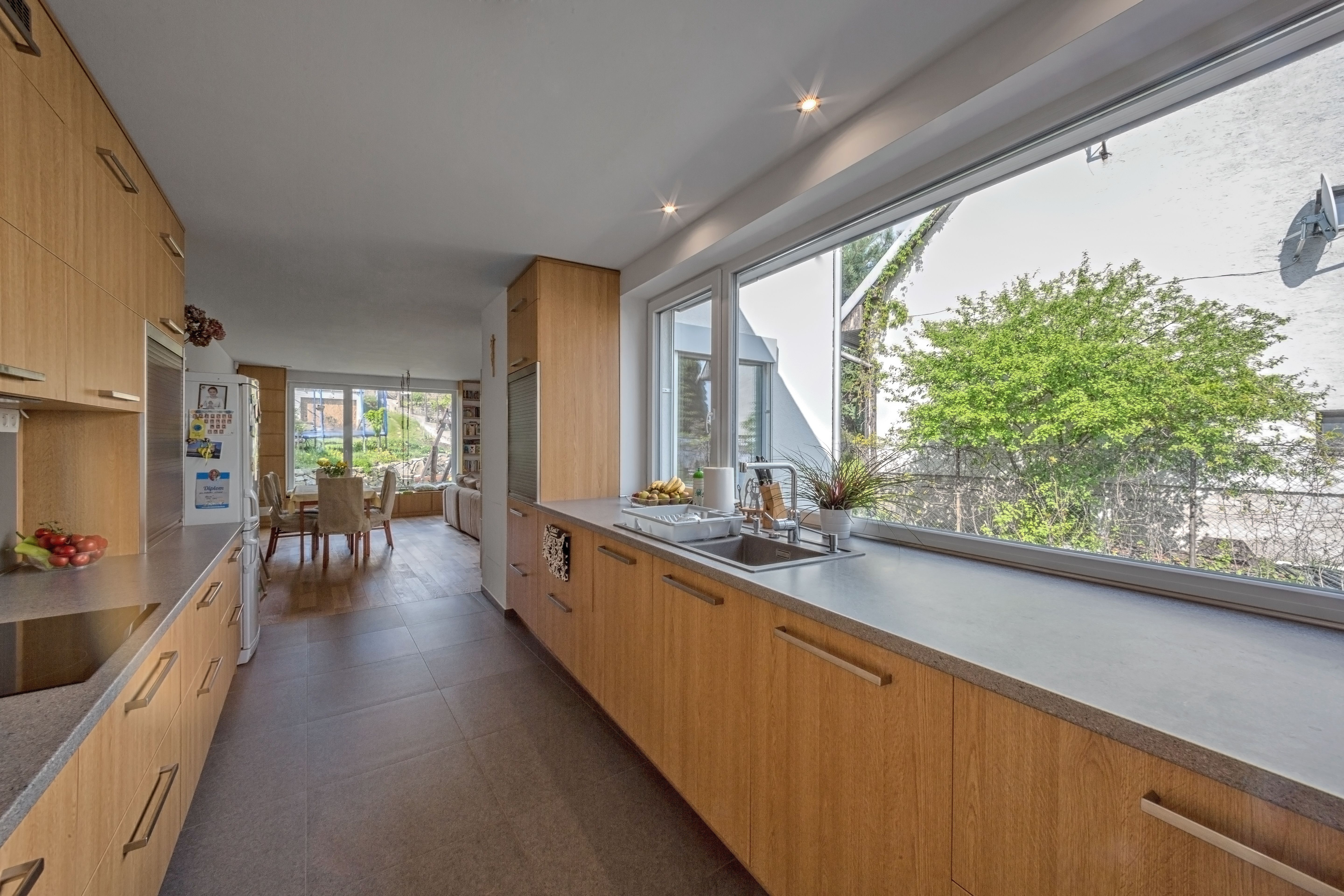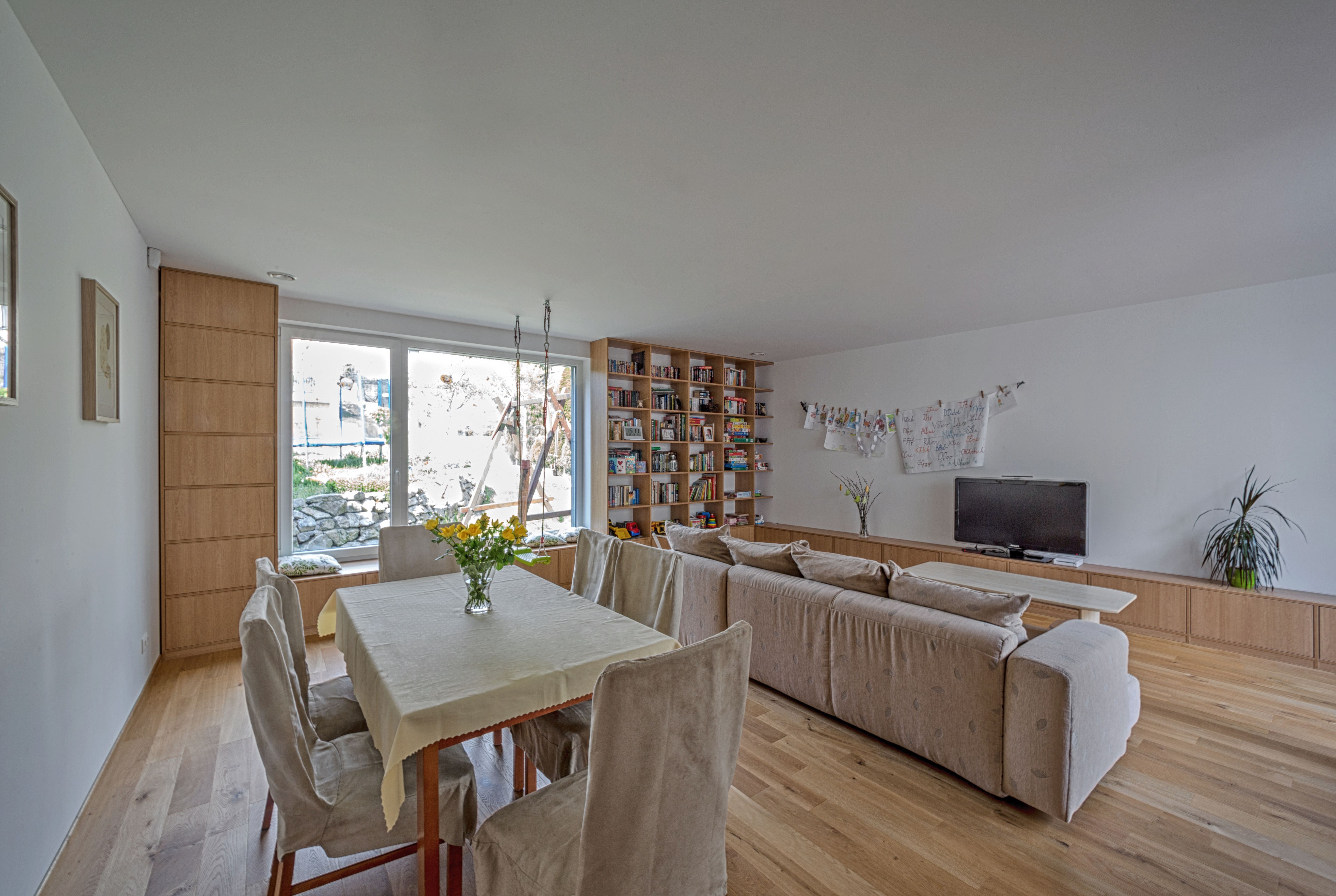 Celý tento kompilát objemov, členitosti, materiálov, zelene na stiesnenom pozemku robia dom z ulice takmer neviditeľný a zdanlivo malý. Zato však vnútorne bohatý, kde exteriér dodáva domu ďalší rozmer.