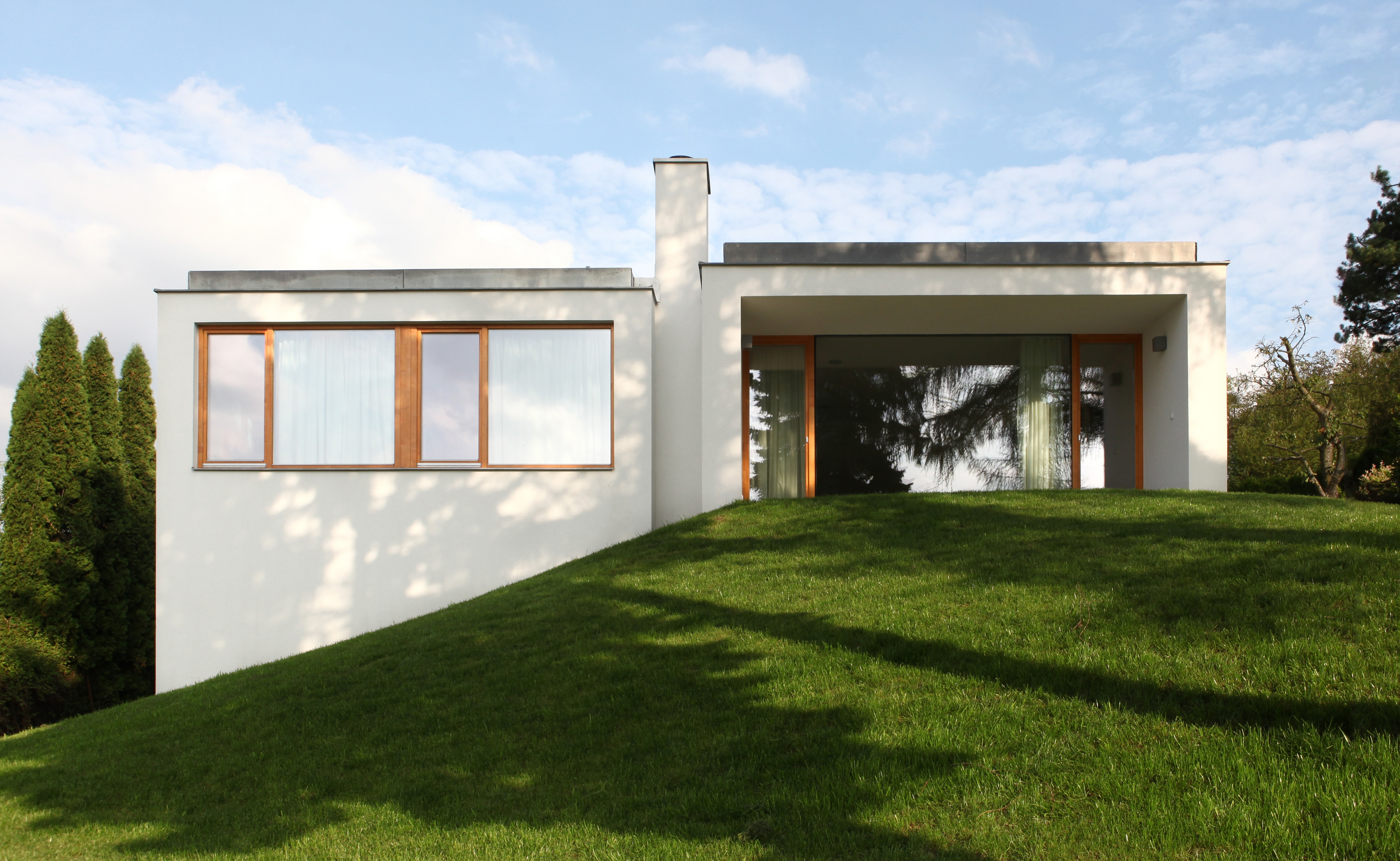 Individuálny rodinný dom. Jednoduchý racionálny návrh. Striedme výrazové prostriedky a predsa zaujímavé autorské riešenie aj s pripomienkou na príklady (nielen) zlínskej moderny.