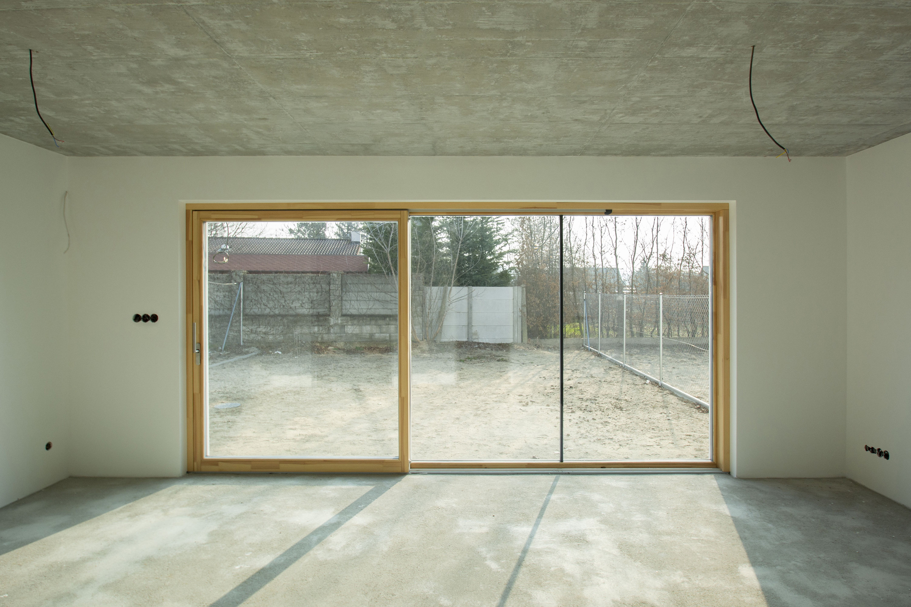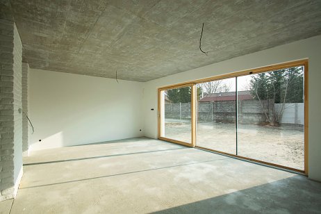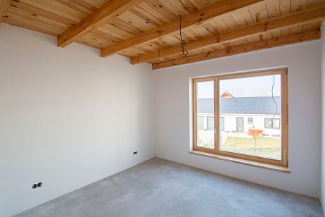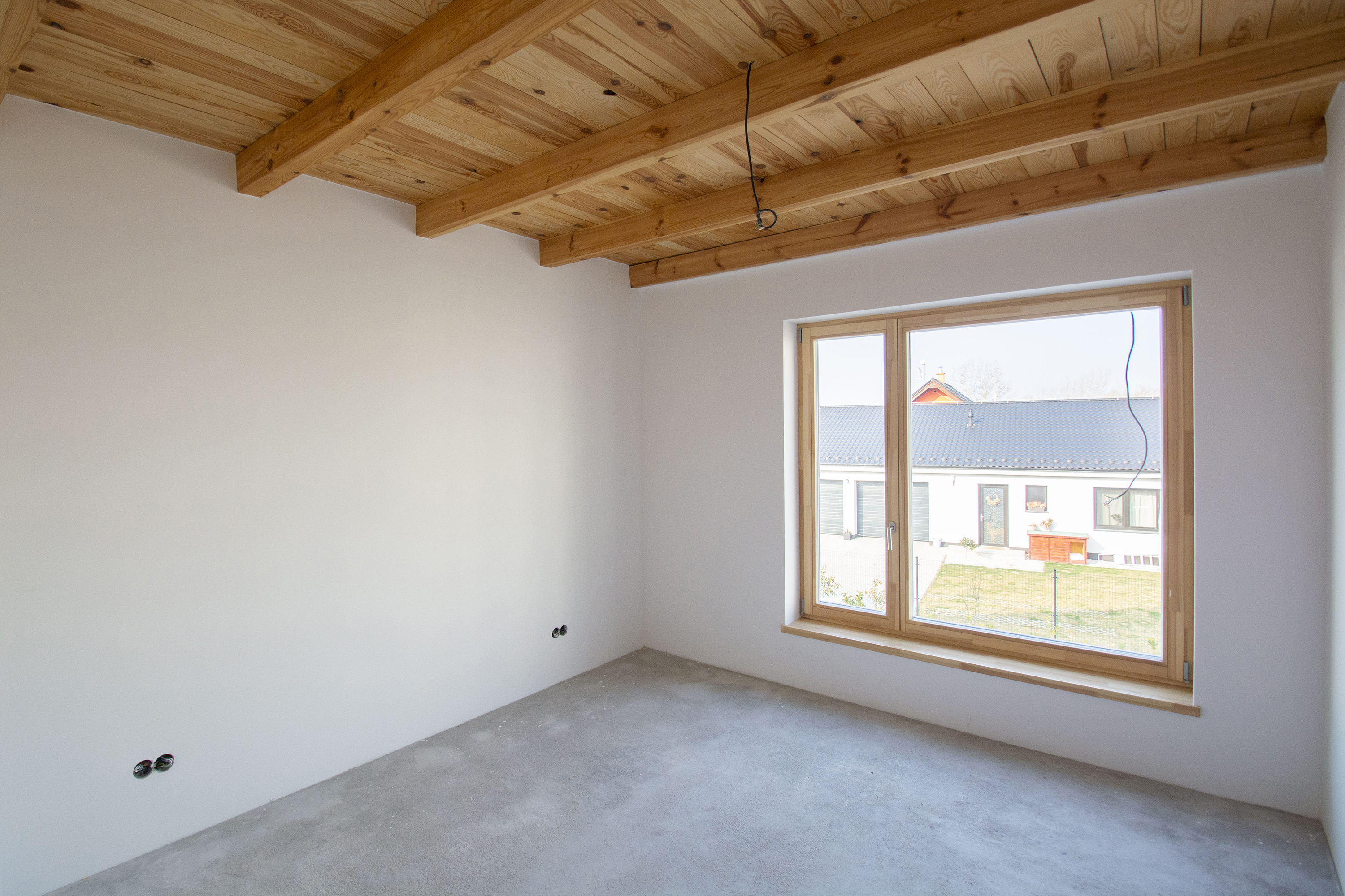 Krov je drevený, so zateplením z minerálnej vlny hrúbky 360mm, so sadrokartónovou kapotážou z vnútornej strany a vláknocementovou krytinou Cembrit Rhombus svetlošedej farby. Klampiarske výrobky sú vyrobené z plechu rovnakej farby. Tvoria ich oplechovania strechy a odvodňovací systém. Okná sú drevené, smrekové, s izolačným trojsklom, s prírodným drevodekorom z exteriéru aj interiéru. Na podlahách je podlahový polystyrén EPS 100S a cementový poter z priemyselne vyrábanej suchej betónovej zmesi s podlahovým vykurovaním. Podlahy v kúpeľniach sú opatrené tekutou hydroizoláciou. Interiérové omietky sú strojové sadrové biele a exteriérová omietka je silikátová, taktiež biela. Pred zasklenými stenami denných častí sú navrhnuté drevené terasy s rozmermi cca 4,5 x 3 metra.