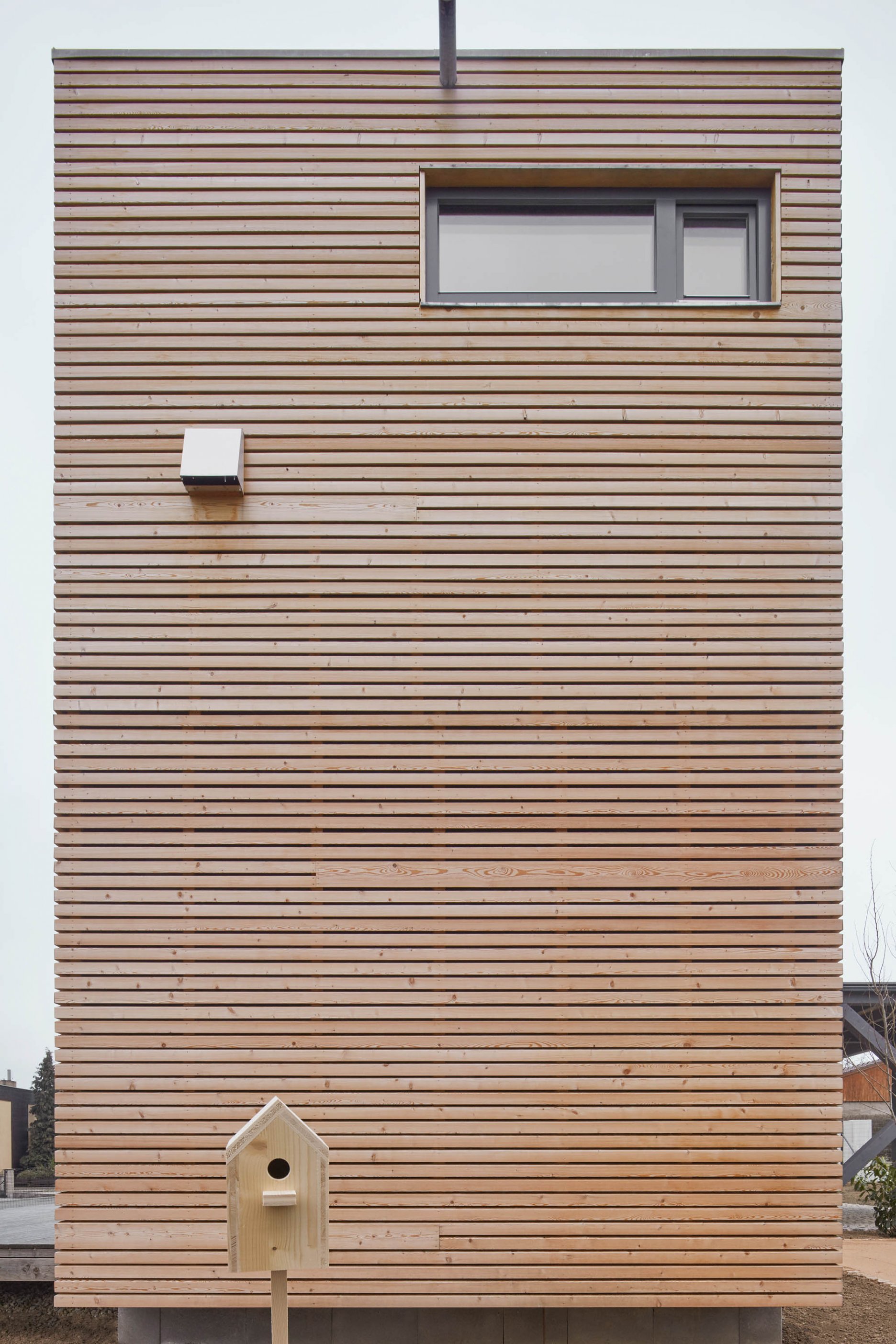 Nosnú konštrukciu domu tvoria lepené drevené támy. Presné frézované spoje v tvare lichobežníka zabezpečujú pevnosť konštrukcie. Objekt je zateplený drevovláknitou izoláciou, fasáda je difúzne otvorená. Pohľadovú vrstvu tvoria horizontálne lamely zo severského smrekovca. Priestor je vykurovaný sálavými panelmi, výmenu vzduchu zabezpečuje vetranie s rekuperáciou, okná sú drevené s trojsklom. Dom je položený na päticu základových pásov.