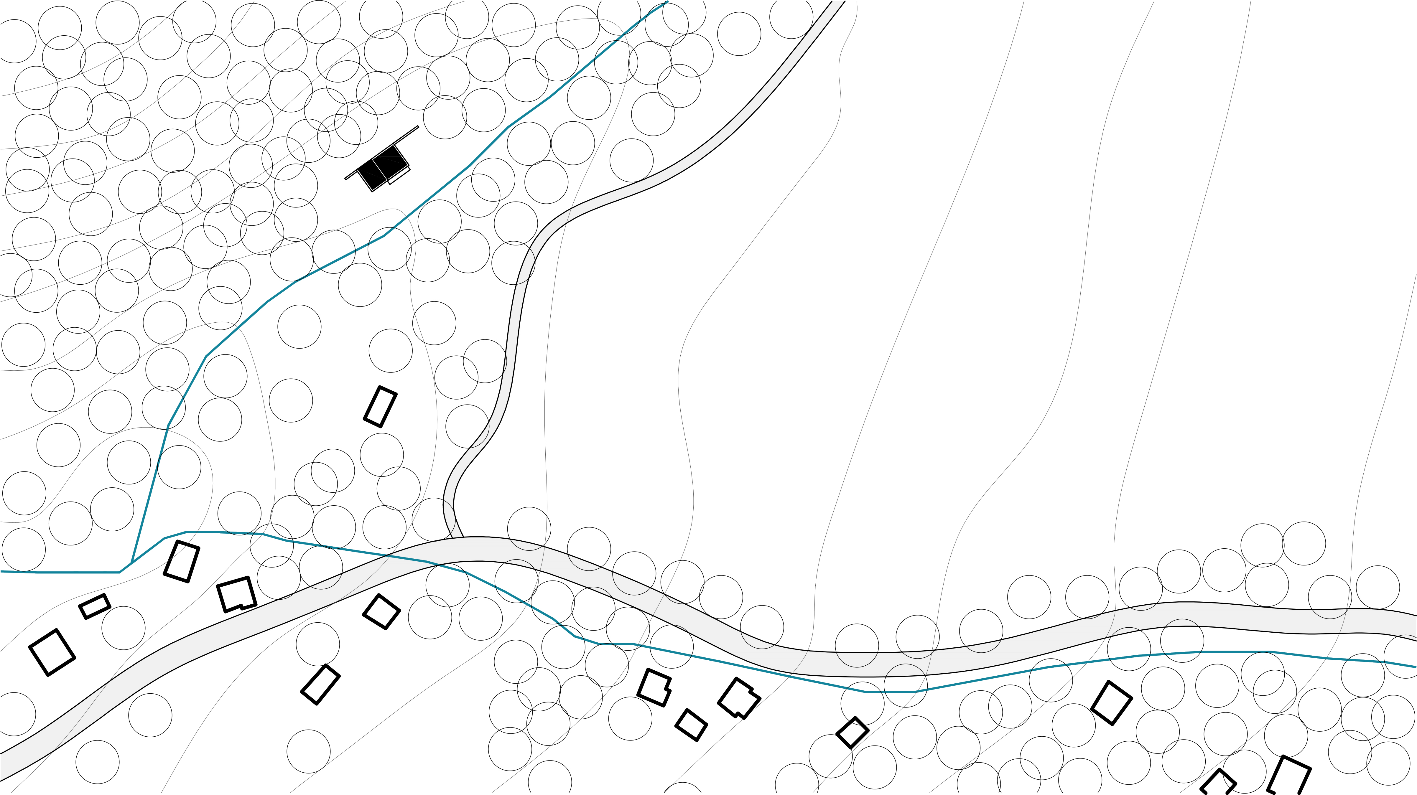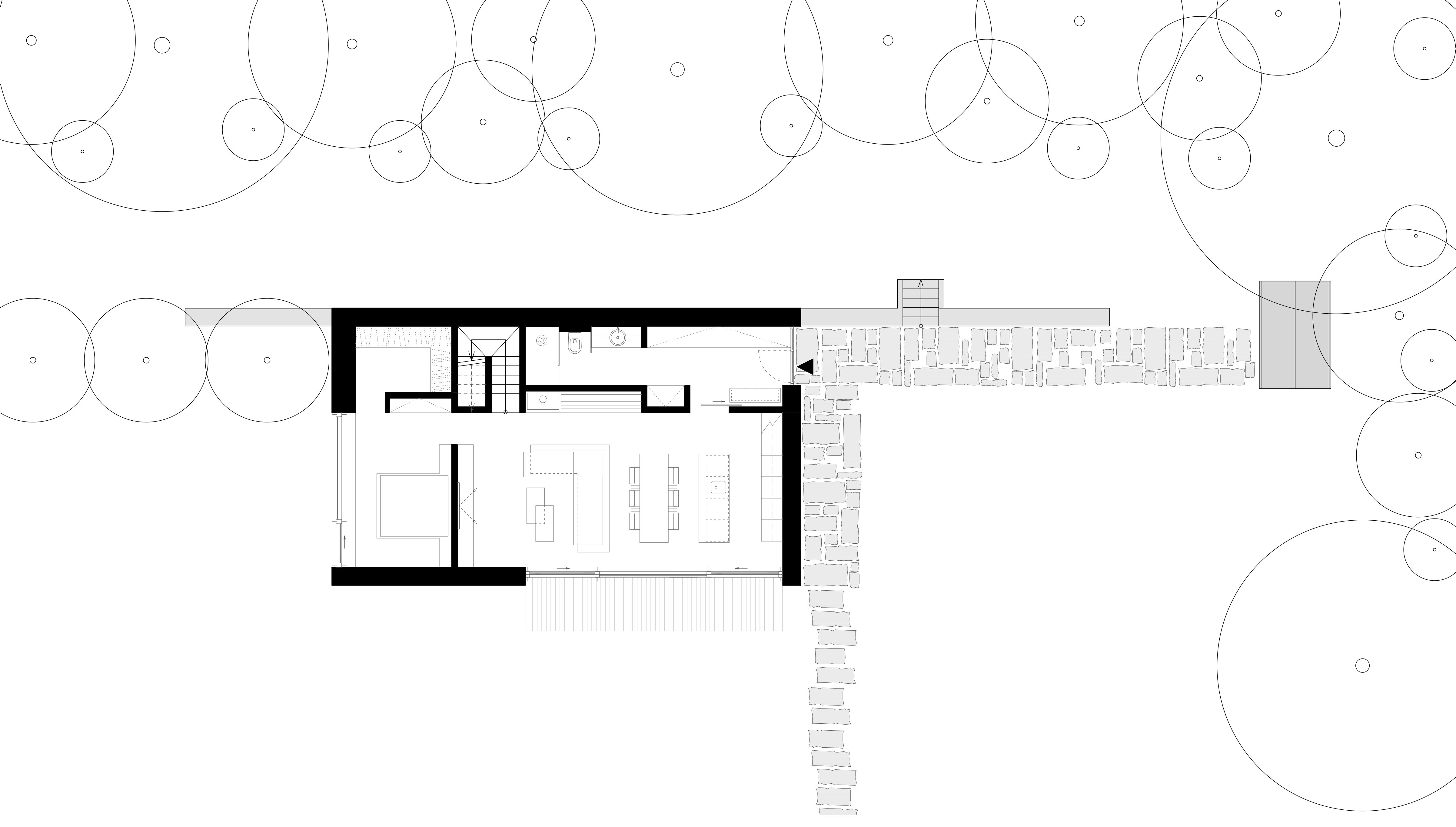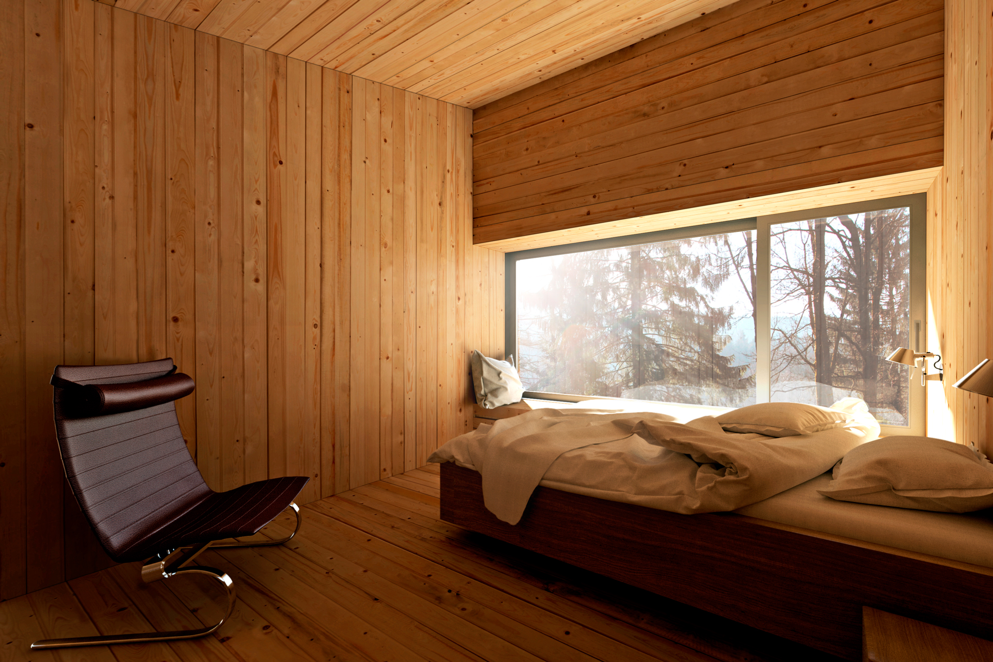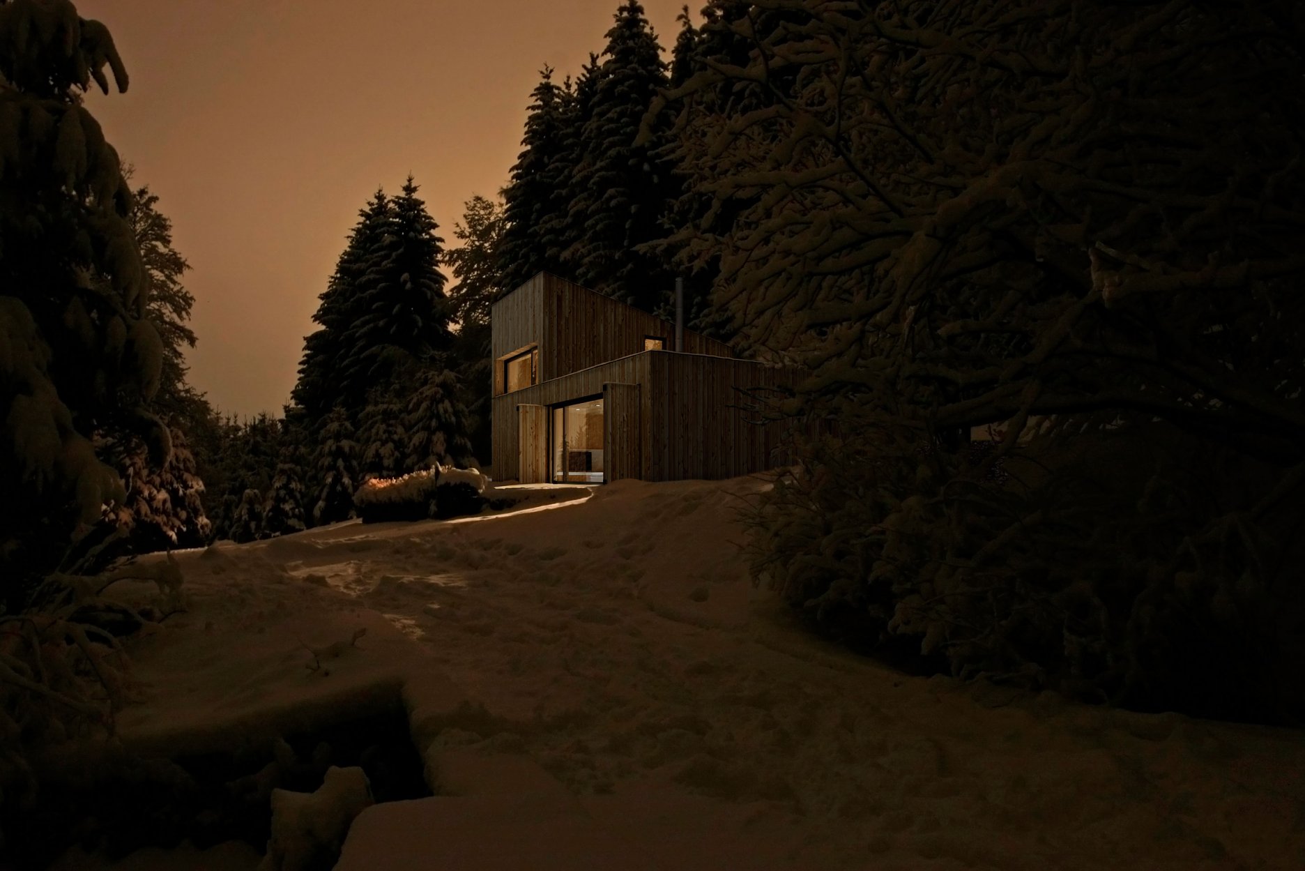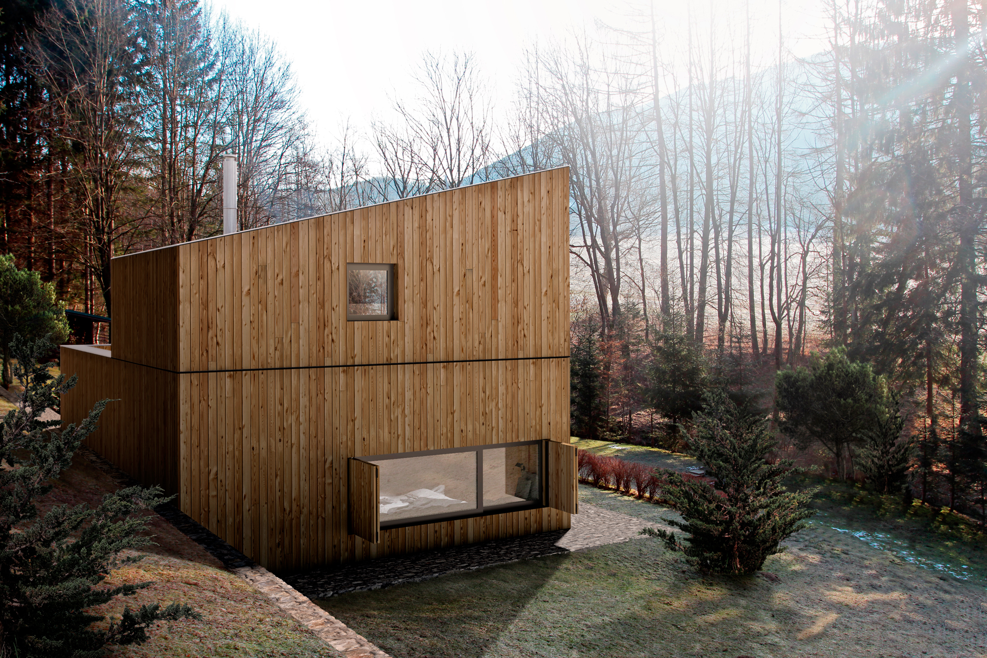 Hlavnou ideou návrhu bolo vytvorenie moderného odpočinkového objektu rešpektujúceho miesto, kde vznikol. Zadanie klienta sa podarilo splniť na zastavanej ploche 101 štvorcových metrov. Vstupné podlažie je tvorené hlavnou dennou zónou s centrálne umiestneným krbom a voľne nadväzujúcou kuchyňou. Kvôli bezbariérovej využiteľnosti objektu bola v západnej časti podlažia navrhnutá aj nočná časť pre klientov - rodičov štvorčlennej rodiny.