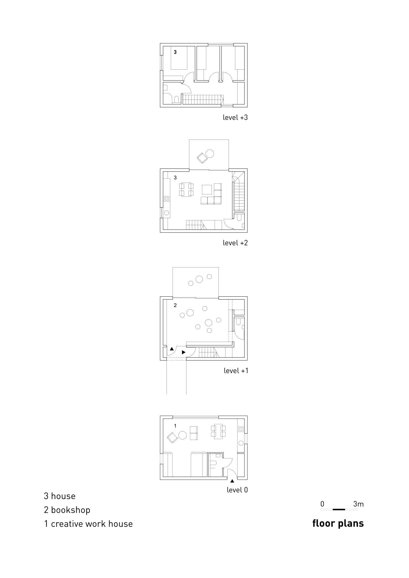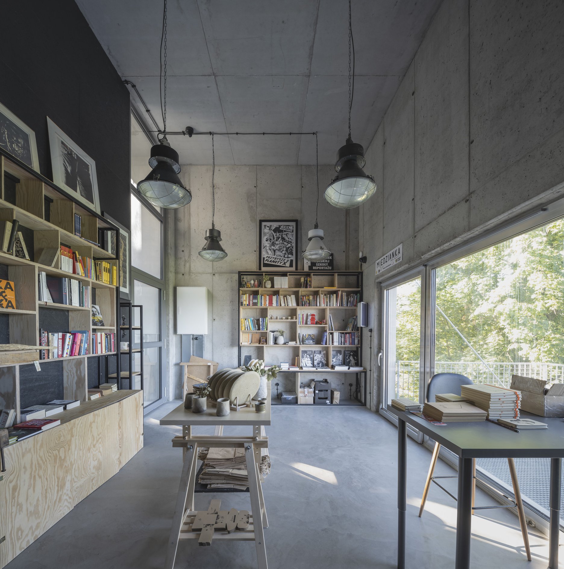 “Projekt spája viacero funkcií. Najdôležitejšie je umelecké kníhkupectvo, ktoré je prístupné z úrovne ulice po oceľovej lávke. Dole, na prízemí, vznikol ateliér pre umelcov. Najvyššie poschodia využíva byt majiteľov,” vysvetľujú architekti a pokračujú: Šachta Miedzianka sa rýchlo dostala do povedomia miestnej komunity. V šachte našli domov doteraz skryté spomienky. Ľudia sem prinášajú archívne predmety a fotografie, ktoré spontánnym a nekontrolovaným spôsobom začali dotvárať charakter interiérov. Prítomnosť nového objektu nečakane spustila virtuálny život Miedzianky a aj vďaka sociálnym sieťam a silnému príbehu pritiahla množstvo nových návštevníkom.