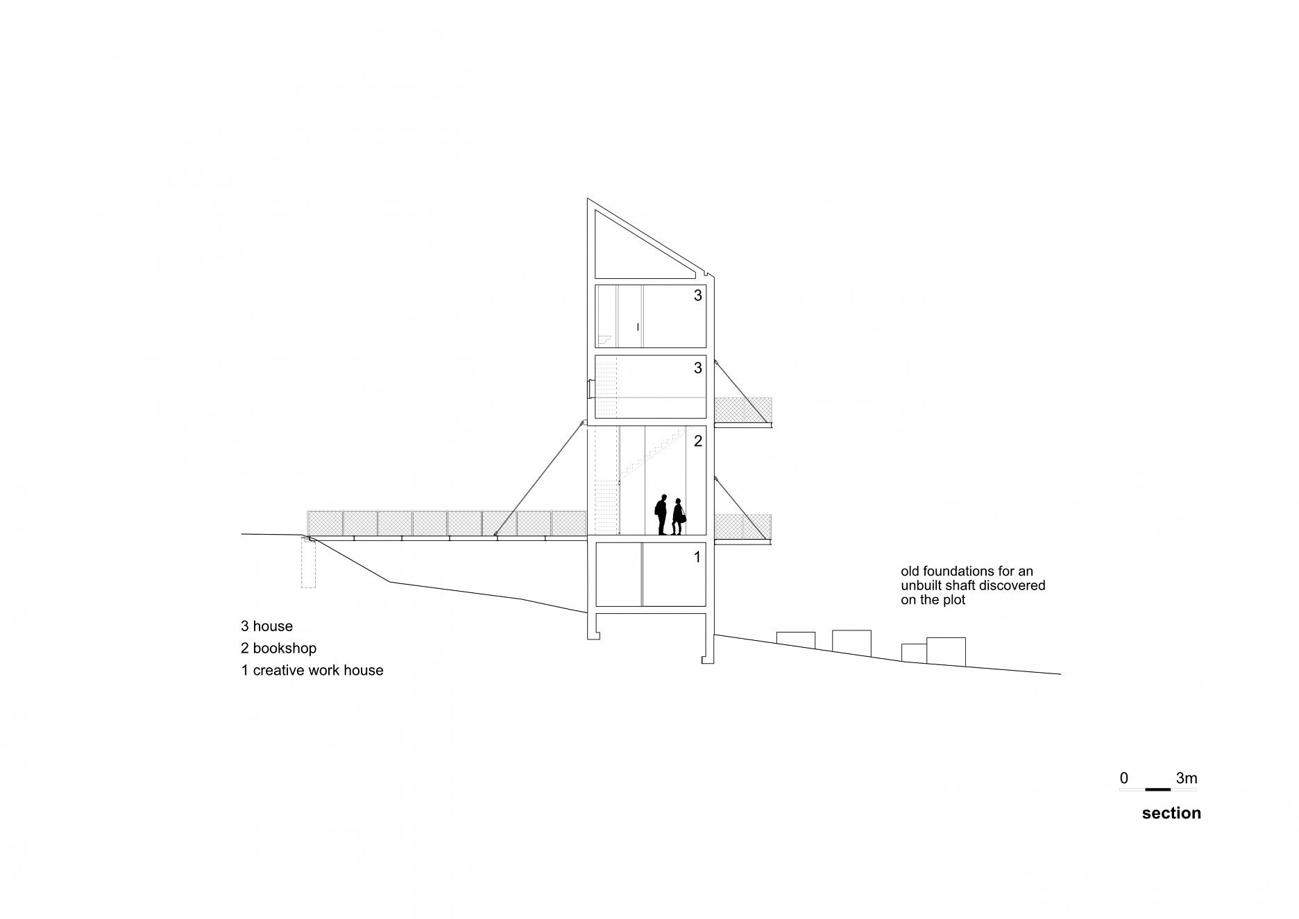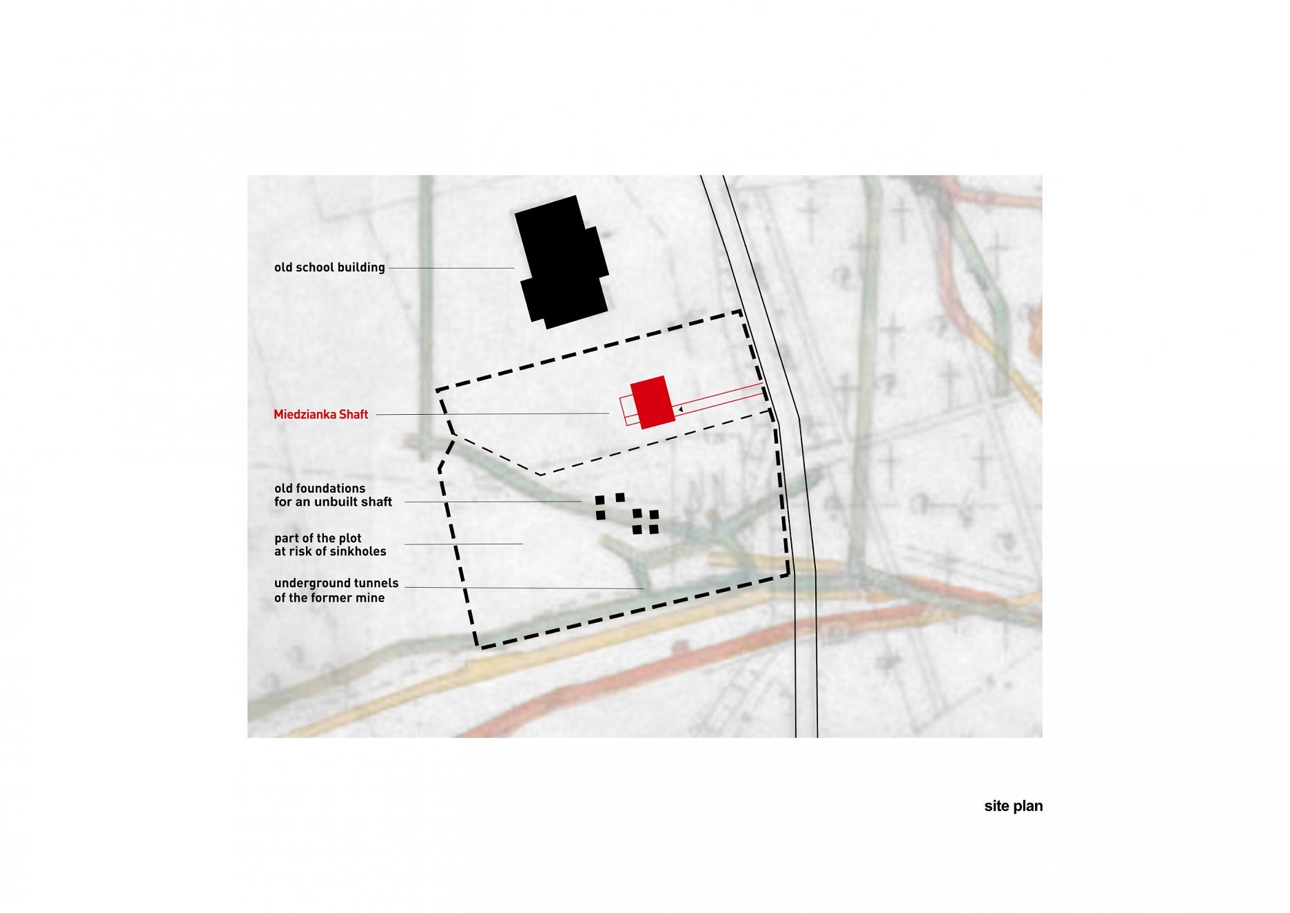Lokalitný program, ktorý mal podľa predstavy majiteľov zahŕňať bývanie, tvorivý priestor pre umelcov a malé kníhkupectvo v troch samostatných celkoch, pretavili architekti do vertikálnej kompozície. Vznikla tak Szyb Miedzianka - Šachta Miedzianka.