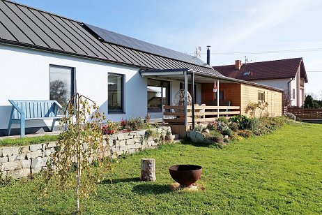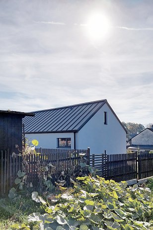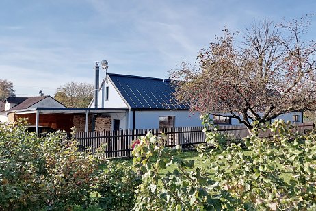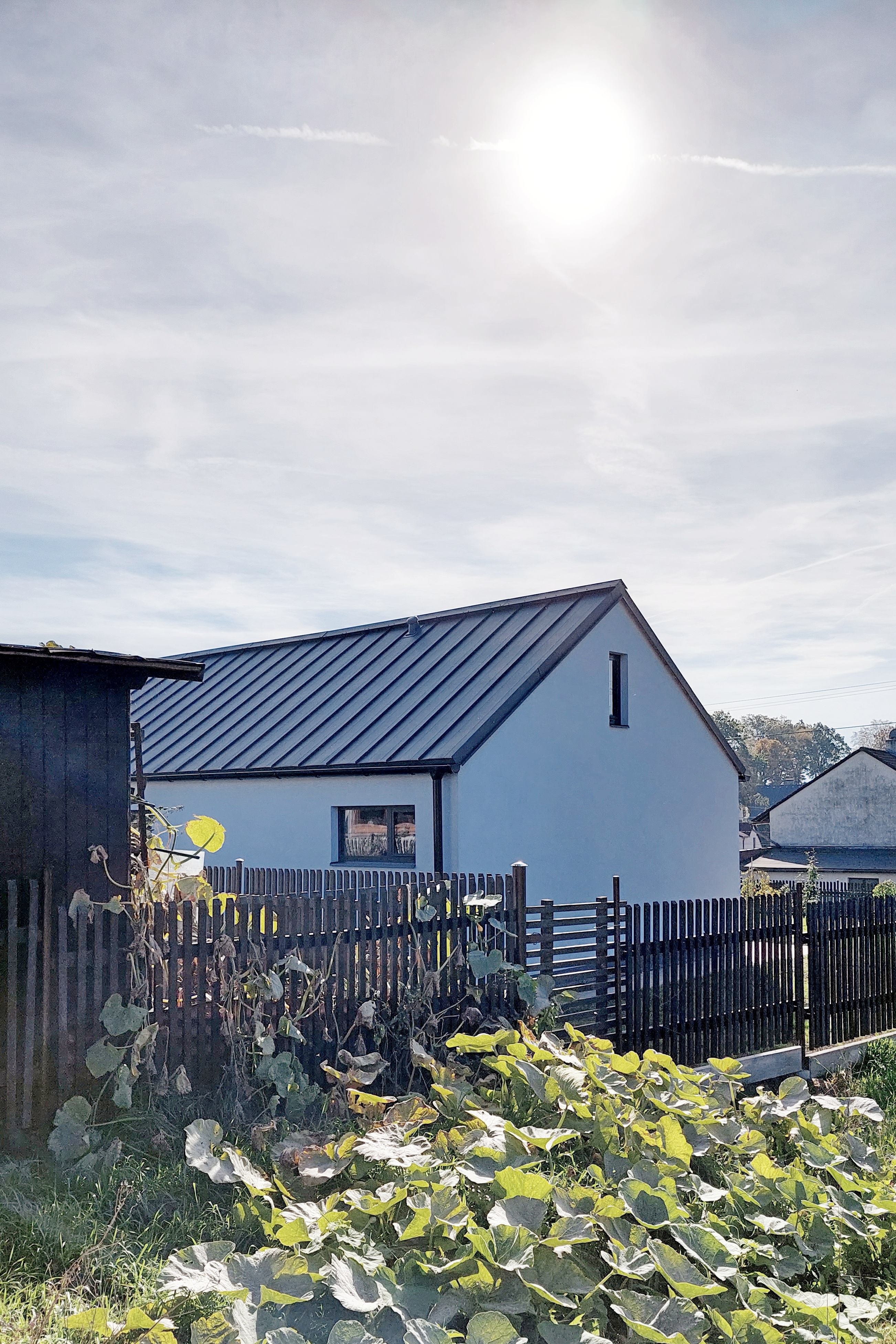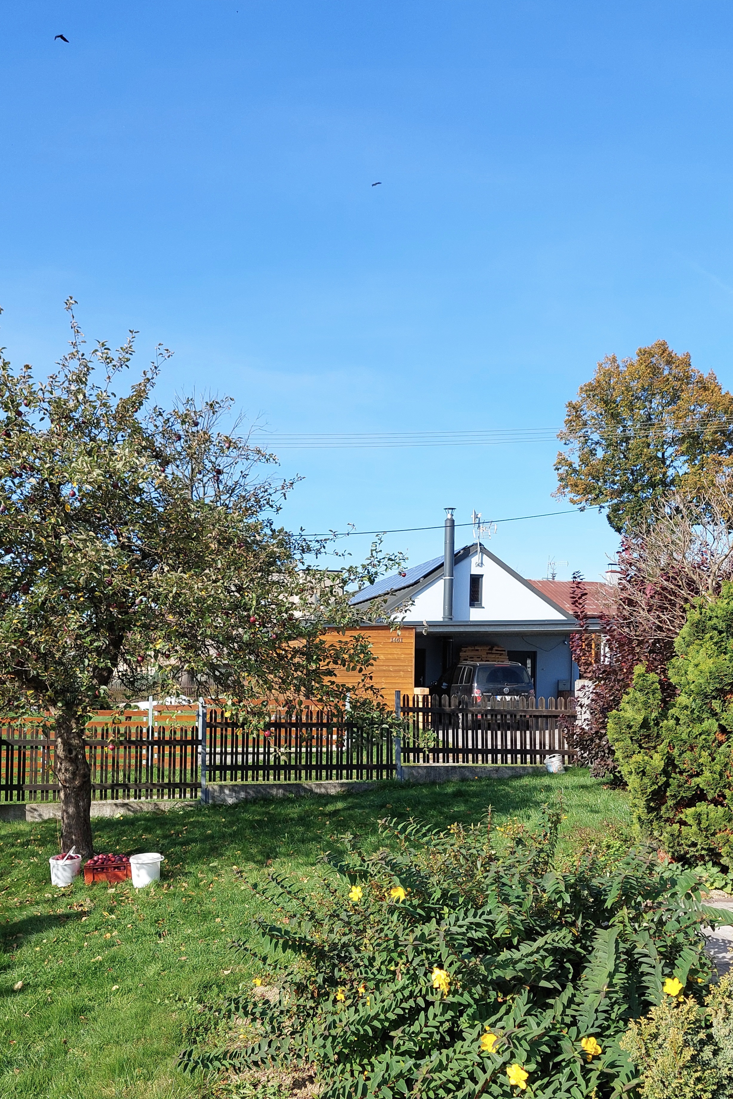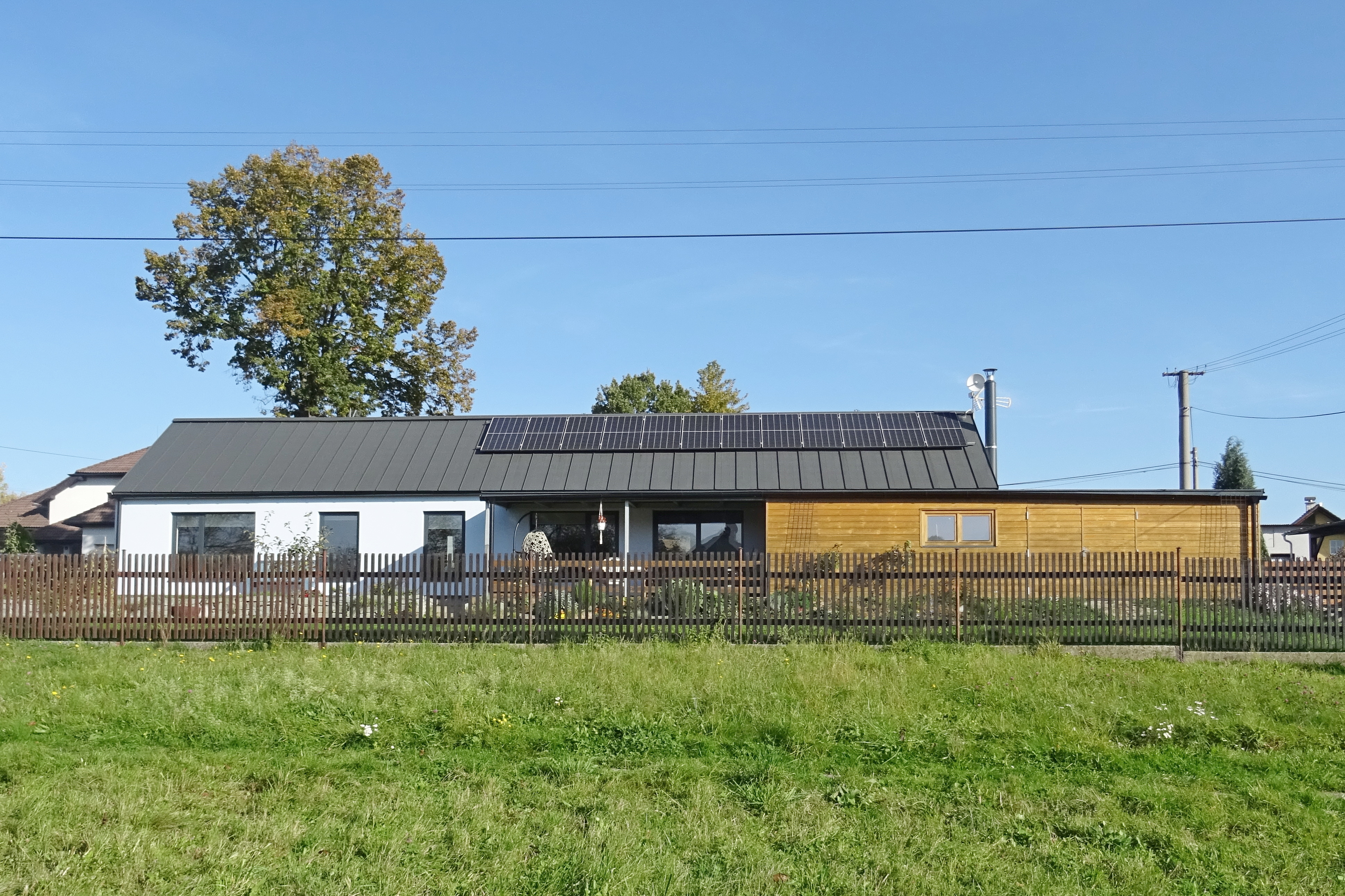 Jednoduchý dům, který si investoři postavili svépomocí. Tvar se odkazuje na více jak stoleté úzké dlouhé přízemní domy, kterých se v Polance několik dochovalo. Na hranol domu se sedlovou střechou je přisazena kůlna přecházející v kryté stání před štítem domu, na druhou stranu na kůlnu navazuje krytá terasa.