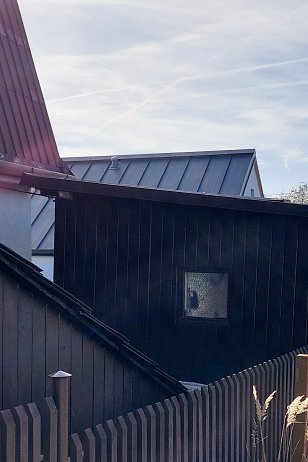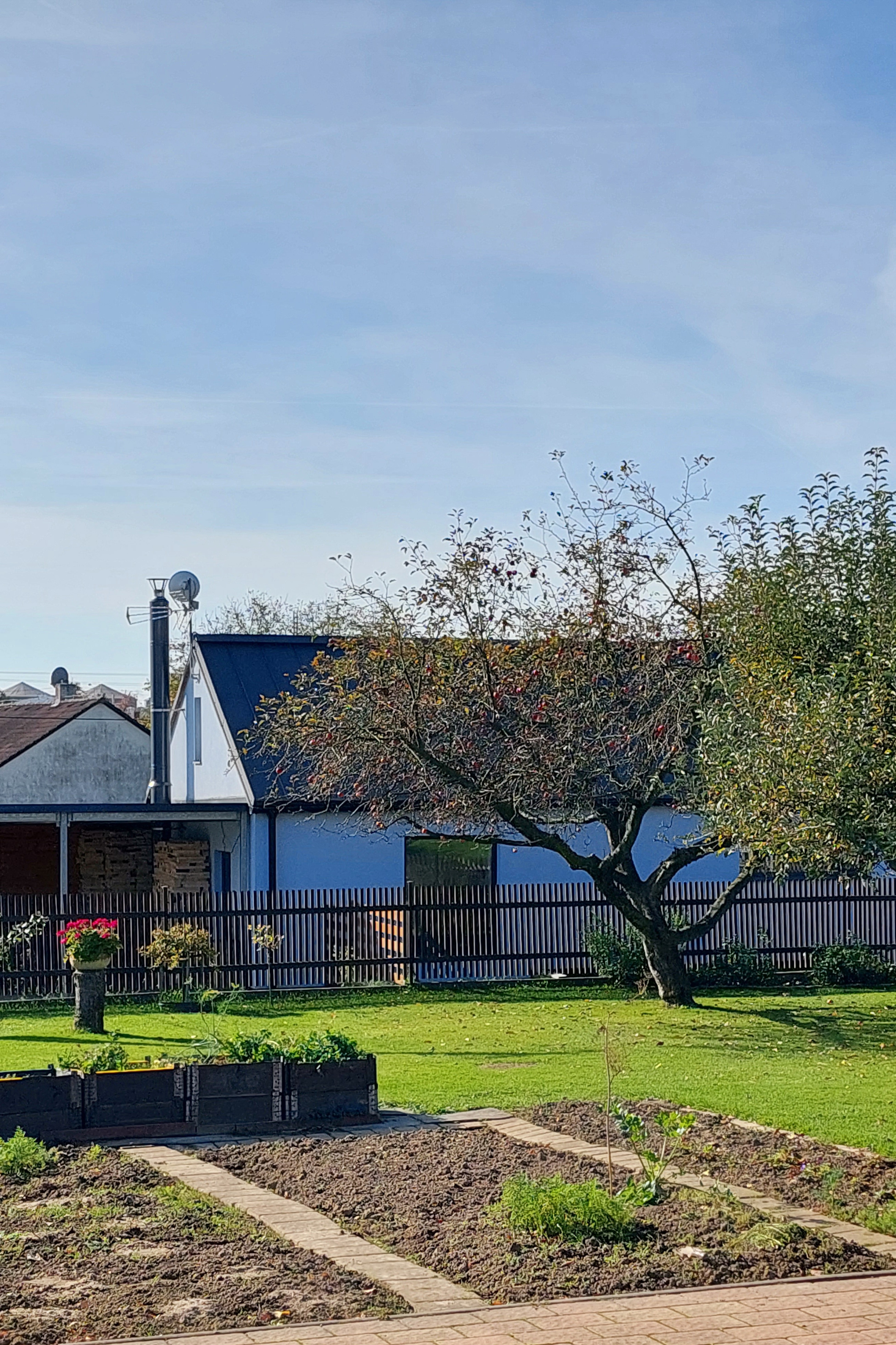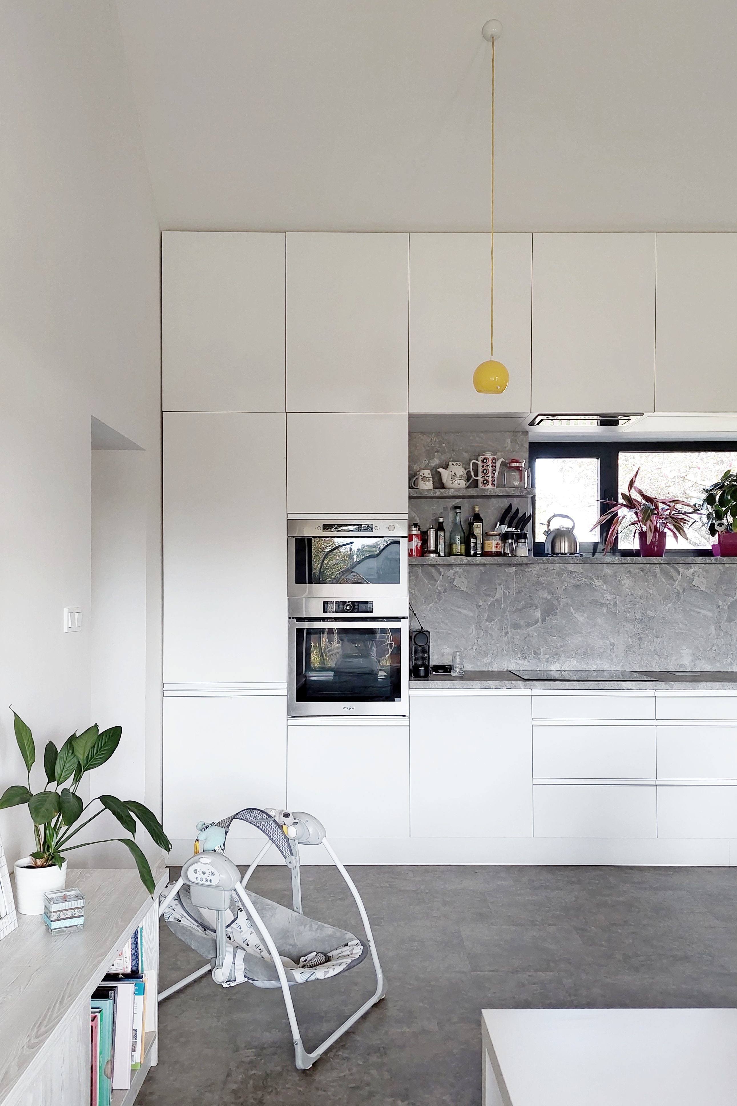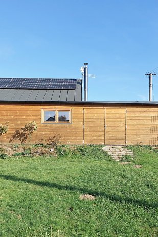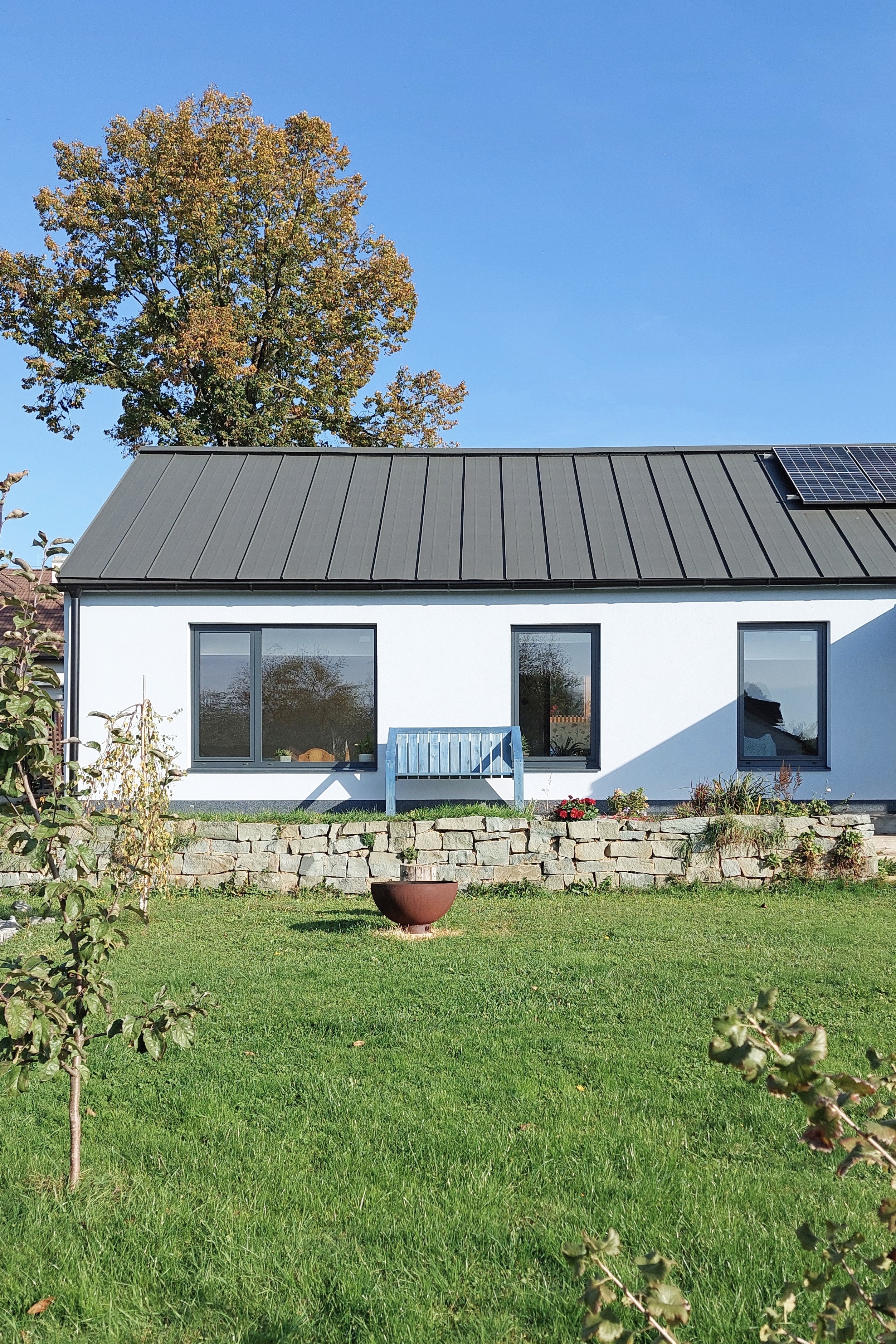 Jednoduchý dům, který si investoři postavili svépomocí. Tvar se odkazuje na více jak stoleté úzké dlouhé přízemní domy, kterých se v Polance několik dochovalo. Na hranol domu se sedlovou střechou je přisazena kůlna přecházející v kryté stání před štítem domu, na druhou stranu na kůlnu navazuje krytá terasa.