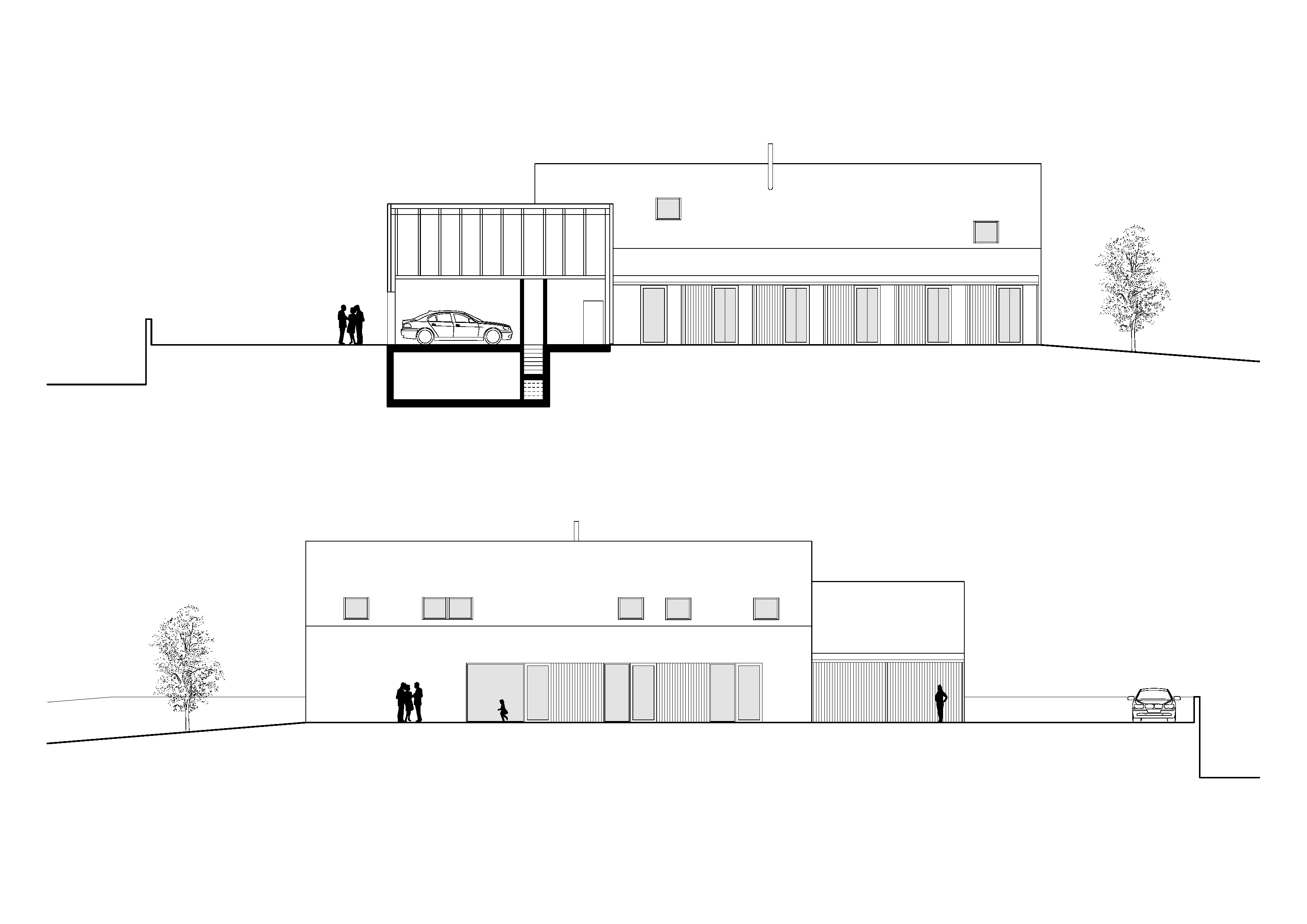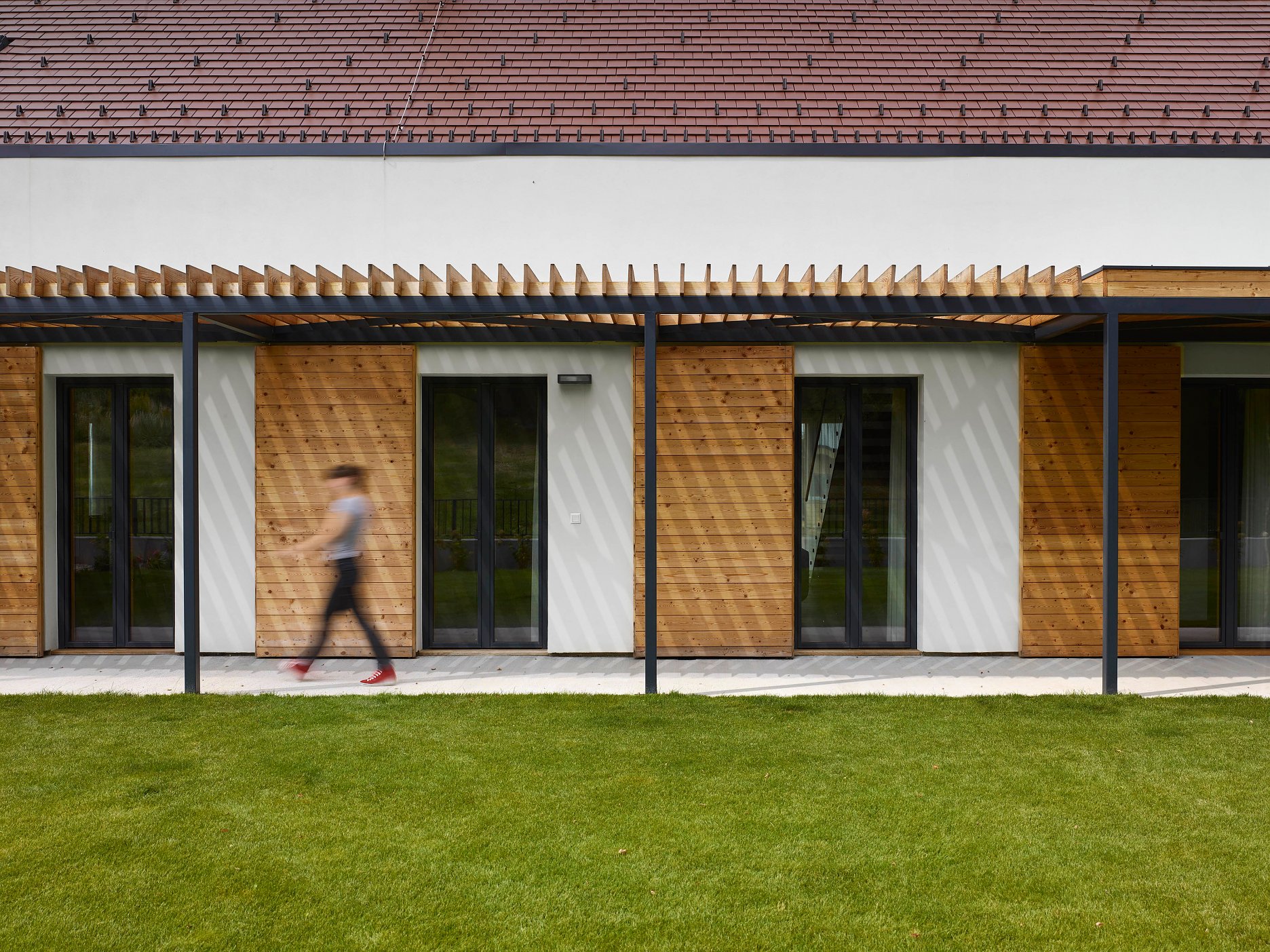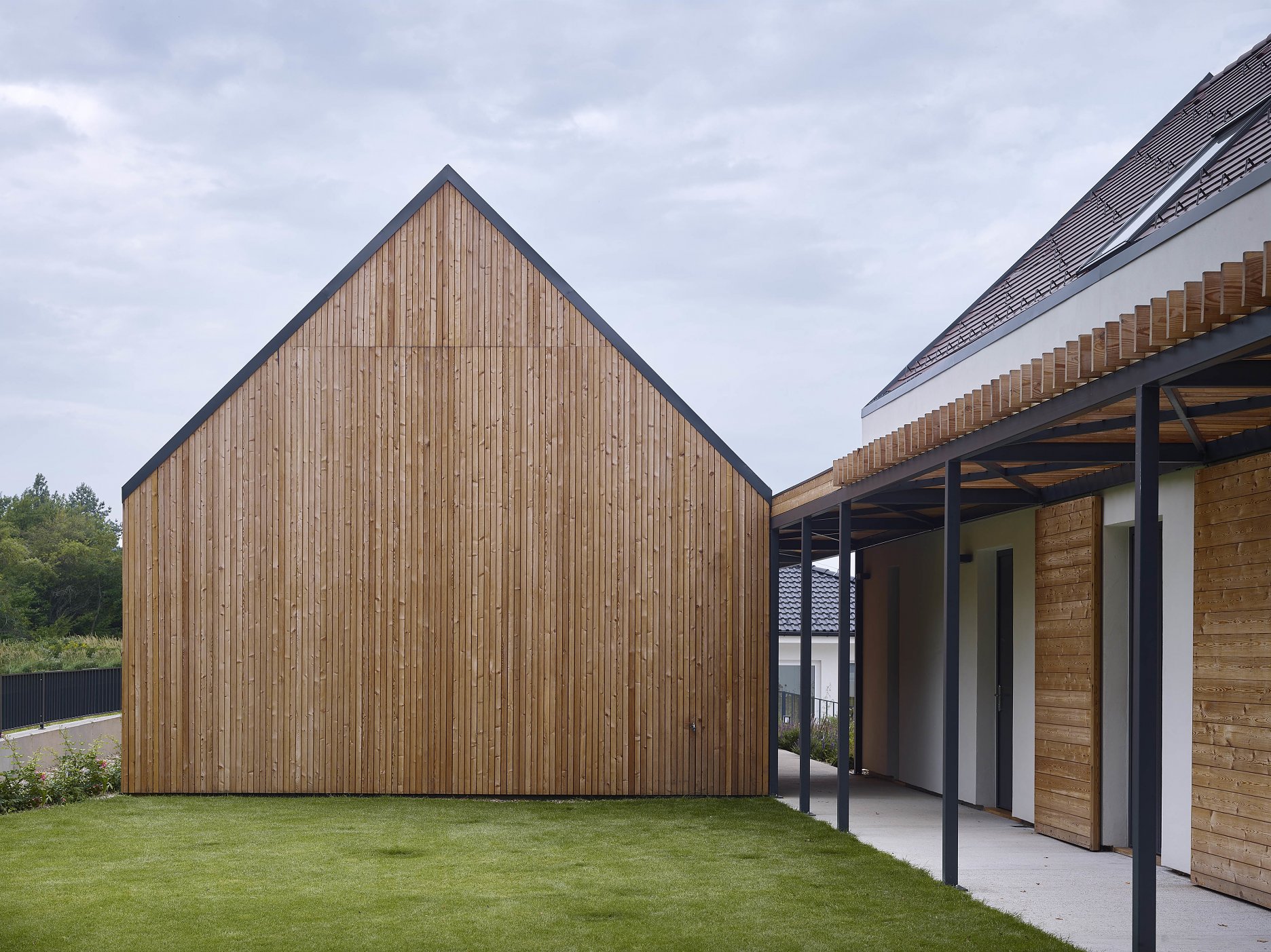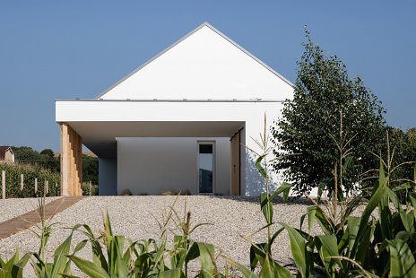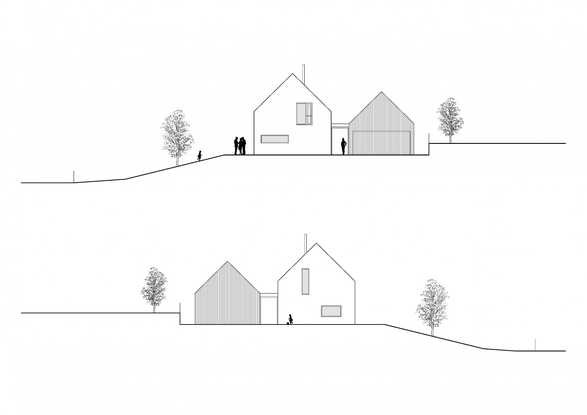 Sedlové strechy a pozdĺžny pôdorys pripomínajú pôvodné obydlia v tomto prostredí, do ktorého chce nová stavba prirodzene zapadnúť. Charakter domu je však súčasný, vystihujúci dnešnú dobu a navrhnutý na mieru pre svojich obyvateľov. Bývať v ňom bude pár, niekedy prídu na návštevu deti a jedného dňa možno aj vnúčatá. On rád varí pre veľa priateľov, ona často cestuje a pre všetkých tu musí byť dosť miesta.