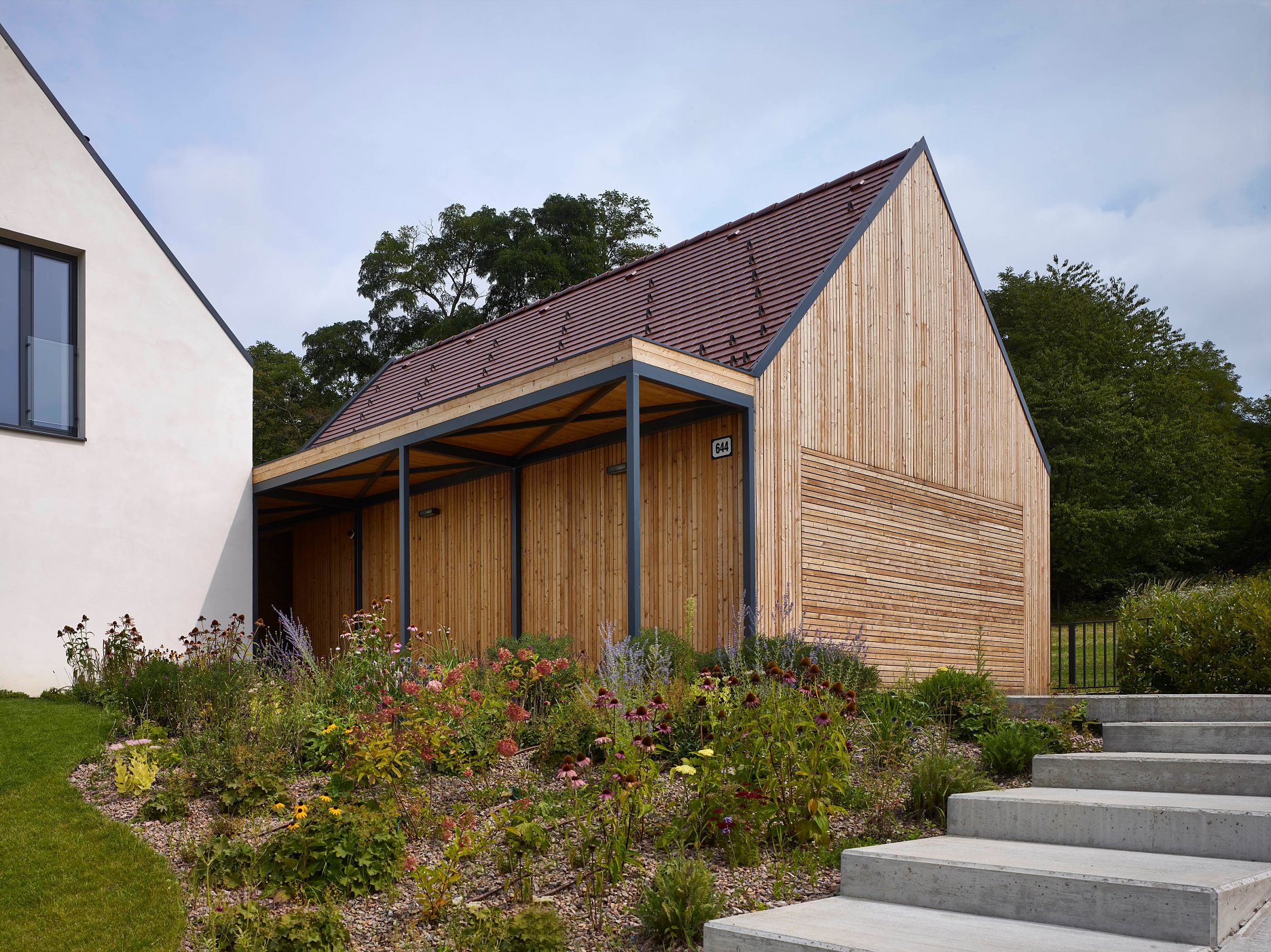 Našou odpoveďou na túto otázku je Vidiecky dom J, ktorý je súčasnou interpretáciou tradičného slovenského domu s gánkom. Dom leží na konci malebnej dediny na Záhorí, s výhľadom na les a do okolitej krajiny. Tak ako kedysi bývala pri murovanom dome drevená stodola, aj dnes sme navrhli tehlový dom na bývanie a vedľa stojacu drevostavbu. Umiestnili sme do nej garáž a hospodárske priestory. Oba domy sú vzájomne prepojené gánkom - typickým slovenským prvkom, ktorý sa v našej ľudovej architektúre objavuje už po stáročia. Gánok vytvára príjemnú vstupnú zónu do domu, ale aj miesto pre posedenie v tieni pod pergolou.