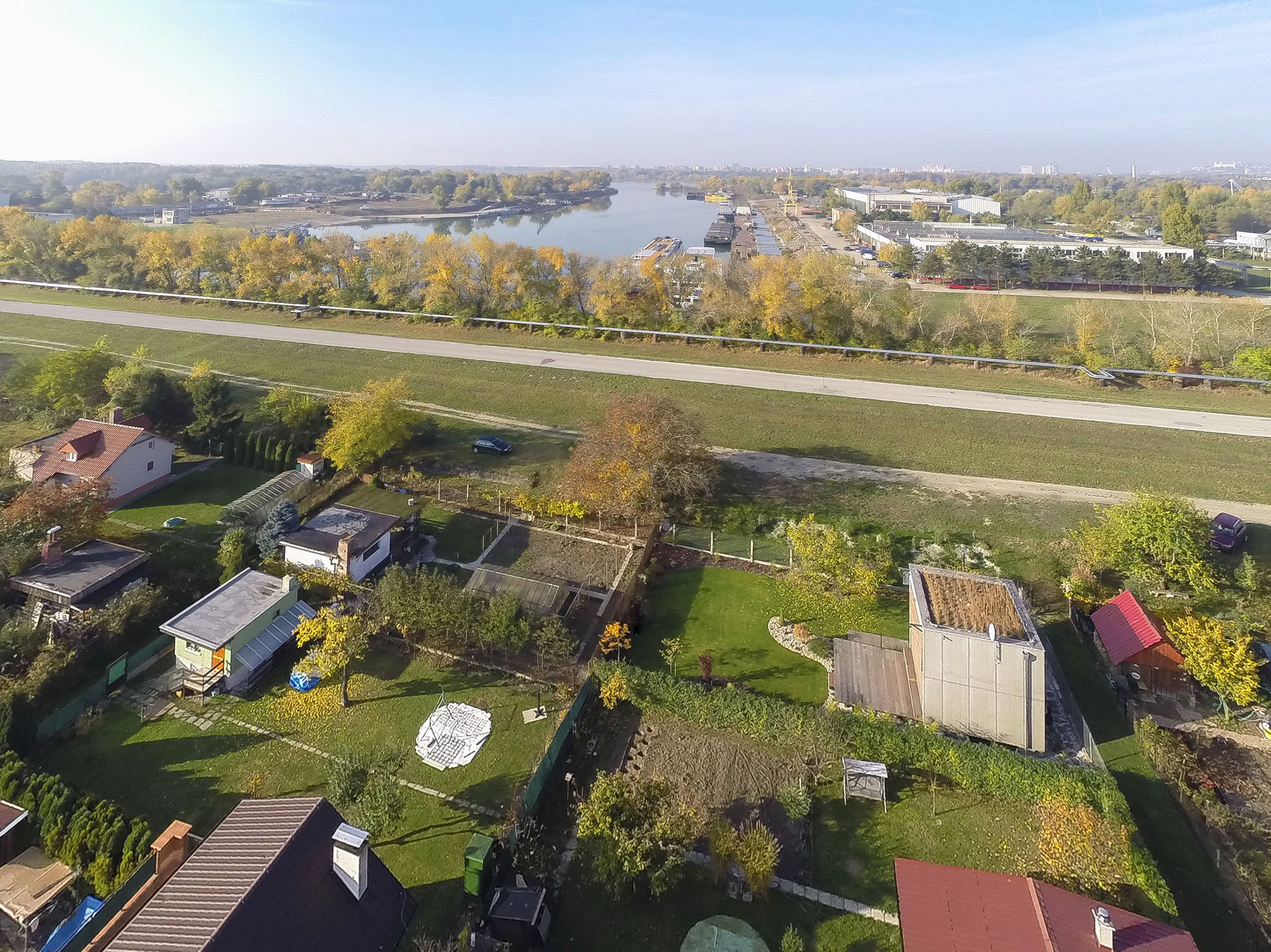Pozemok o rozlohe 330m2 leží na okraji záhradkárskej osady a priamo susedí s hrádzou ktorá je hlavne v letných mesiacoch intenzívne využívaná bratislavskými cyklistami.