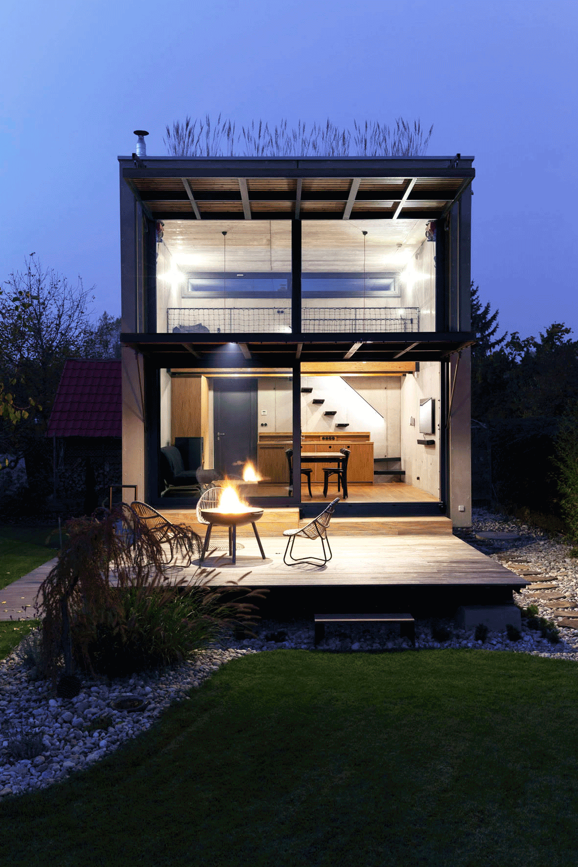Víkendový domček nahradil pôvodnú záhradnú chatu a rovnako ako ona má zastavanú plochu rovných 25m2.