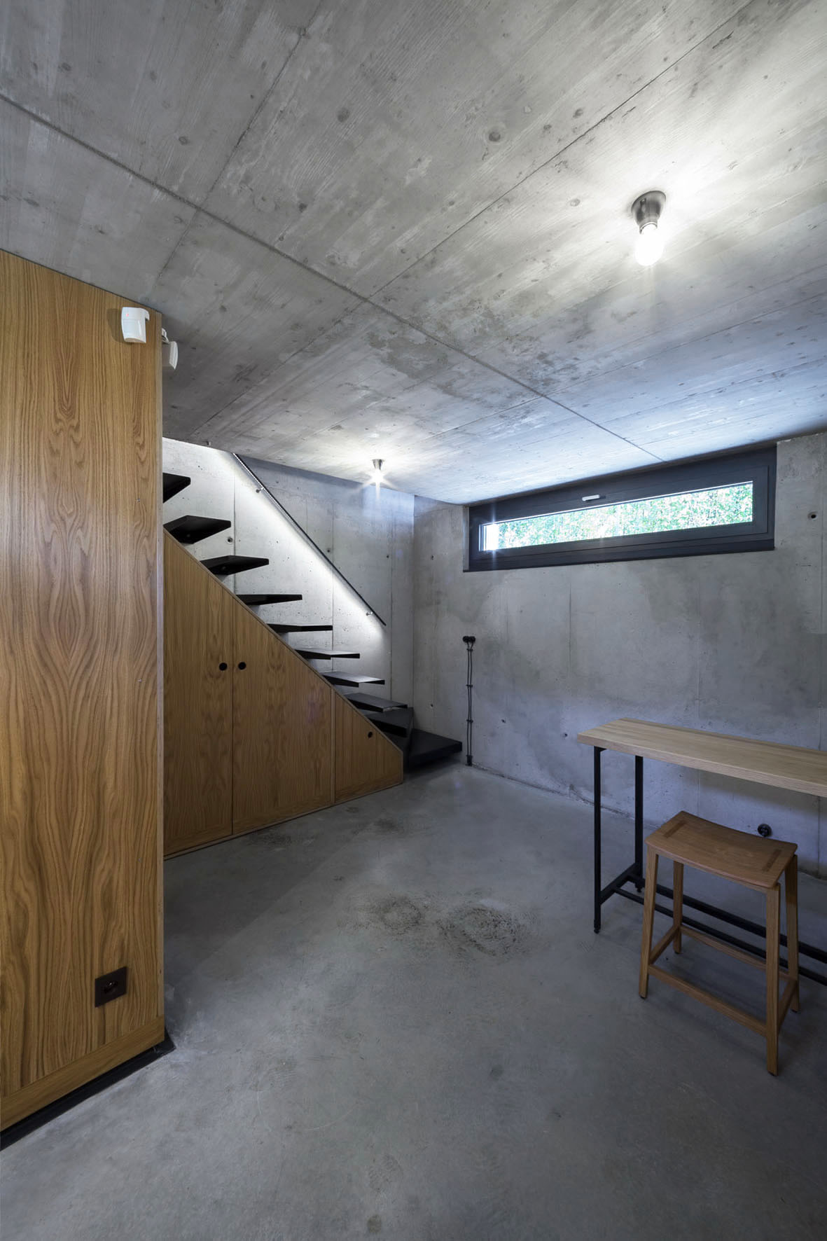 V suteréne sa nachádza vínna pivnica so sedením, WC so sprchou a technické zázemie – ohrev TÚV a pomerne komplikovaná úpravovňa vody, ktorá odstraňuje z vody ropné látky a iné toxíny. V osade totiž nie je verejný vodovod a podzemná voda v okolí Slovnaftu je beznádejne zamorená. Suterén je v letných mesiacoch obľúbené miesto na schladenie majiteľov.