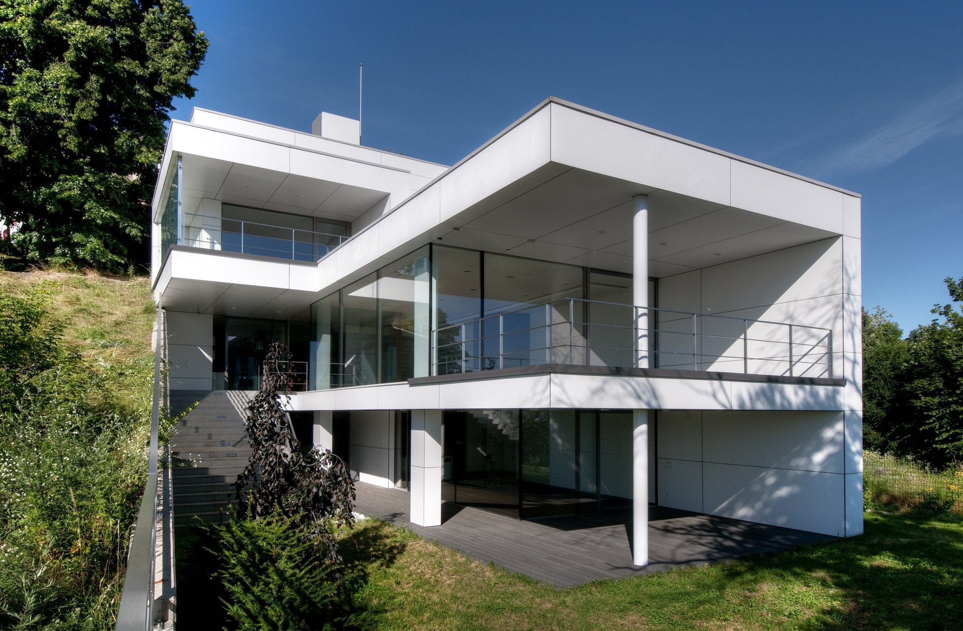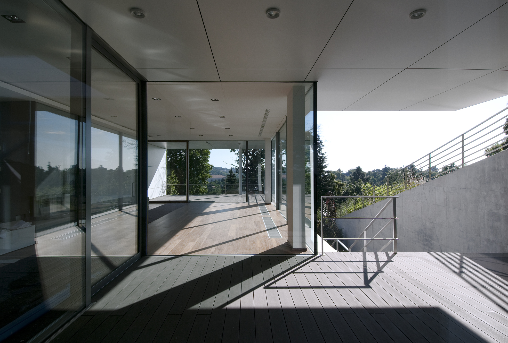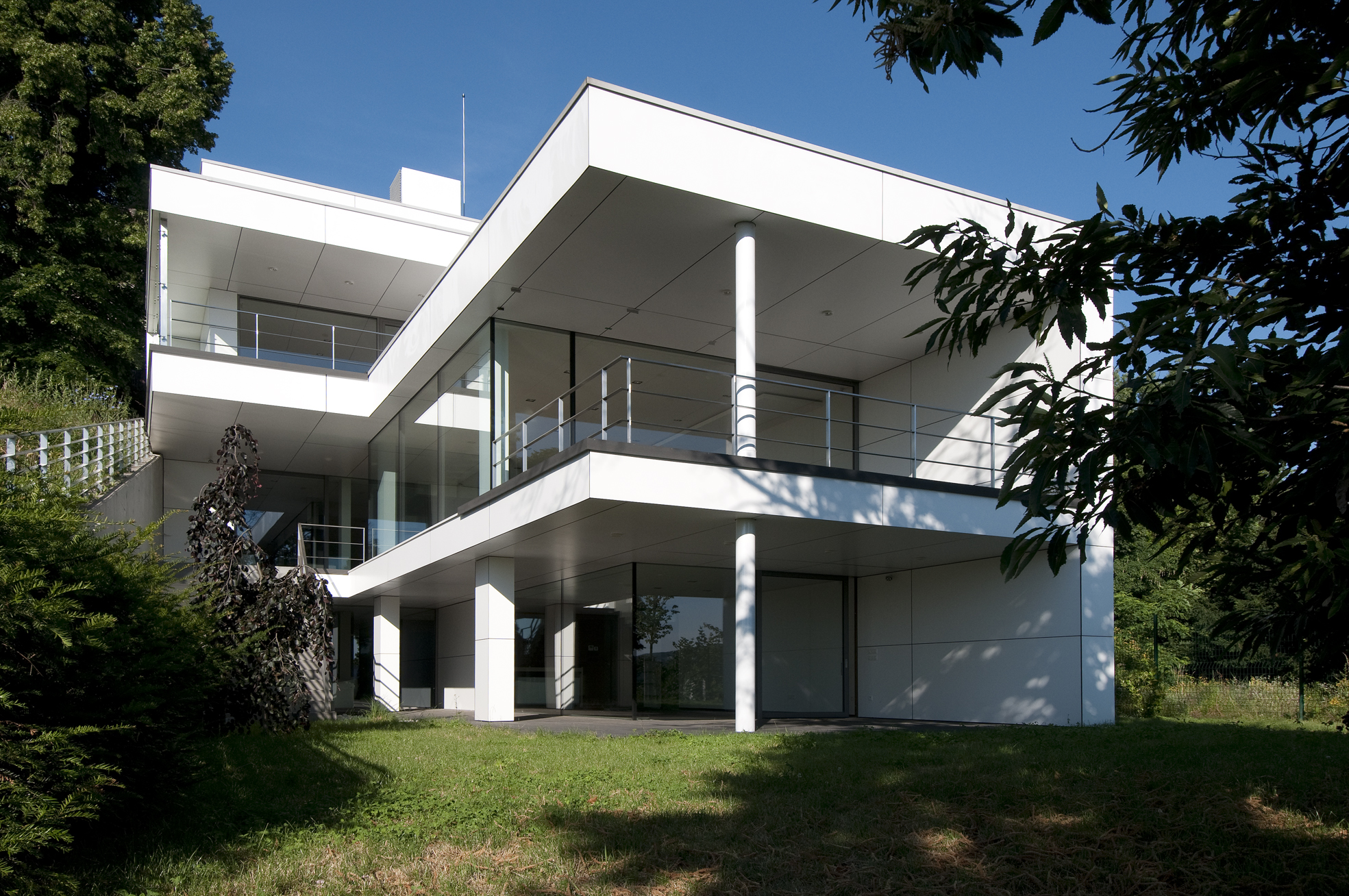 Objekt je tvorený vrstvením kvádrov jednotlivých podlaží na výrazne svahovitom teréne. Vzniká hierarchická štruktúra exteriérovo-interiérových intímnych priestorov átrií, logií a terás. Kontakt s prírodou a prepojenie bývania so zeleňou je významným atribútom návrhu. Vila sa otvára do záhrad, ktoré sa zvažujú od ulice. Jednotlivé úrovnne poskytujú výhľad na panorámu Slavína.