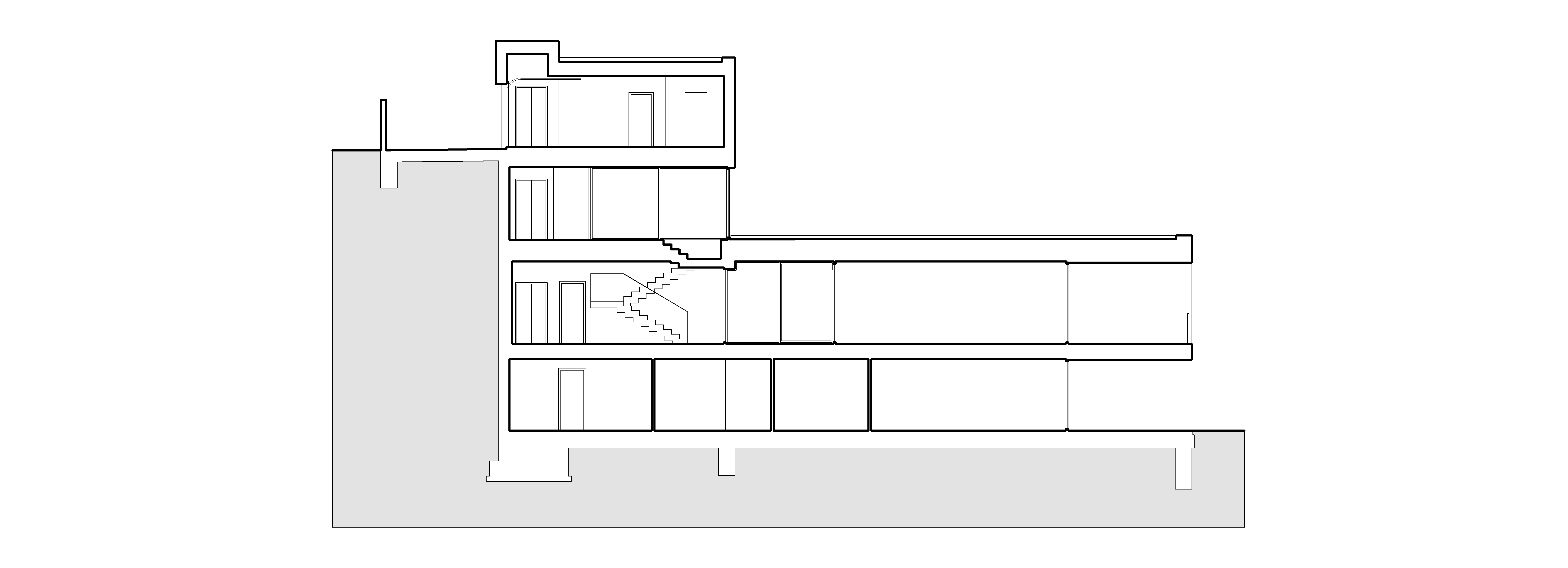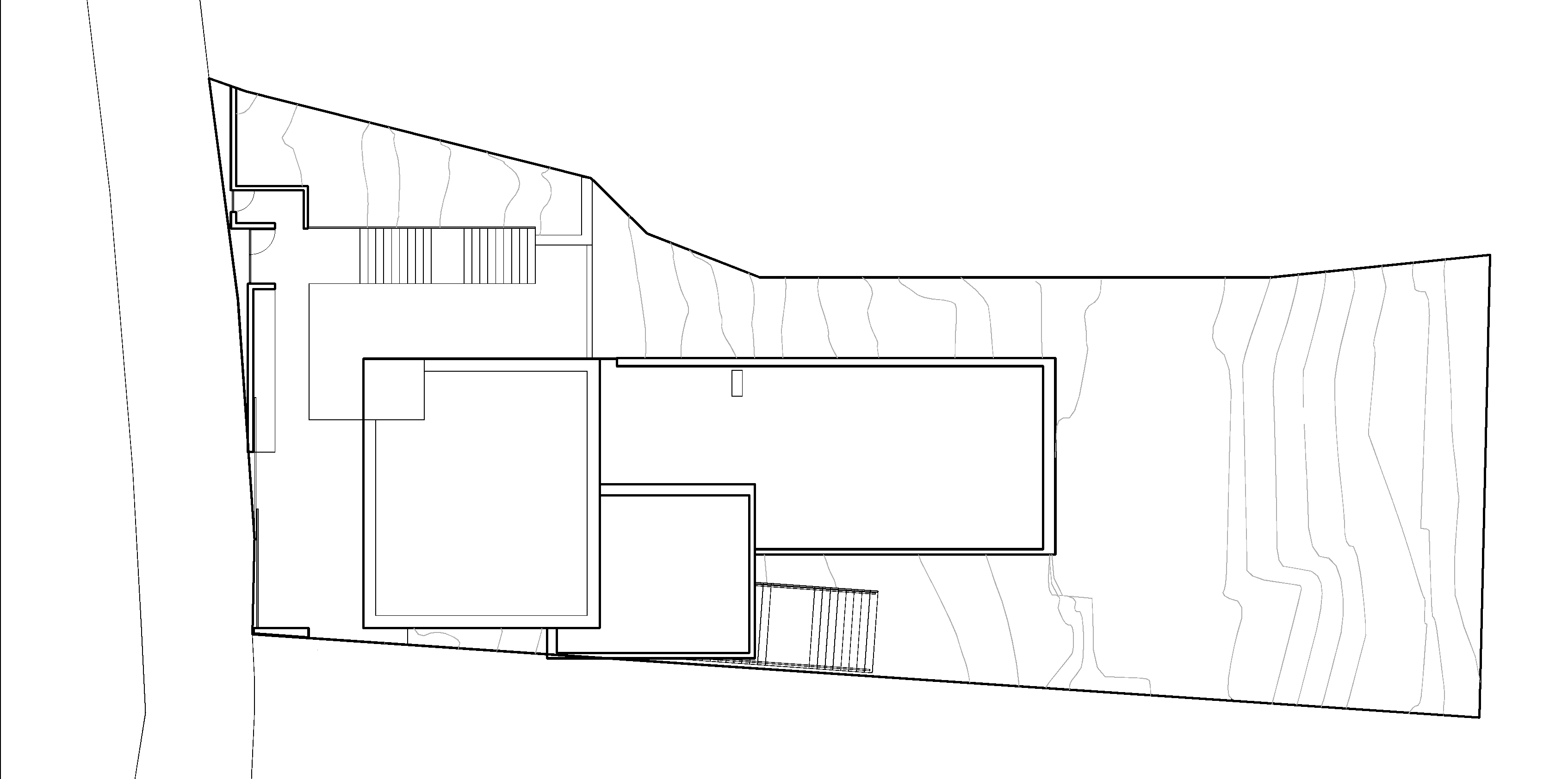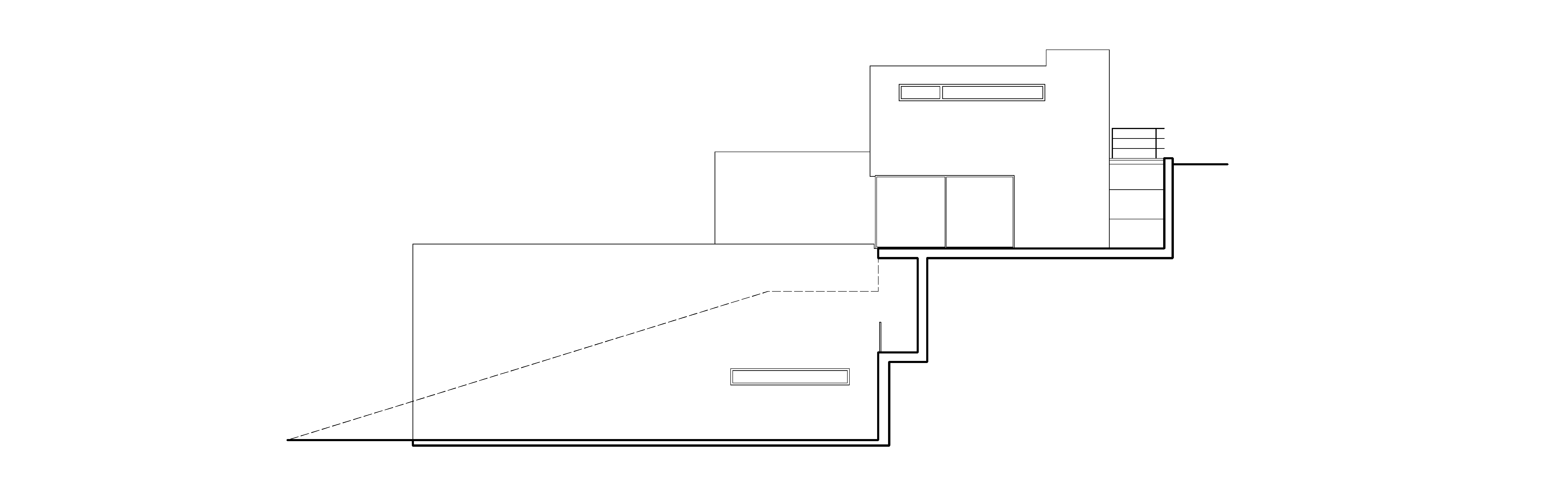 Nočná časť a zázemie domu sú umiestnené do priestorov tretieho podzemného podlažia. Na úrovni záhrady je spálňa „rodičov“ s kúpeľňou a šatníkmi. Spálňa využíva veľkú krytú terasu. V „zadnej časti“ domu je lokalizovaná hosťovská izba a práčovňa.