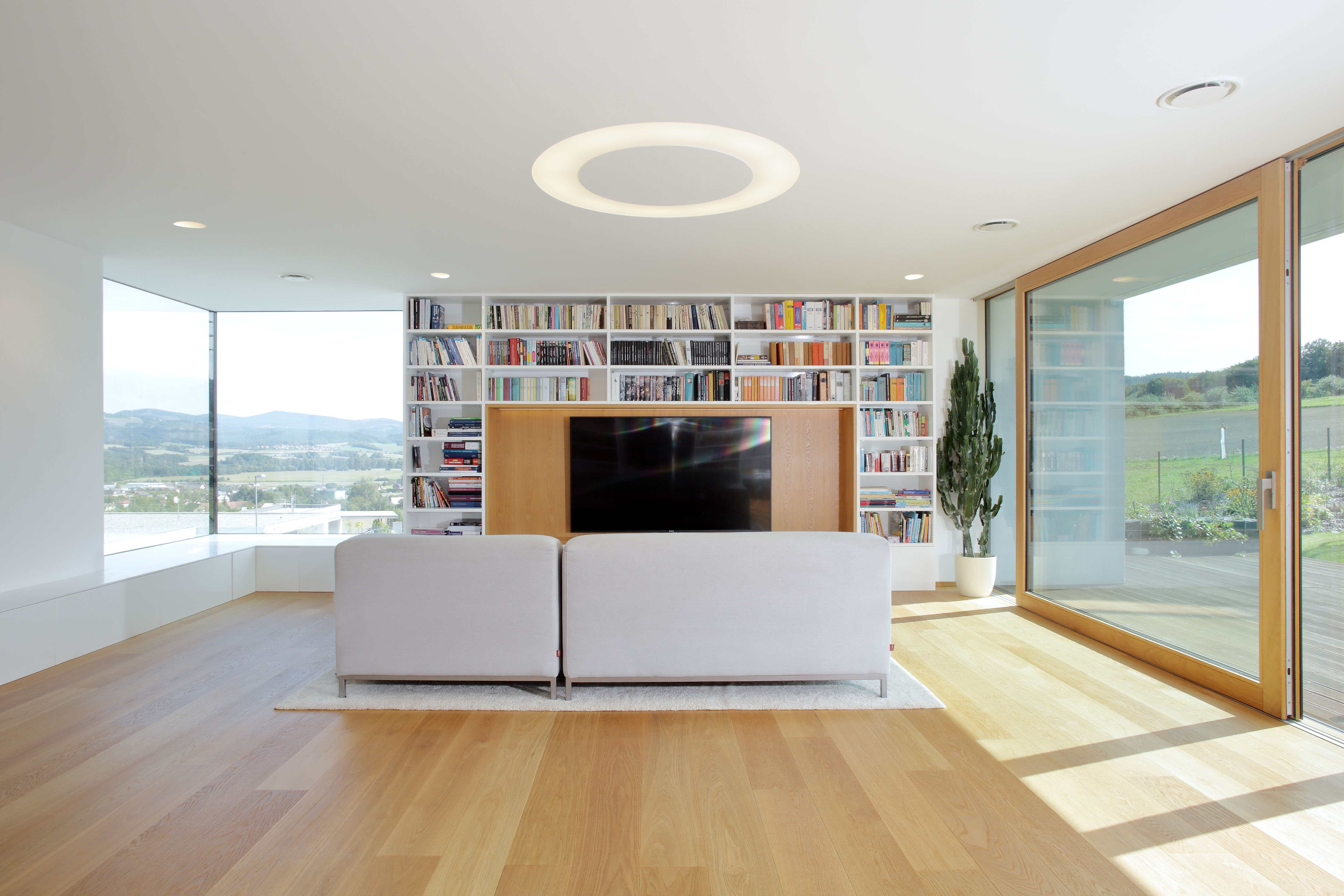 “Prostorový koncept je variací na „raumplan“. Všechny hlavní obytné místnosti ve 2.NP jsou prosklením orientovány na jižní stranu, ložnice pak nabízí odlišnou orientací svých okenních otvorů rozmanitost výhledů od východu na západ,” vysvetľuje koncept architekt Zdeněk Trefil.