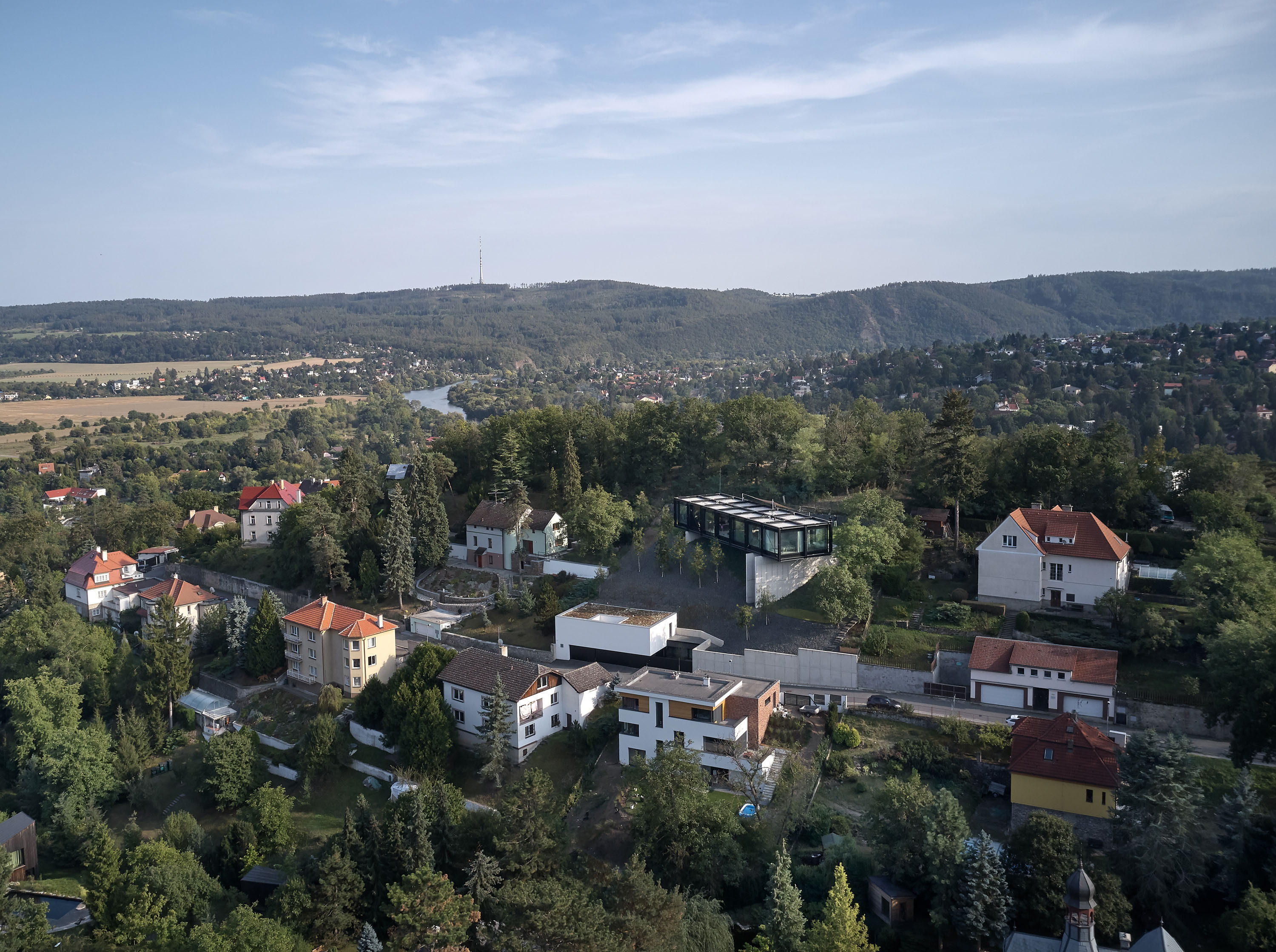Strmý pozemok vily sa nachádza na severnej tienistej strane terénnej vlny. Patrí medzi najstrmšie a najvyššie položené. To mu prináša množstvo výhod, ale aj nevýhod či výziev pre návrh. Najkrajšie výhľady na údolie Berounky, lemované kopcami Českého krasu a siluetou hlavného mesta Prahy v pozadí, sú nepochybne najväčším pokladom. Snahou architektov bolo zabezpečiť tento výhľad vo všetkých obytných miestnostiach z toho najlepšieho uhla. Severný svah trpí nedostatkom slnka, ktoré dopadá väčšinu dňa len na najvyššiu časť pozemku. Tá však bola v strmom svahu veľmi ťažko prístupná. Ján Stempel a Jakub Tesař stáli pred otázkou ako dom osadiť čo najvyššie, pri zachovaní pohodlného prístupu.