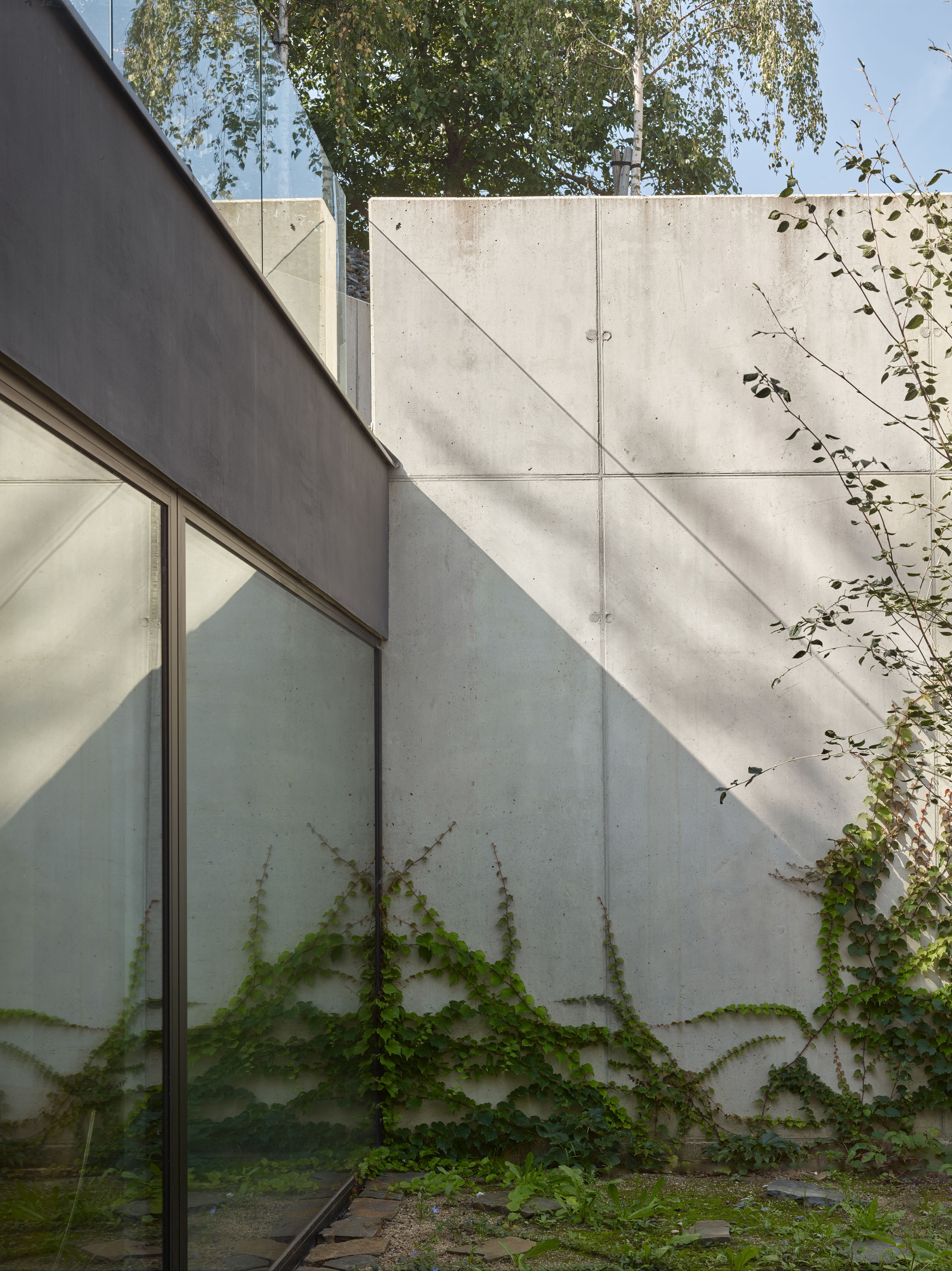 Úzka spolupráca s krajinným architektom Vladimírom Sittom priniesla návrh bridlicového svahu s brezovým hájom, ktorý nevšedne dotvára architektonický koncept domu.