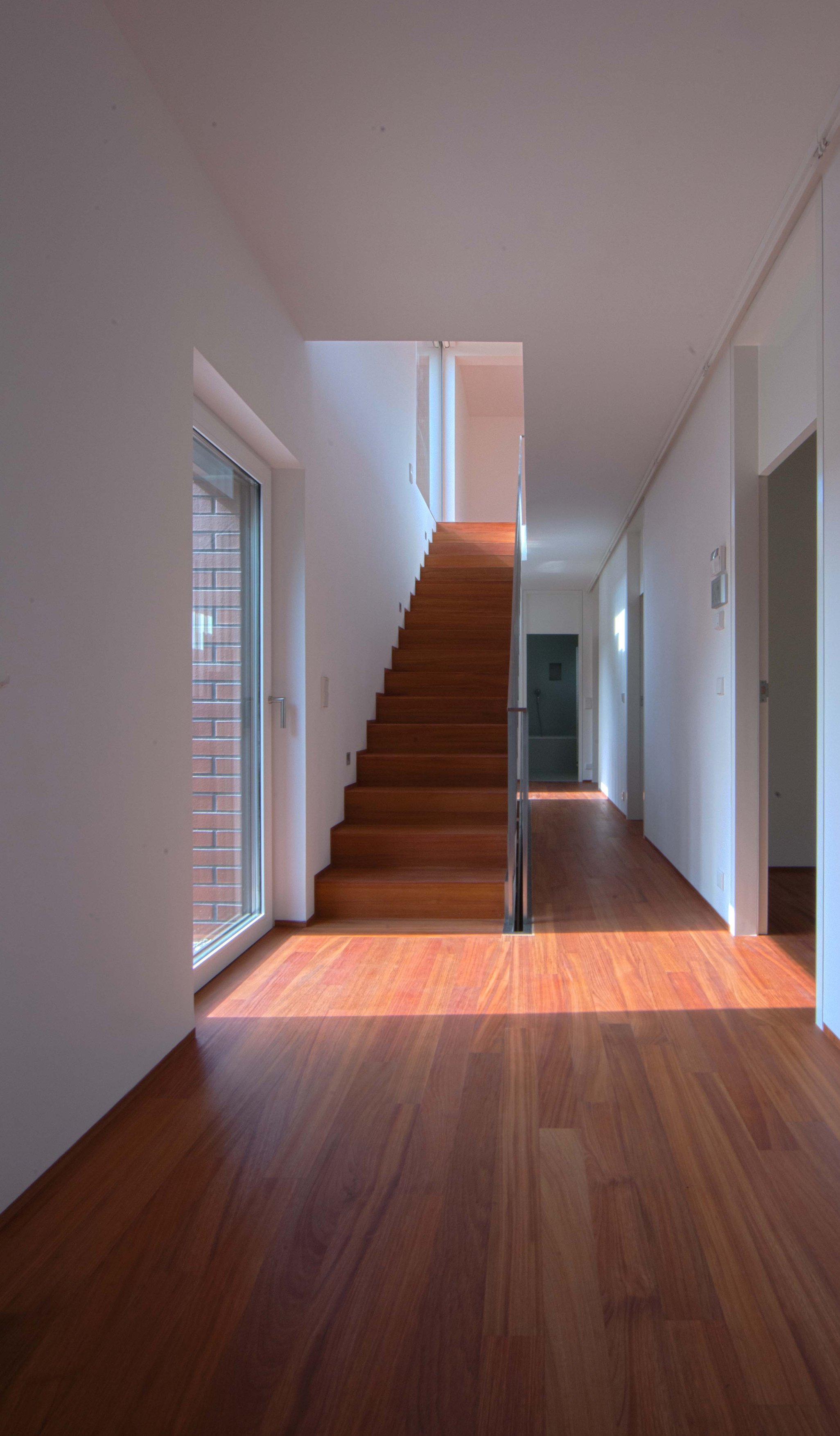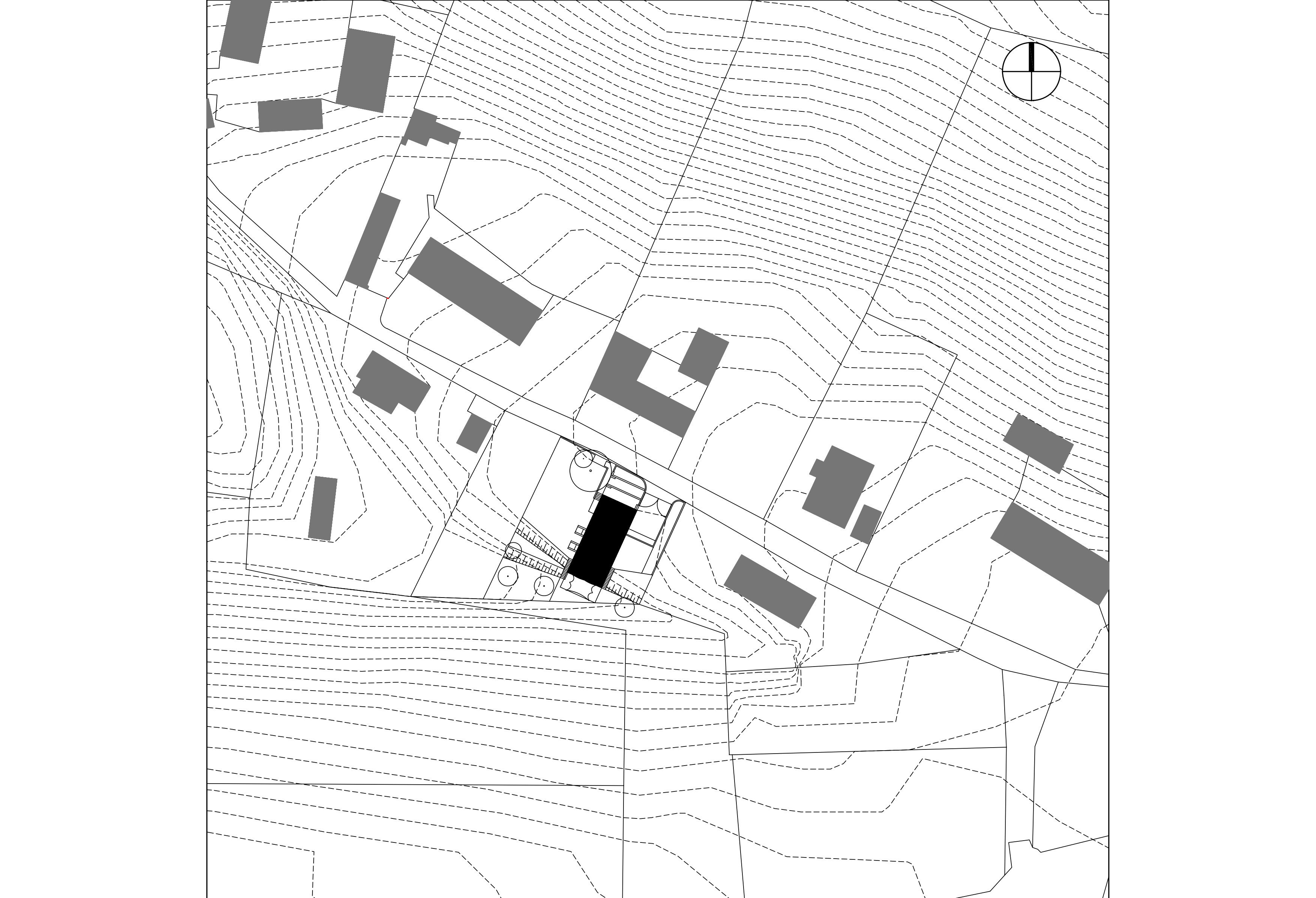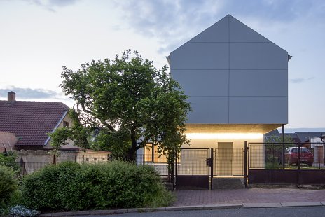Rodinný dom jednoduchého kvádrového tvaru je z časti zapustený do terénu. Má jedno podzemné a dve nadzemné podlažia. Dom svojim architektonickým a dispozičným stvárnením reaguje na výraznú plasticitu a prevýšenie terénu. Pôdorys so stranami 15 a 6,75 m je orientovaný kolmo na ulicu. Napriek zastavanej ploche necelých 140 m2 ide o pohodlné a priestorné bývanie.