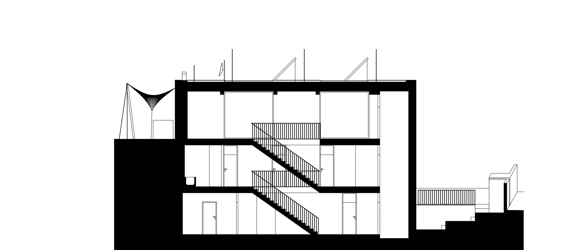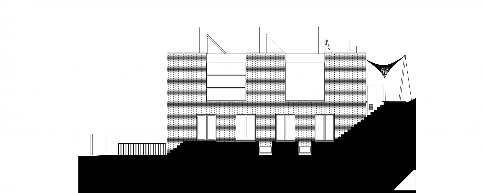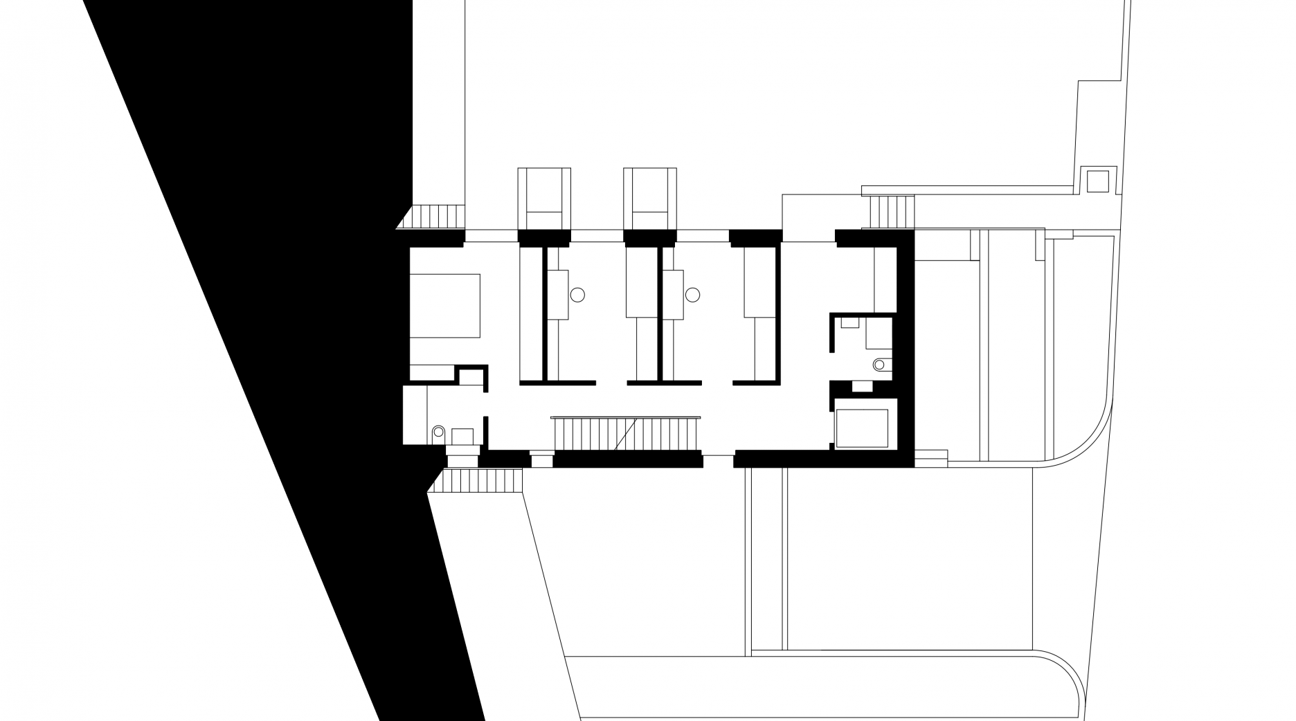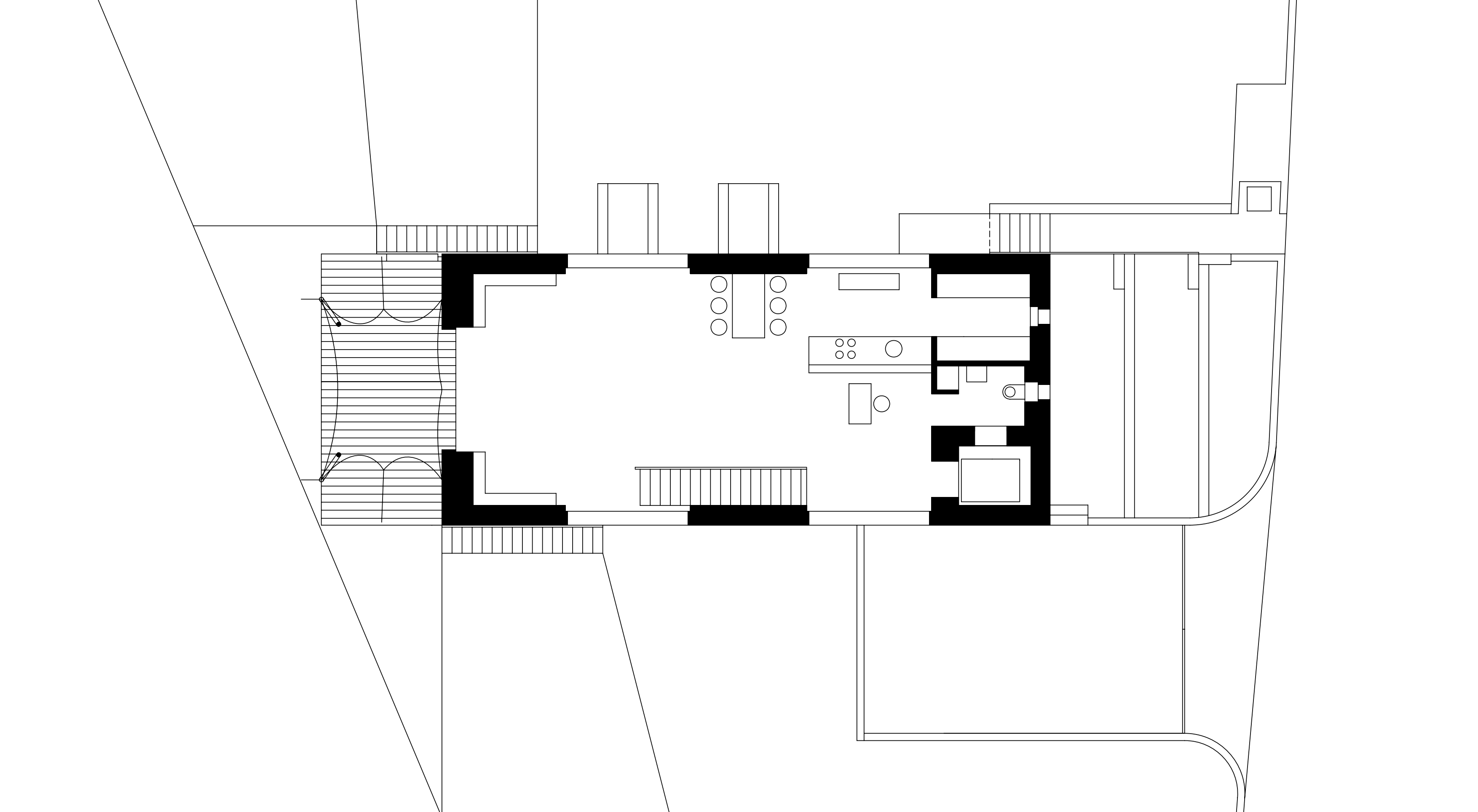 Prevádzka domu je rozčlenená na tri výškové úrovne. V suteréne sa nachádza samostatná garsónka, technické zázemie a tiež garáž pre dva automobily. V garsónke sa dá bývať, ale rovnako dobre môže slúžiť ako kancelária, štúdio alebo ateliér.