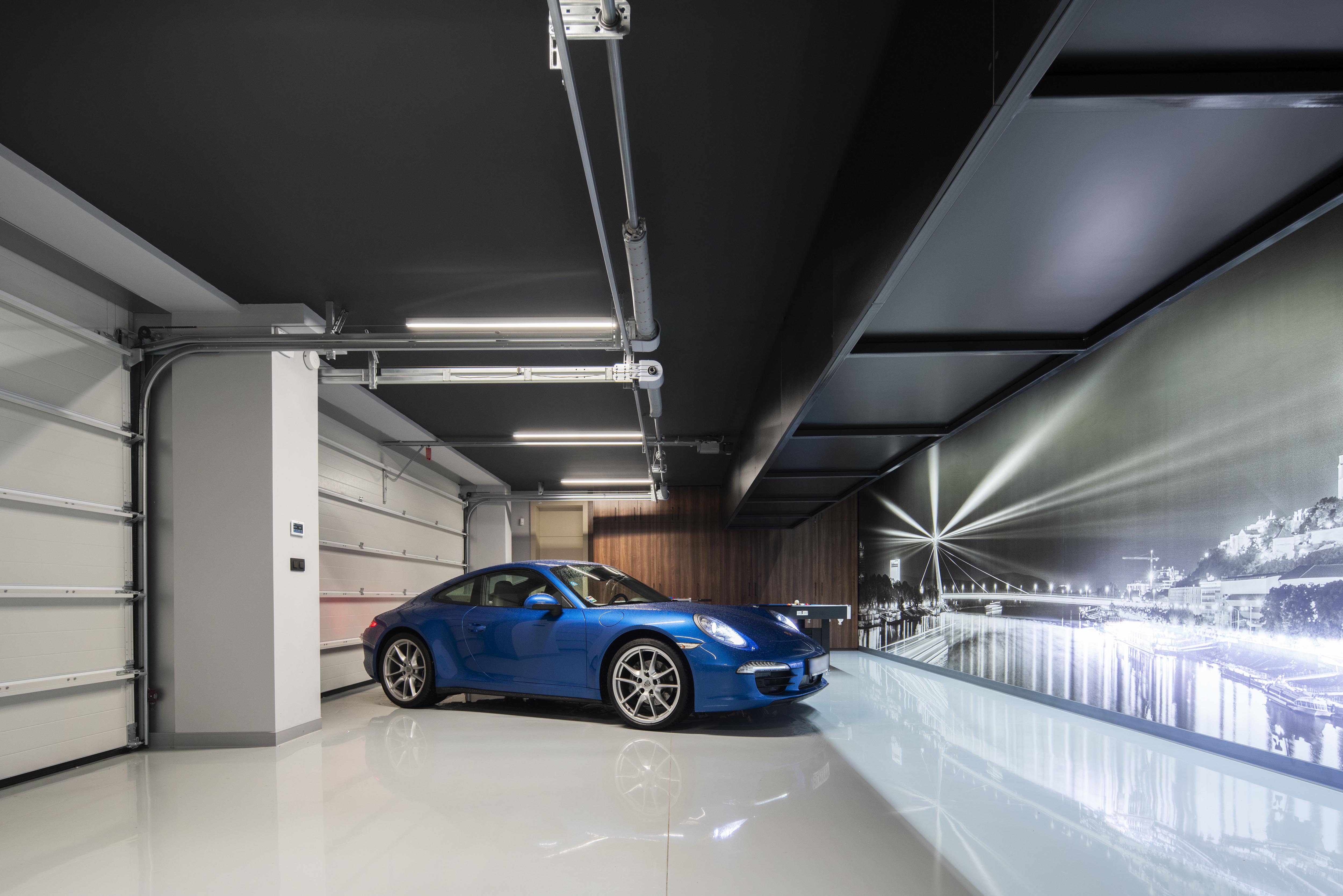 Priestory čiastočne zapusteného podzemného podlažia sa líšia v závislosti od ich orientácie. Severozápadnú časť, v priamej nadväznosti na príjazdovú rampu, využíva garáž. Tá okrem parkovania plní aj dôležitú spoločenskú funkciu a slúži zároveň ako herňa a party miestnosť s priamym prepojením na vonkajší priestor chránený konzolou hlavného podlažia. V zadnej, severovýchodnej časti suterénu sa nachádza hosťovská izba s vlastným hygienickým zázemím a pracovňa. Oba priestory majú možnosť samostatného vstupu z exteriéru a nadväzujú na vizuálne oddelený zadný dvor.
