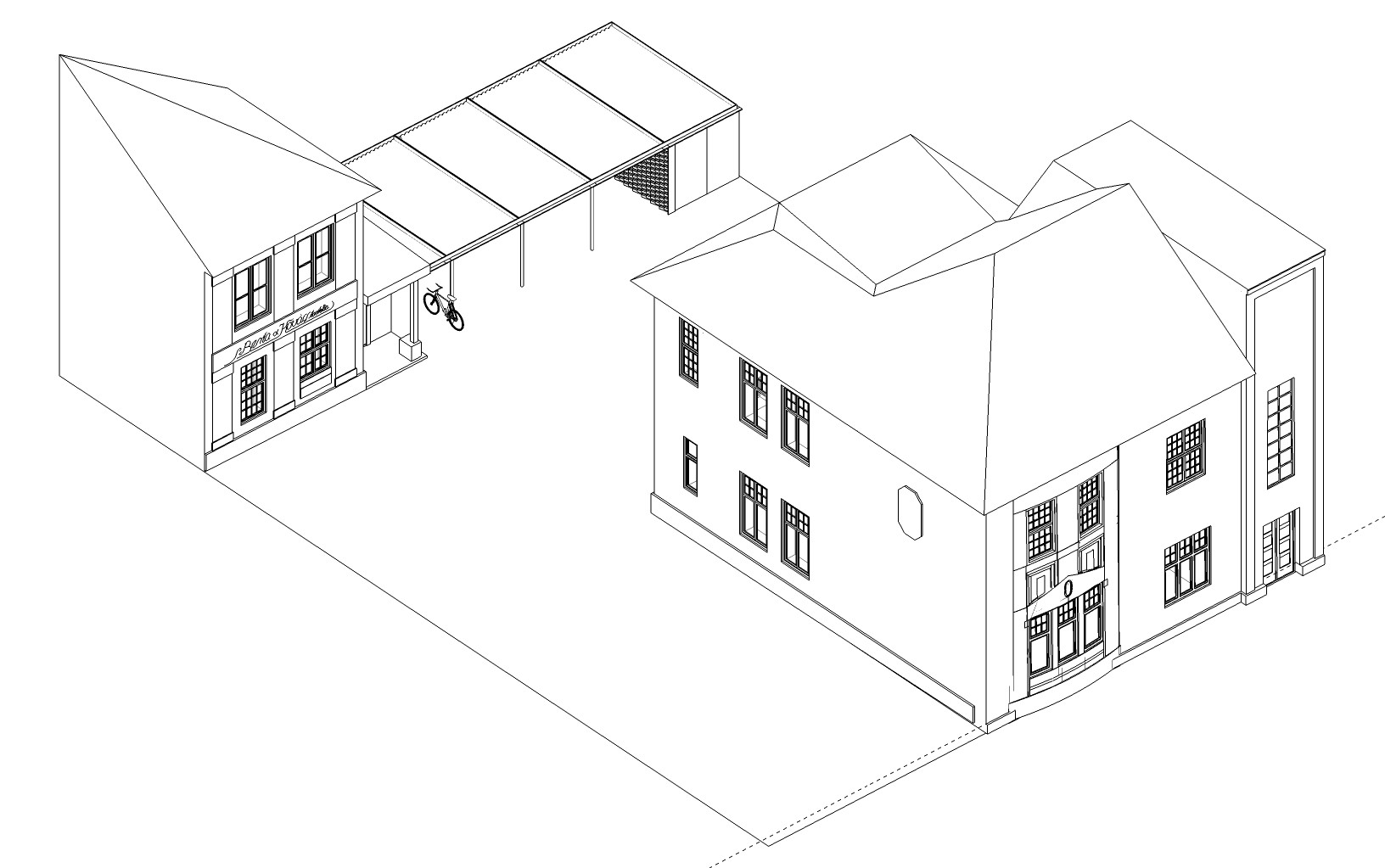 Vila prešla za dlhé obdobie od svojho vzniku viacerými necitlivými stavebnými úpravami. Jednou z najbadateľnejších bolo obmurovanie a prekrytie terasy poschodia a „zrovnanie“ nárožia dvorovej fasády podľa prízemia. To viedlo k realizácii pultovej strechy. Krov bol “natlačený” pod jestvujúce okapy valbovej strechy nad poschodím, ktoré malo pôvodne pôdorysný tvar písmena L. Po overení viacerých variantných riešení sme sa však rozhodli túto časť zachovť, nakoľko sa podarilo konečný výzor prispôsobiť celkovému rázu budovy zjednotením fasád a okien.