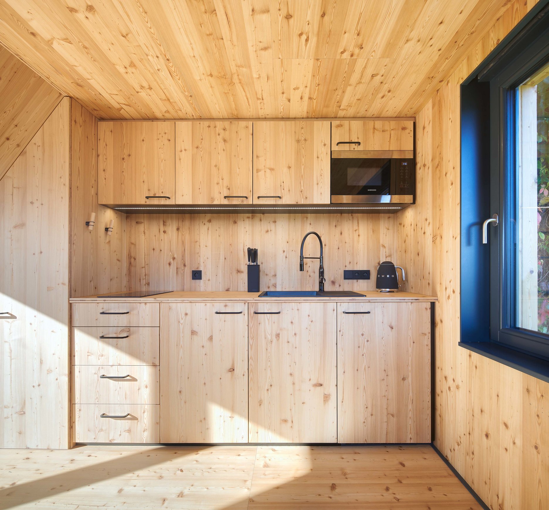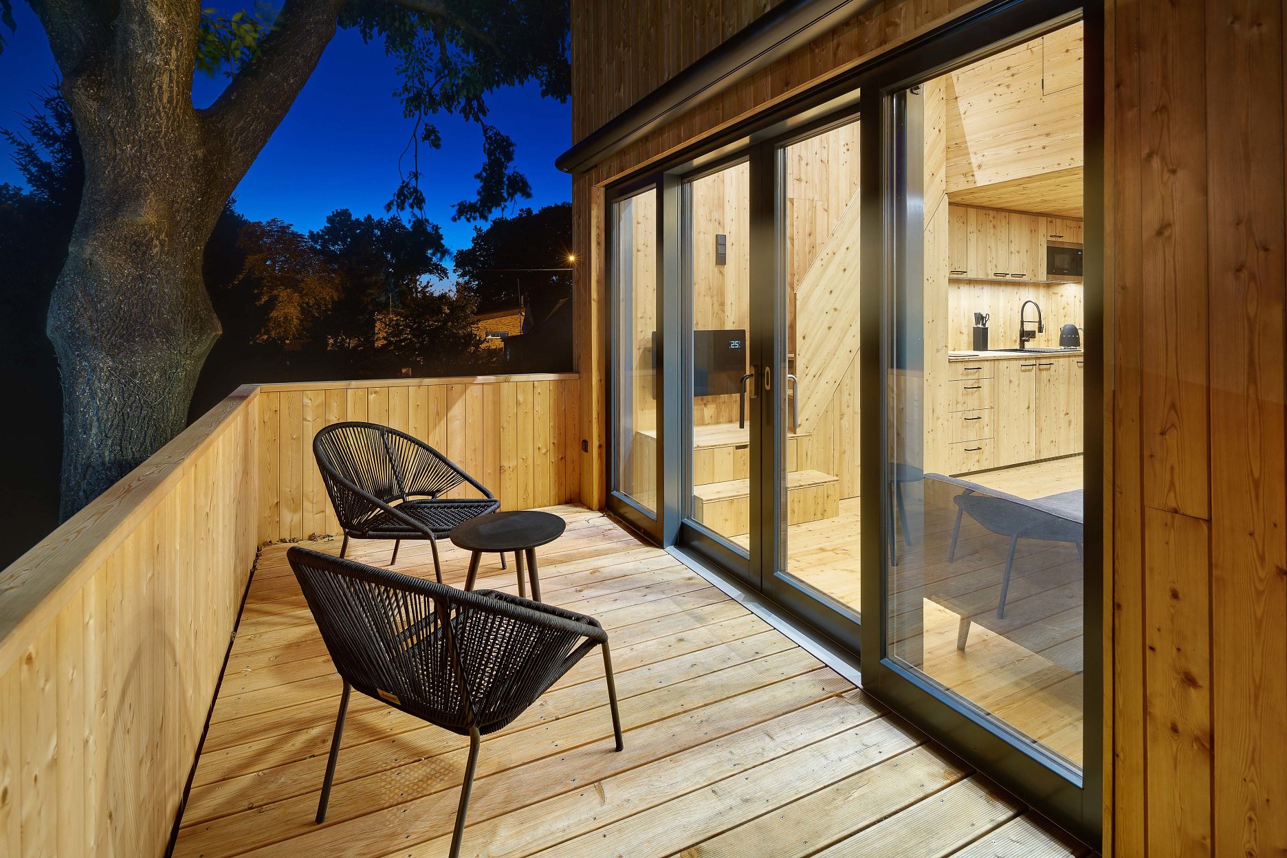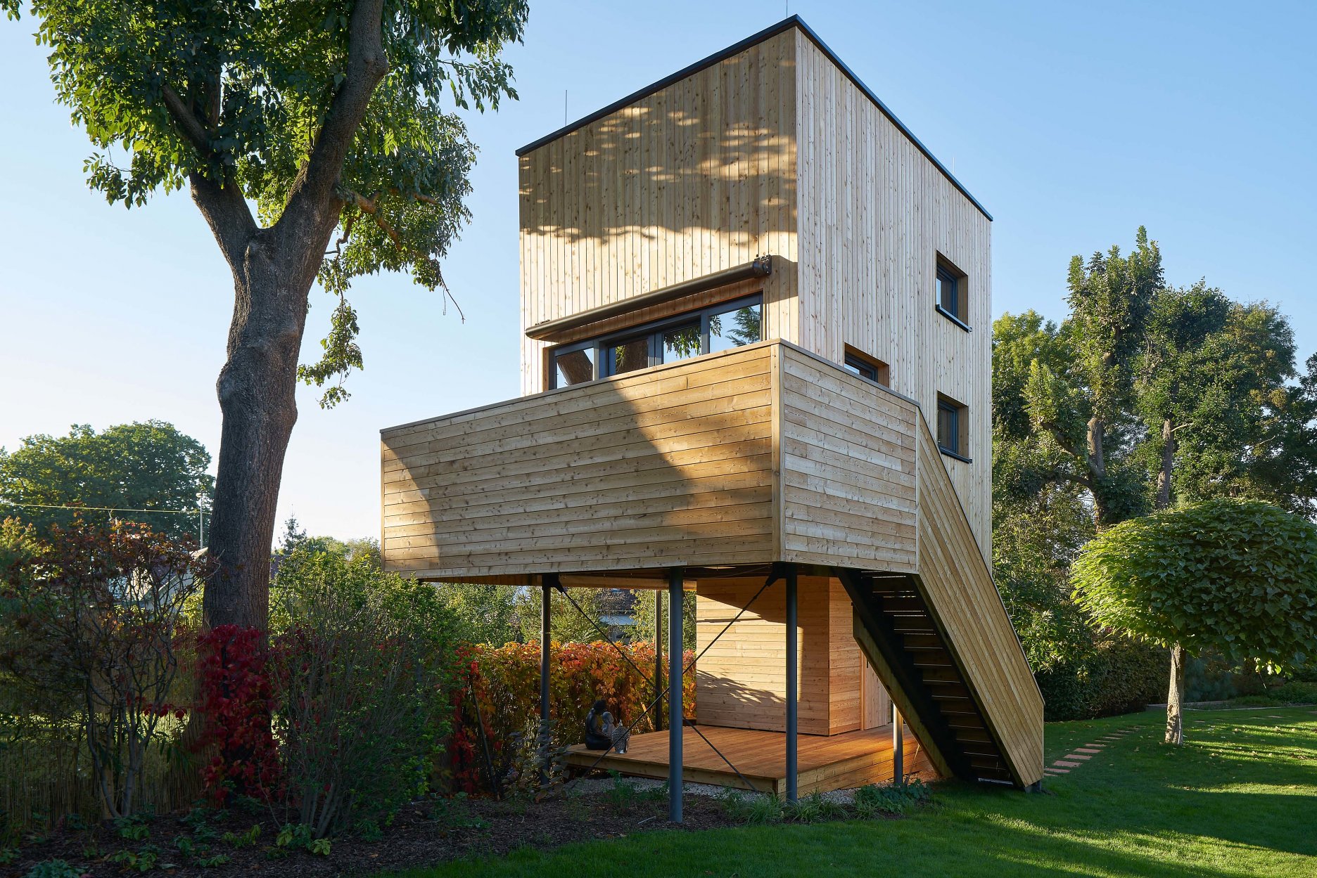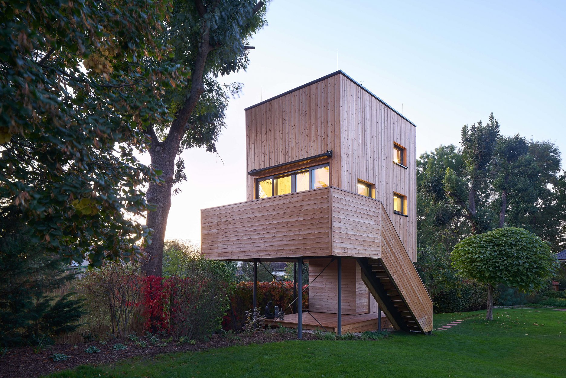 “Klient si přál postavit výměnek na zahradě, který by sloužil jako příležitostní bydlení pro některého člena velké rodiny. Požadavek byl - nízkonákladová dřevostavba s balkonem a jednoduchým a útulným interiérem,” vysvetľuje zadanie architekt Martin Poldauf z ateliéru PRAJAGA.