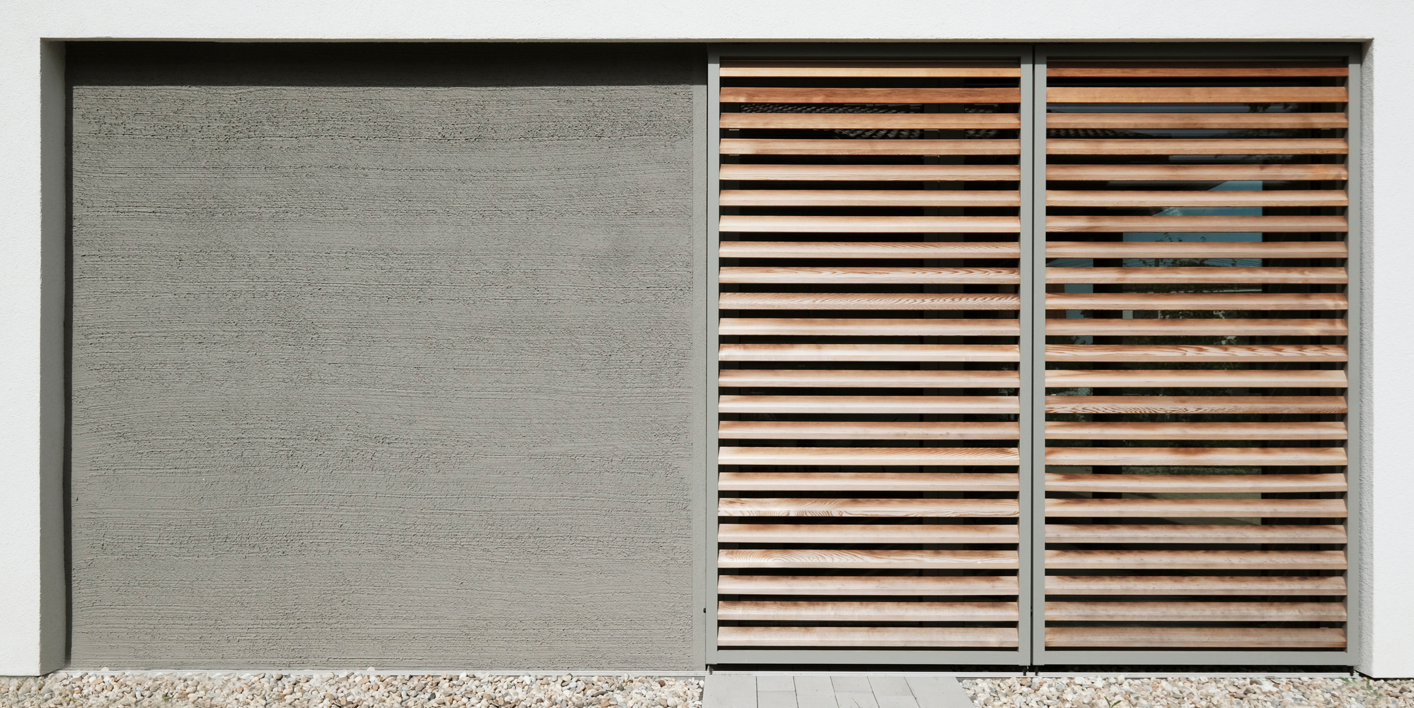 Veľmi dôležitým prvkom fasády je tiež tienenie okenných otvorov, ktoré zabezpečujú posuvné panely z cédrového dreva v hliníkových rámoch. Ich integrácia do fasády a proporcie úzko súvisia s polohou, proporciami či detailmi okien a miestami, kam je možné panely zasunúť. Riešeniu týchto detailov bolo potrebné venovať veľa pozornosti od kreslenia projektu, cez realizáciu hrubej stavby až po objednanie a montáž samotných prvkov.