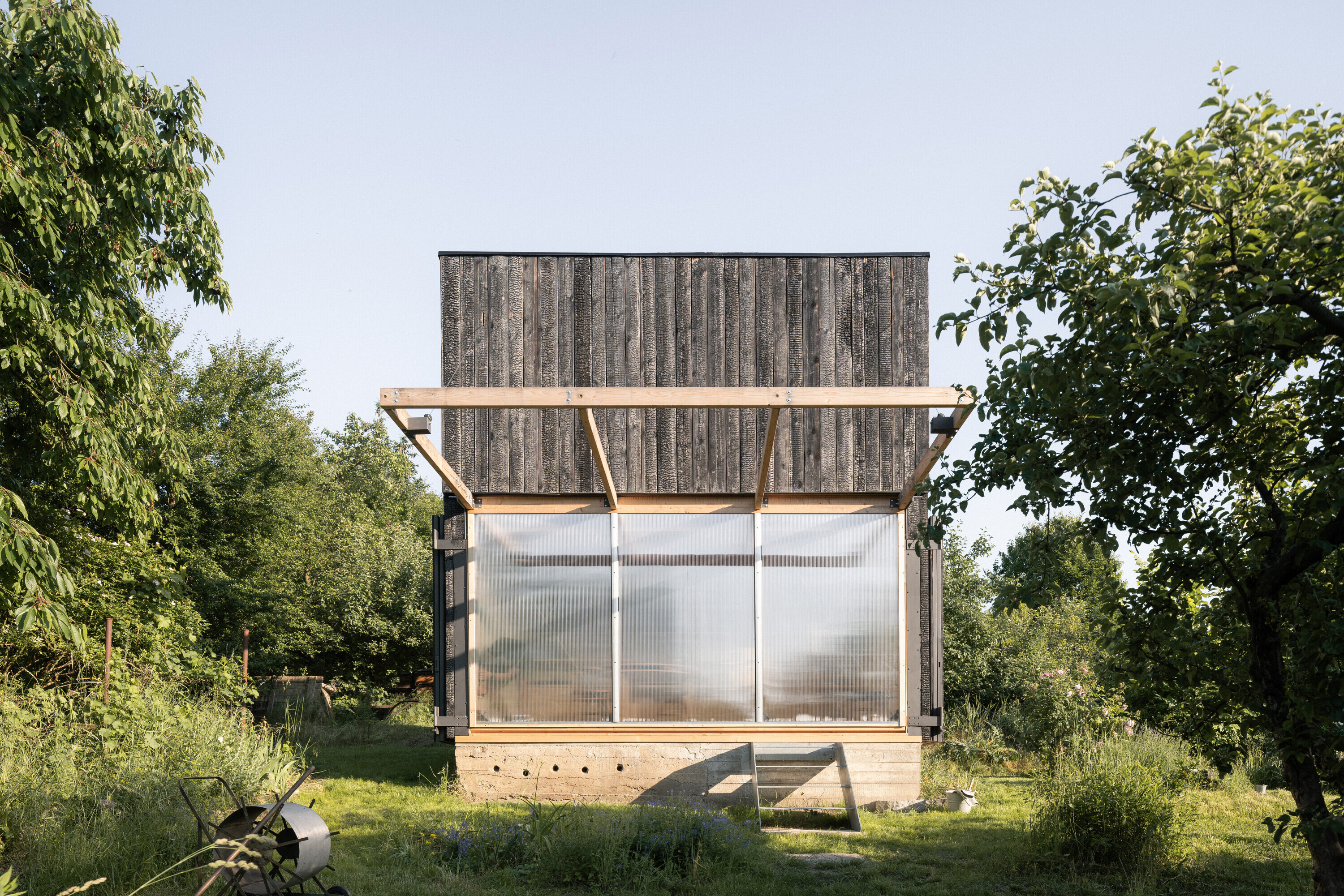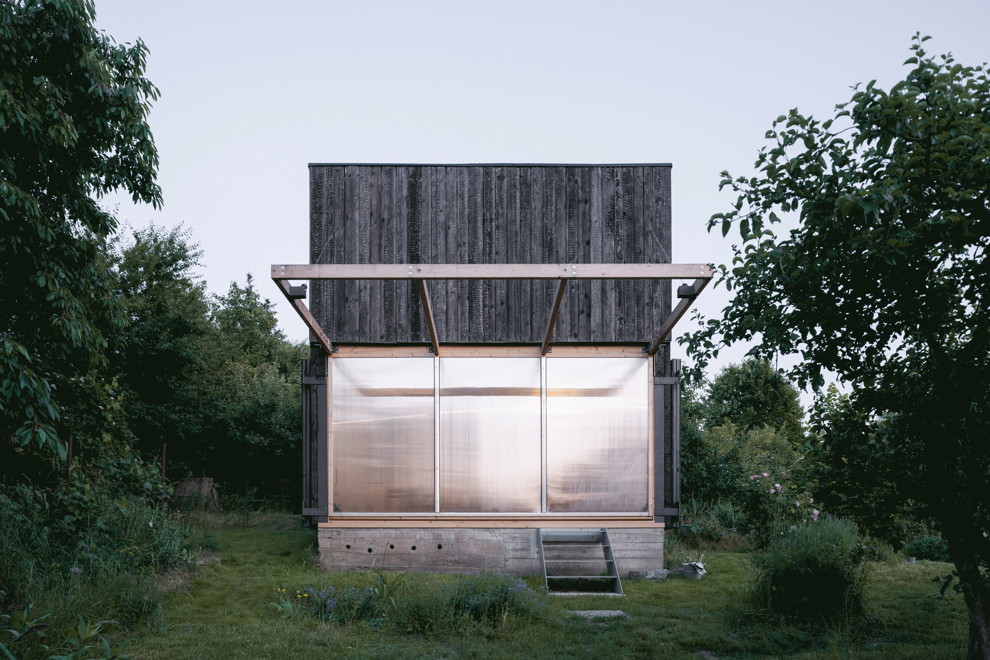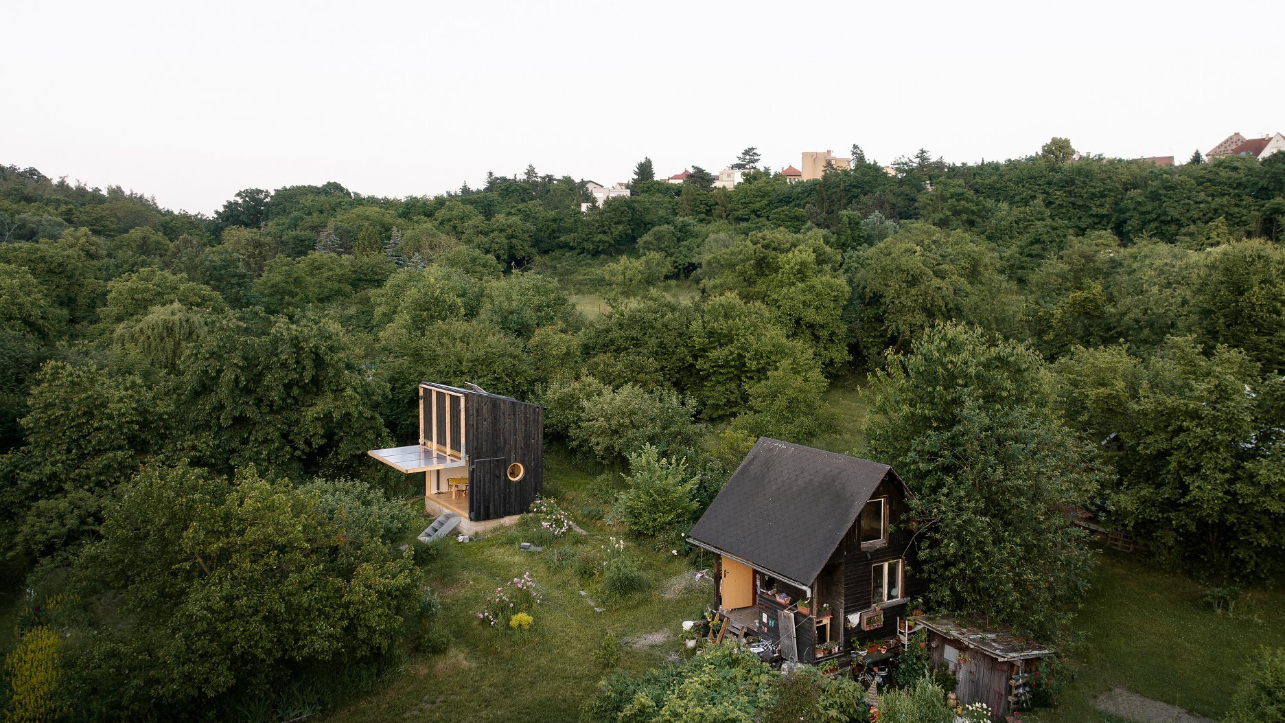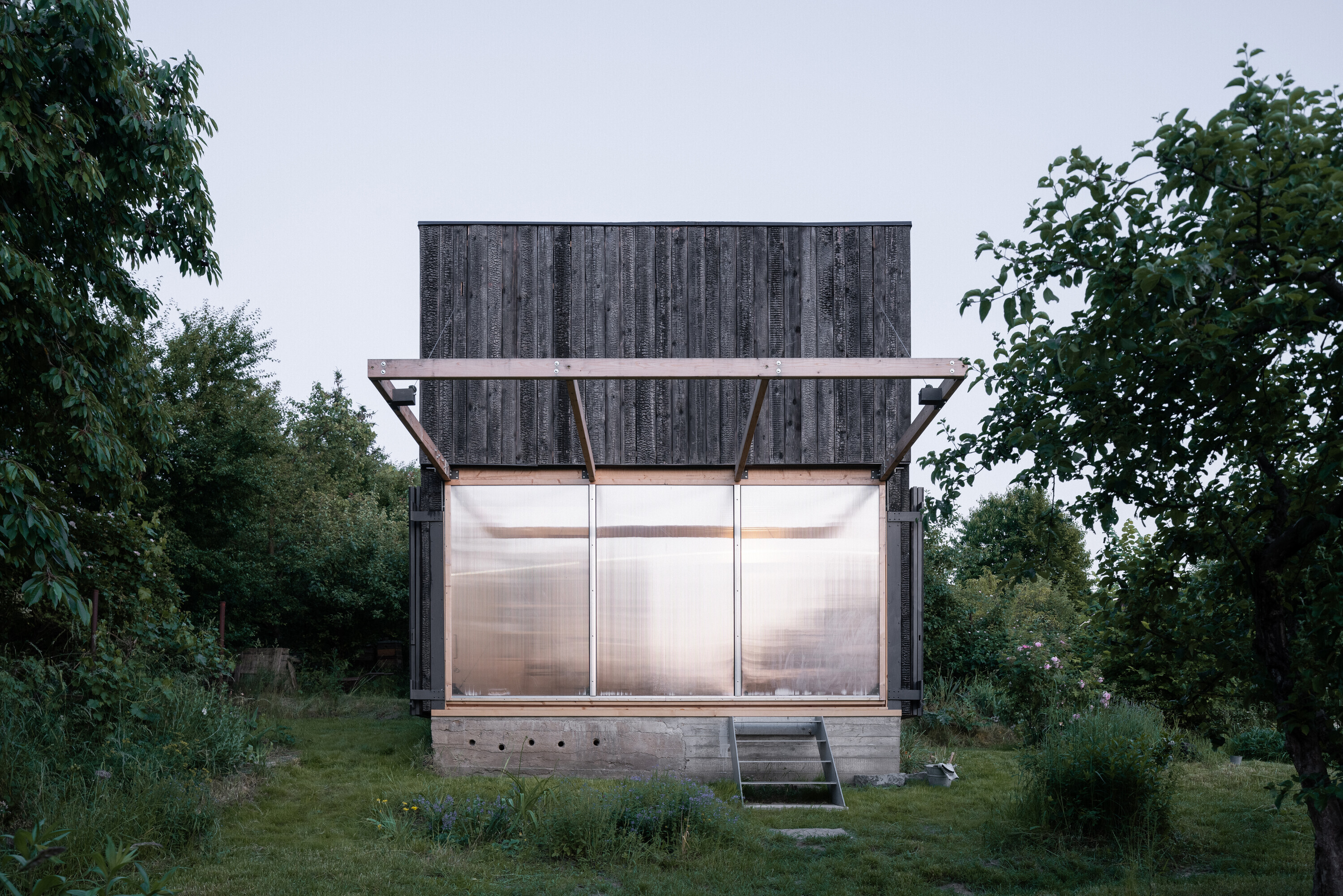 Architekti Jan Holub a Tomáš Hanus z pražského ateliéru BYRÓ navrhli pavilón pre klientov, ktorí vlastnia záhradu uprostred mesta, ktorá sa navyše nachádza iba desať minút chôdze od ich bytu. "Pokud jsou klienti na své zahradě, snaží se trávit maximum času venku a přišli za námi se specifickým a možná lehce paradoxním zadáním. Na místě původní, rozpadající se chatky, chtěli novou stavbu, do které se však zároveň nechtěli před zahradou zavírat. Objekt měl nabízet pouze skromný prostor především při nepříznivém počasí a umožnit příležitostné přespání v letních měsících", vysvetľujú architekti východiská projektu. Počas zimy navyše stavba slúži ako obdoba zimnej záhrady pre teplomilné rastliny.