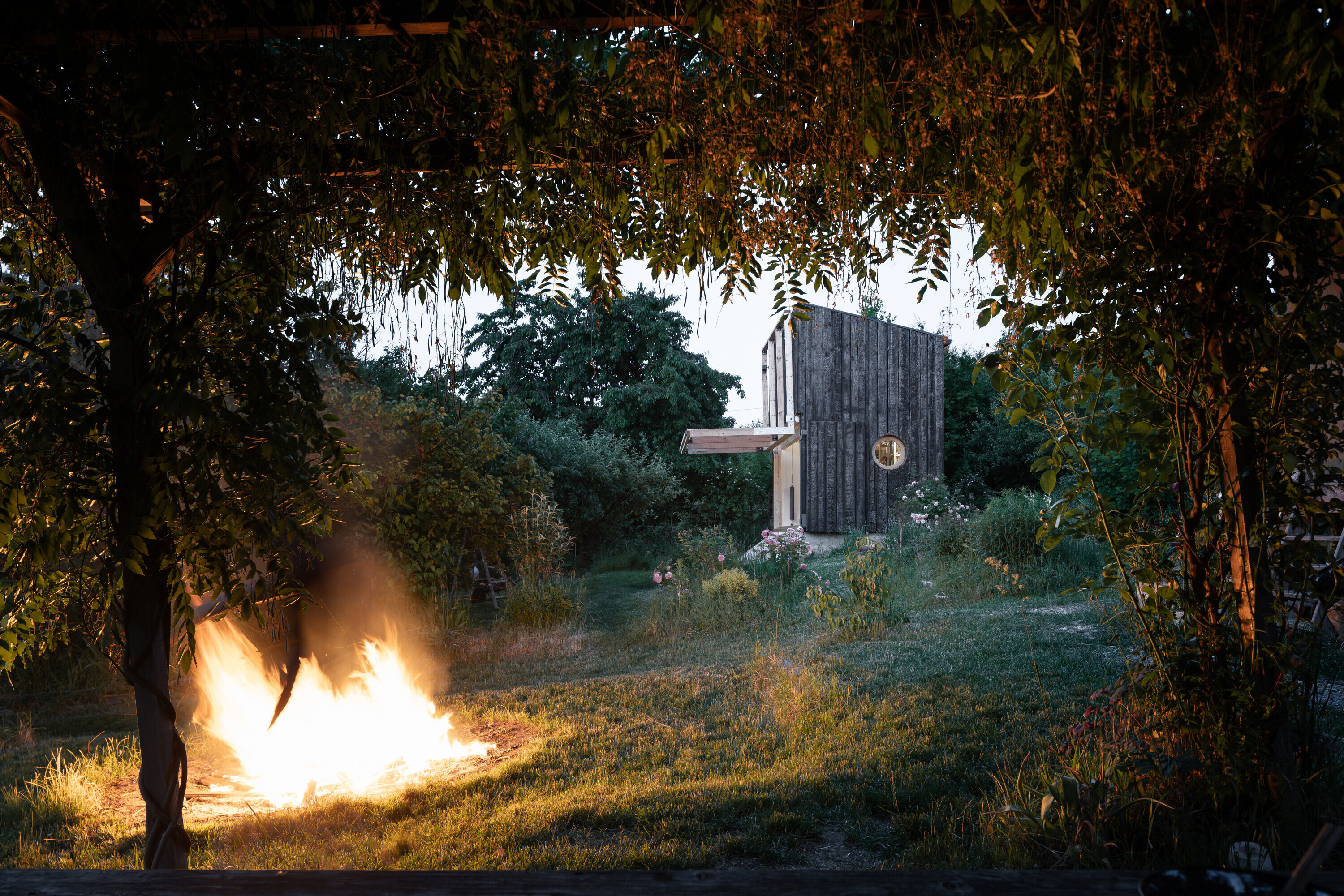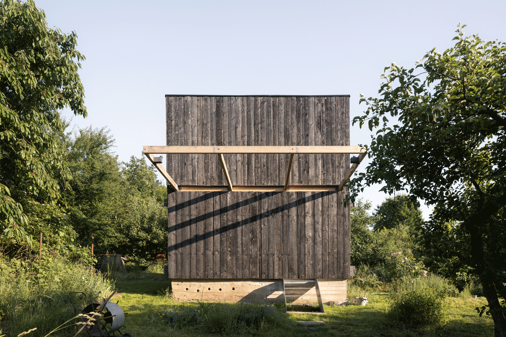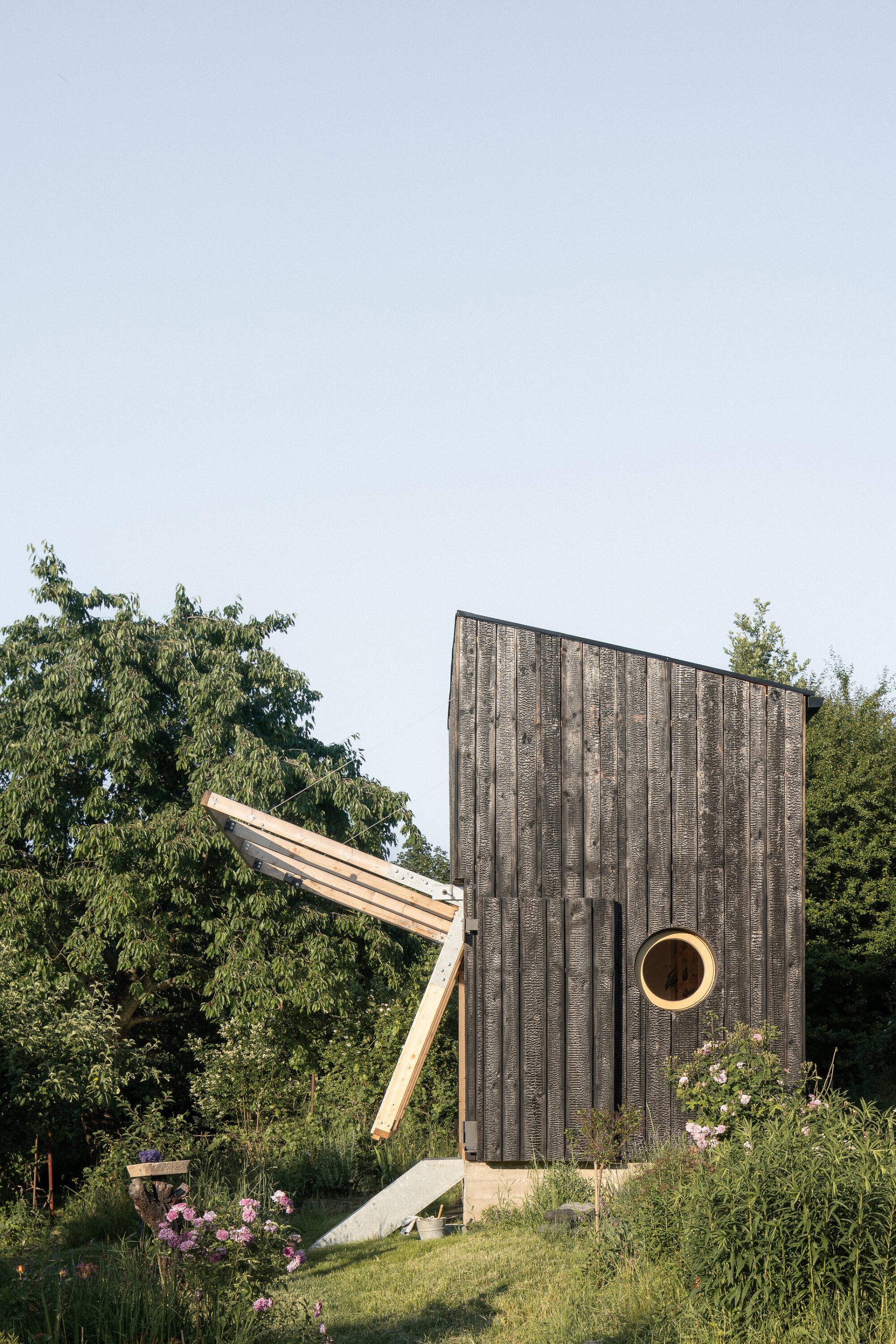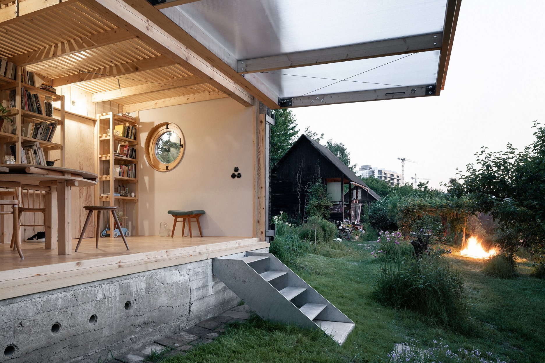 Architekti Jan Holub a Tomáš Hanus z pražského ateliéru BYRÓ navrhli pavilón pre klientov, ktorí vlastnia záhradu uprostred mesta, ktorá sa navyše nachádza iba desať minút chôdze od ich bytu. "Pokud jsou klienti na své zahradě, snaží se trávit maximum času venku a přišli za námi se specifickým a možná lehce paradoxním zadáním. Na místě původní, rozpadající se chatky, chtěli novou stavbu, do které se však zároveň nechtěli před zahradou zavírat. Objekt měl nabízet pouze skromný prostor především při nepříznivém počasí a umožnit příležitostné přespání v letních měsících", vysvetľujú architekti východiská projektu. Počas zimy navyše stavba slúži ako obdoba zimnej záhrady pre teplomilné rastliny.