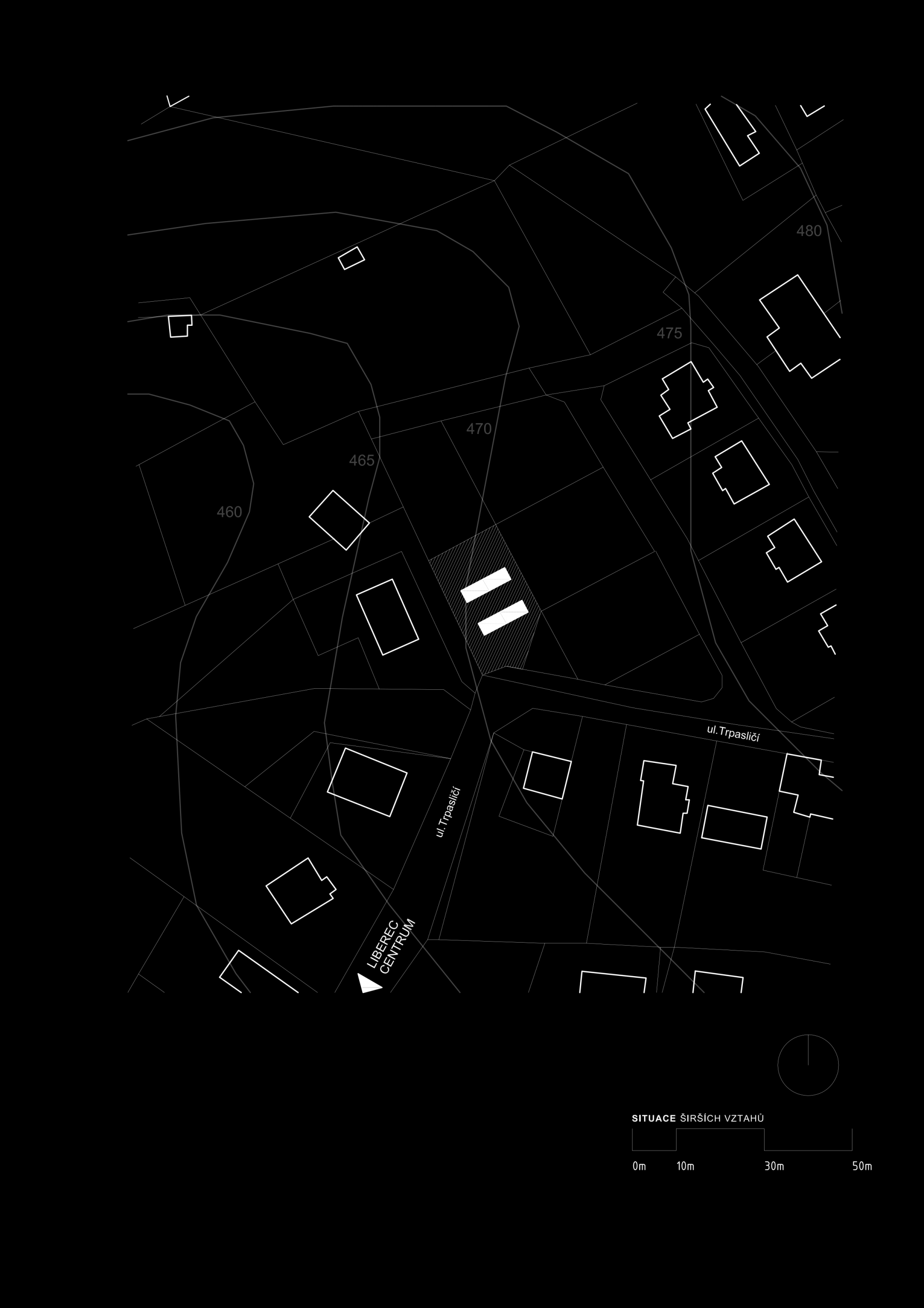 Liberec je vyhlášeným nočníkem republiky. Místní osada Jizerka se navíc s šumavskou Kvildou přetahuje o titul nejchladnějšího místa v Čechách. V těchto souvislostech připomíná liberecká čtvrť Ruprechtice na úpatí Jizerských hor spíše oázu. Smog se válí ve městě a na horních jižní svazích, kterým se přezdívá Sluneční lázně, panuje zcela odlišné klima: čistý vzduch a klid. Tento fakt si pochopitelně uvědomují všichni Liberečané, čemuž odpovídají ceny místních pozemků. Pozemek, který si pořídil architekt Petr Stolín, byl ve výsledku dražší než výsledné domy. S jejich realizací však nespěchal. Pozemek nechal ležet ladem dlouhých pět let a ve své kanceláři na “parníku“ Ermeg vytvářel varianty.