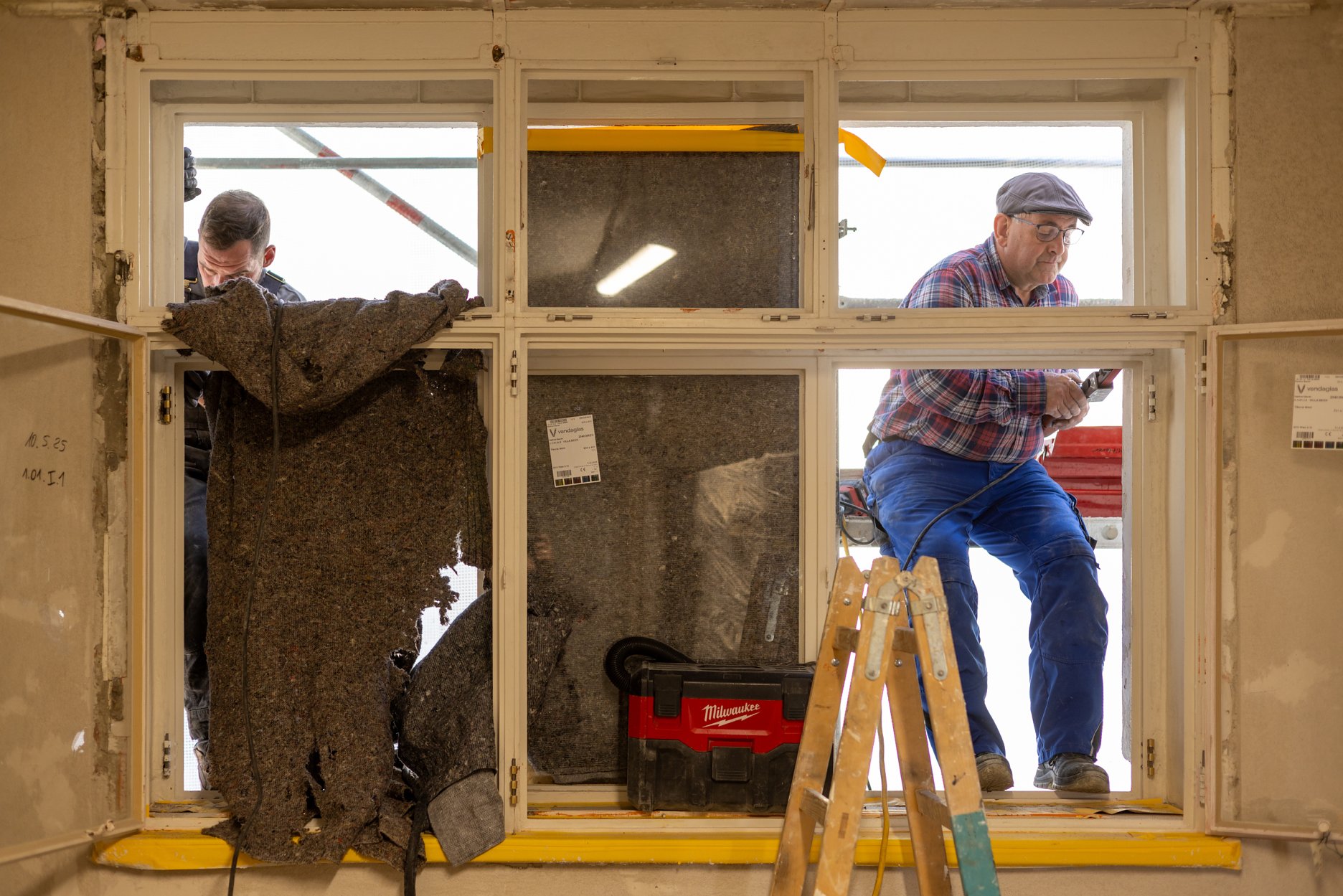 Fotografie a grafika z procesu rekonštrukcie vily: