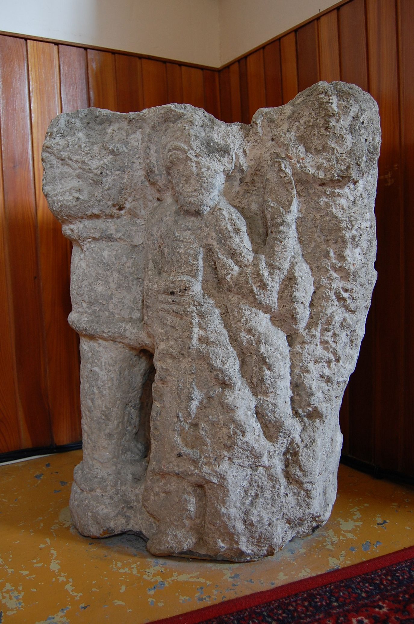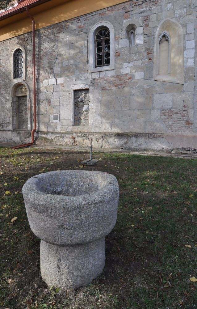 12. storočia, z ktorého o približne 400 rokov neskôr urobili krstiteľnicu. Podľa inej hypotézy išlo o krsteľnicu alebo sväteničku, zamurovanú do steny pri vchode. Nájdeme ju aj na poštovej známke vydanej 2. januára 2009.
