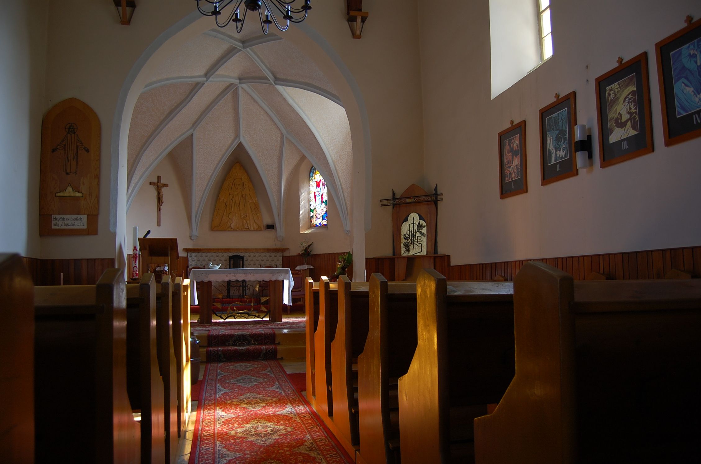 Románske prvky kostolíka boli objavené až v rokoch 1963 a 1964. V interiéri nájdeme unikátnu kamennú krstiteľnicu s reliéfom žehnajúceho Krista a románskymi stĺpikmi. Pôvodne išlo asi o podstavec oltárneho stola datovaný do polovice 12. storočia, z ktorého o približne 400 rokov neskôr urobili krstiteľnicu. Podľa inej hypotézy išlo o krsteľnicu alebo sväteničku, zamurovanú do steny pri vchode. Nájdeme ju aj na poštovej známke vydanej 2. januára 2009.