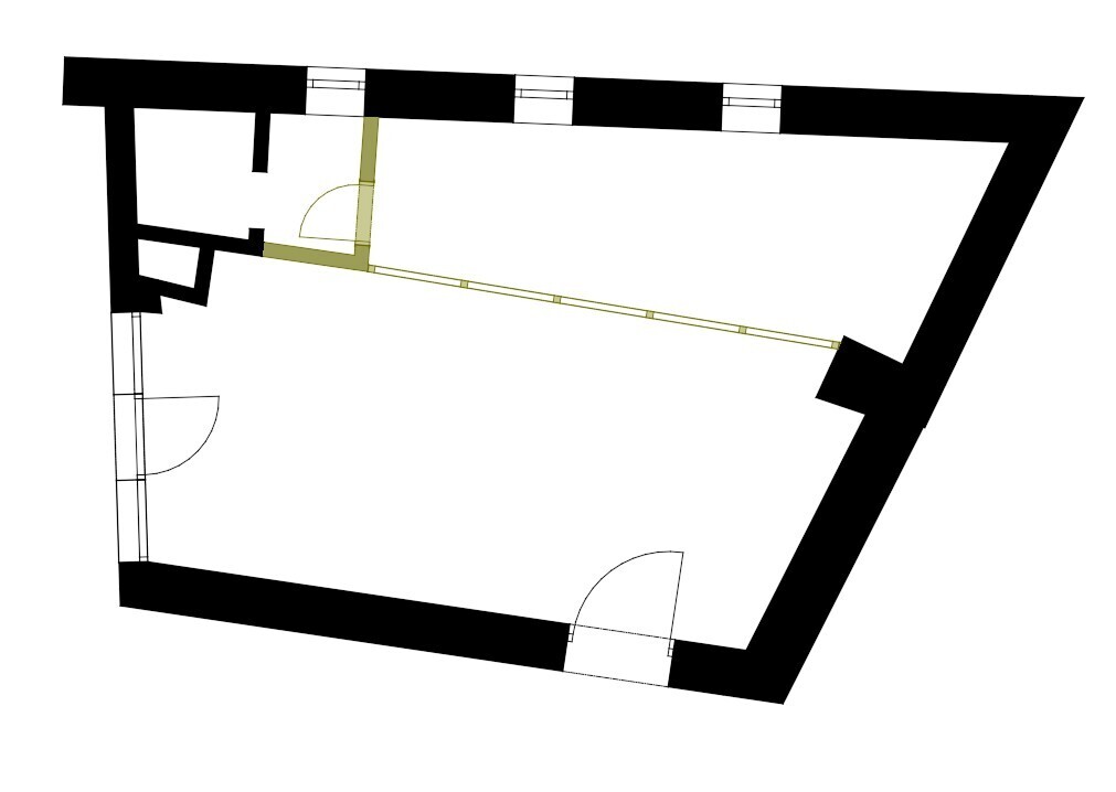 Cieľom návrhu bolo čo najviac „otvoriť“ a presvetliť priestor. Menšími stavebnými zásahmi sme asanovali drevenú konštrukciu a časť steny, ktorá tvorila predsieň do wc.
