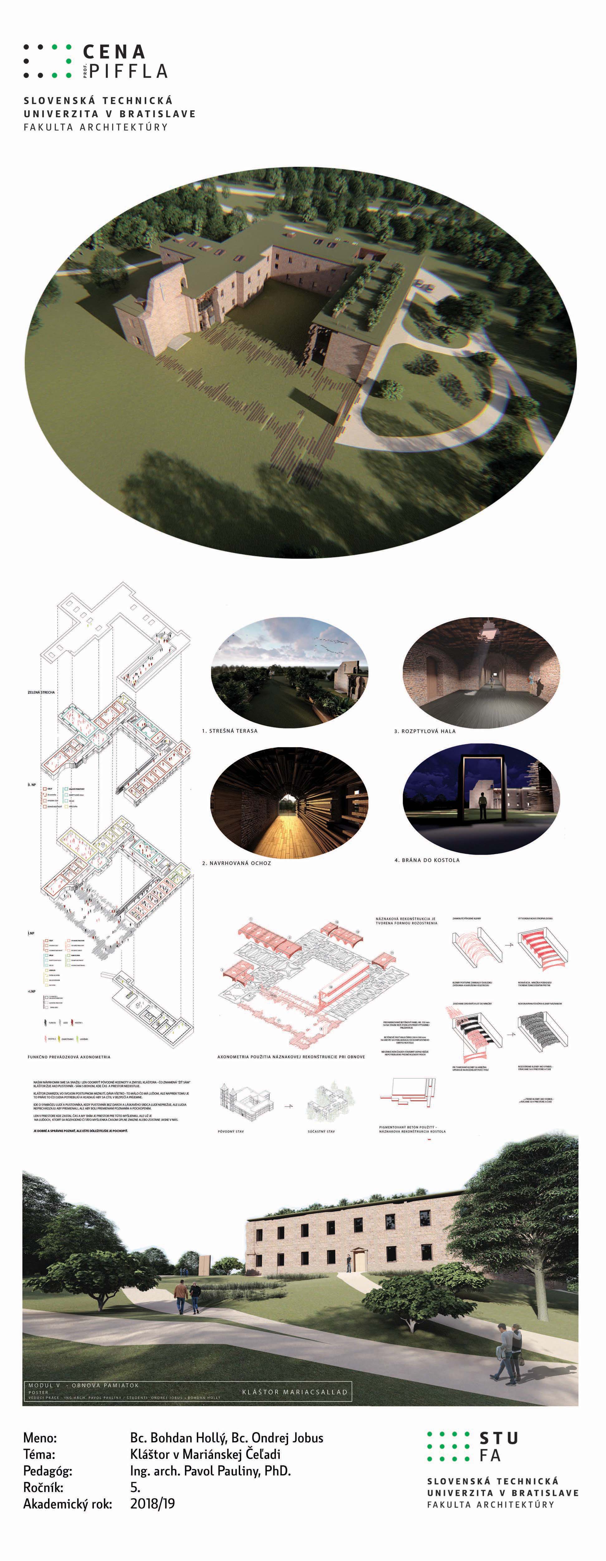 Cenu dekana za akademický rok 2018/19 získal Bohdan Hollý a Ondrej Jobus za návrh obnovy kláštora v Mariánskej Čeľaďi. Ocenení študenti sú zároveň laureátmi Ceny profesora Piffla (za najlepšiu ateliérovú prácu v oblasti obnovy pamiatkových objektov a súborov):