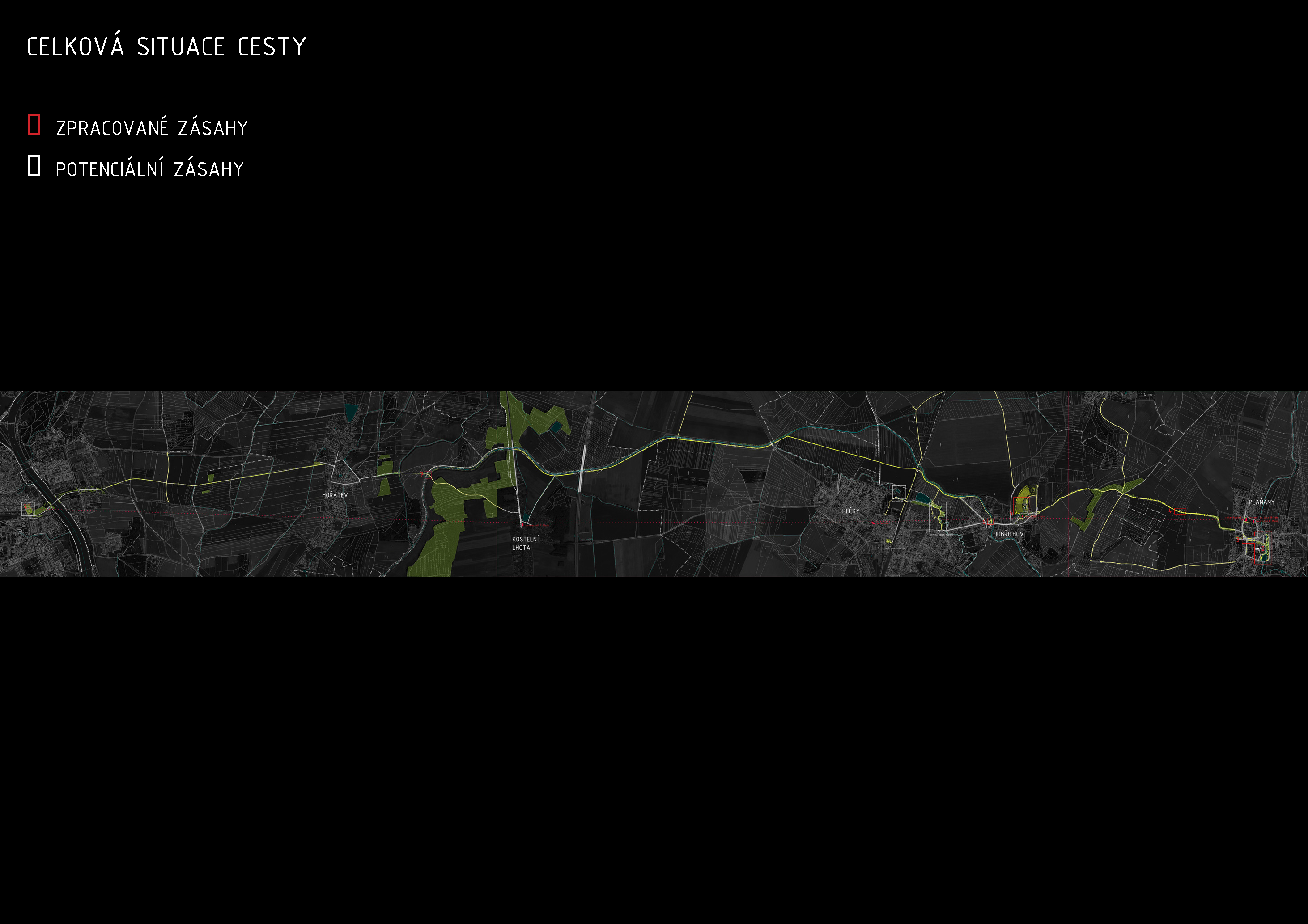 Předmětem diplomové práce je projekt cesty protínající část Polabské nížiny. Práce v sobě pojí klíčové motivy, kterými jsou cesta, krajina a zastavení – místo. Spolu pak vytvářejí komplexní obraz – příběh. Záměrem bylo vytvoření takového obrazu, který netvoří absolutně homogenní celek, ale spíše sérii drobných zásahů, které mnohou fungovat i samostatně jako jednotlivé kapitoly delšího příběhu.