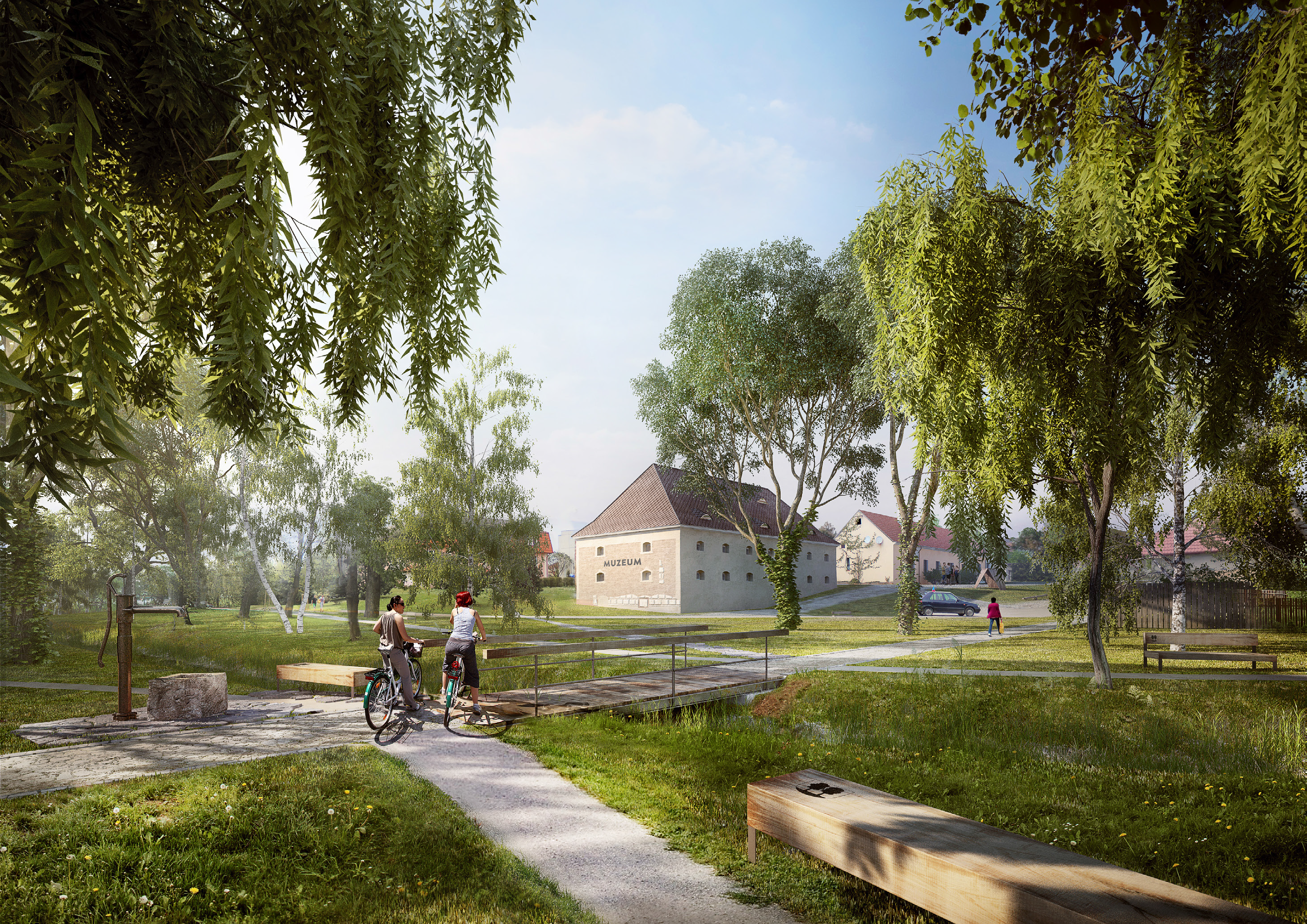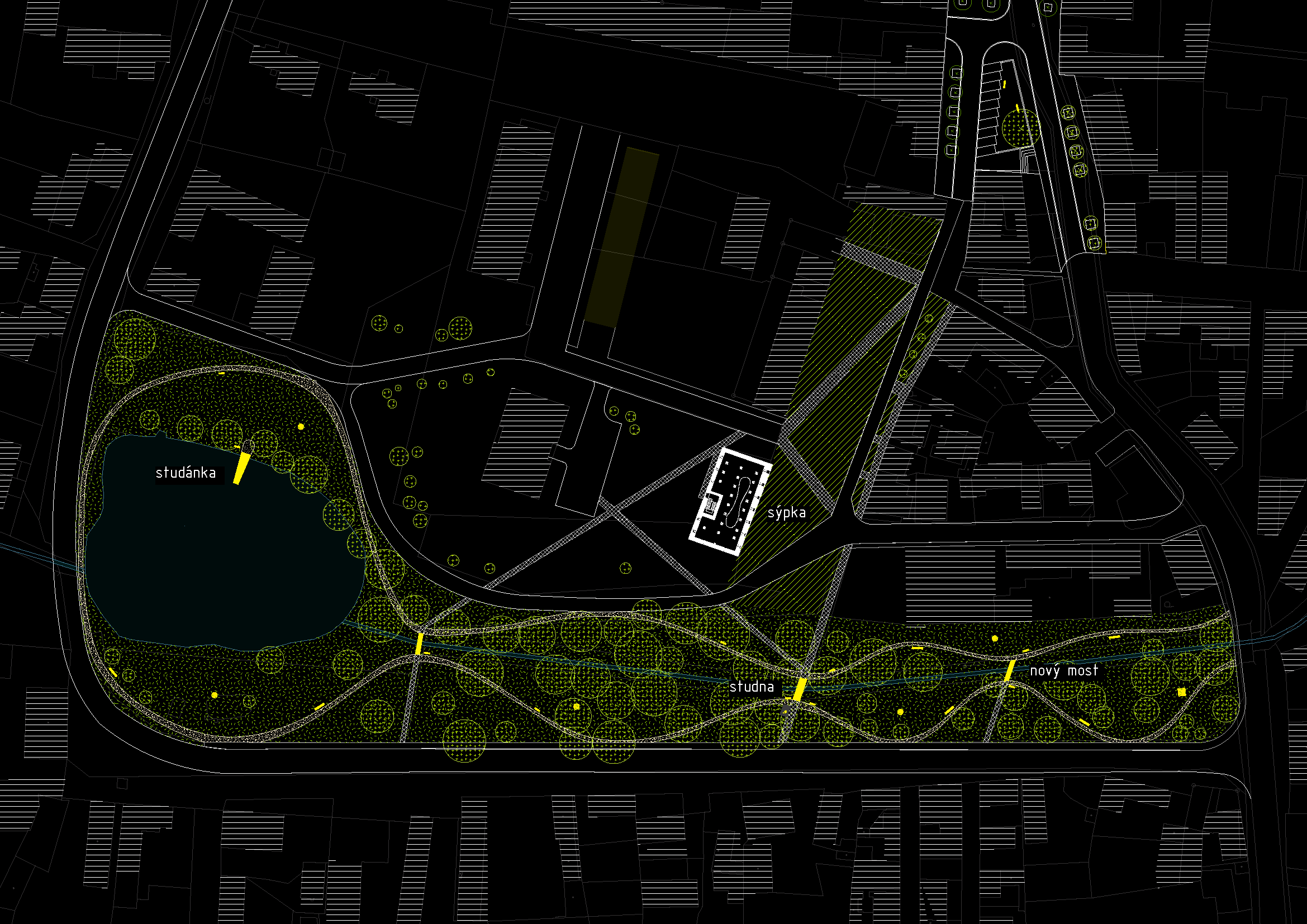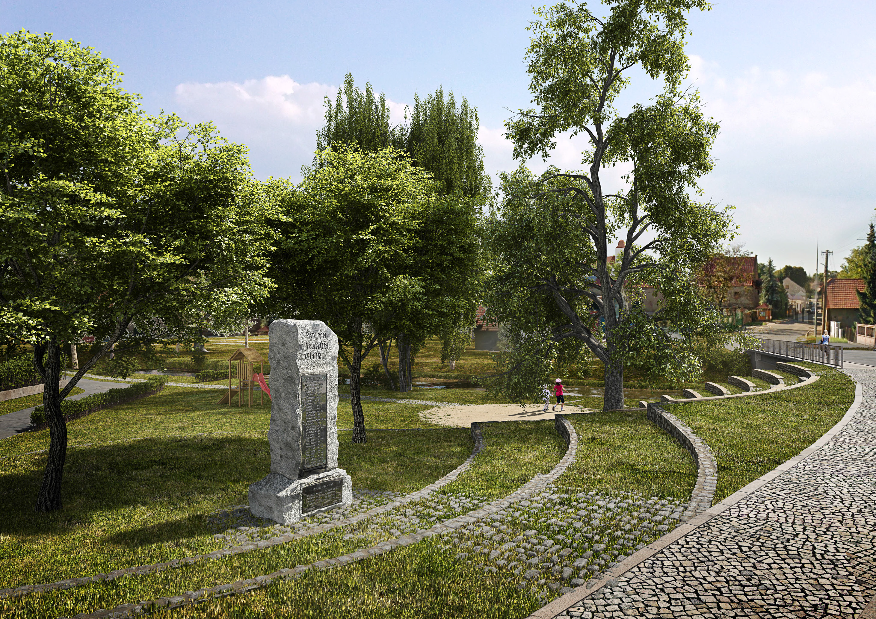 Návrh se vypořádává se zmíněnými nedostatky a naplňuje společenskou funkci prostoru. Veškeré úpravy se soustředí kolem památníku a mostního valu, zatímco fungující část s dětským hřištěm je ponechána