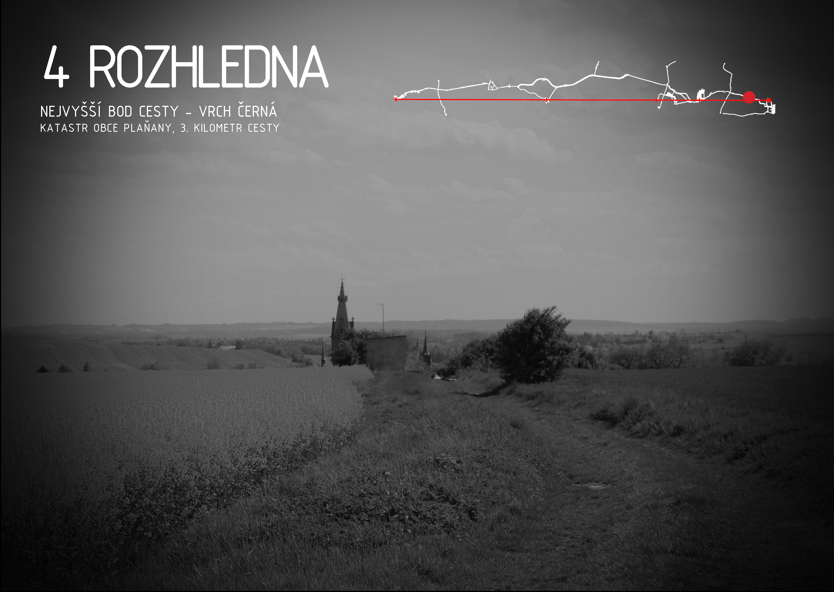 Rozhledna se nachází na kopci Černá, za humny obce Plaňany. Se svými 252 m n. m. se jedná o nejvyšší bod cesty. V současné době zde slepě končí polní cesta, která je dále zaoraná. Návrh počítá s obnovou tohoto úseku a zřízení rozhledny,