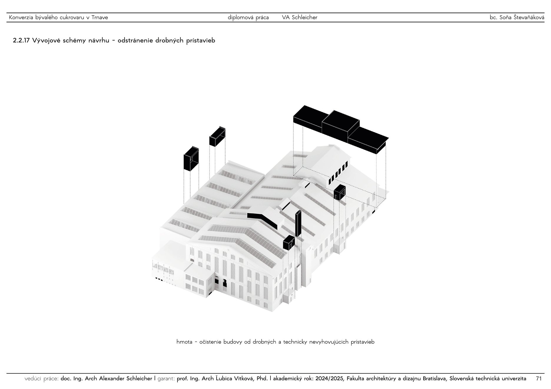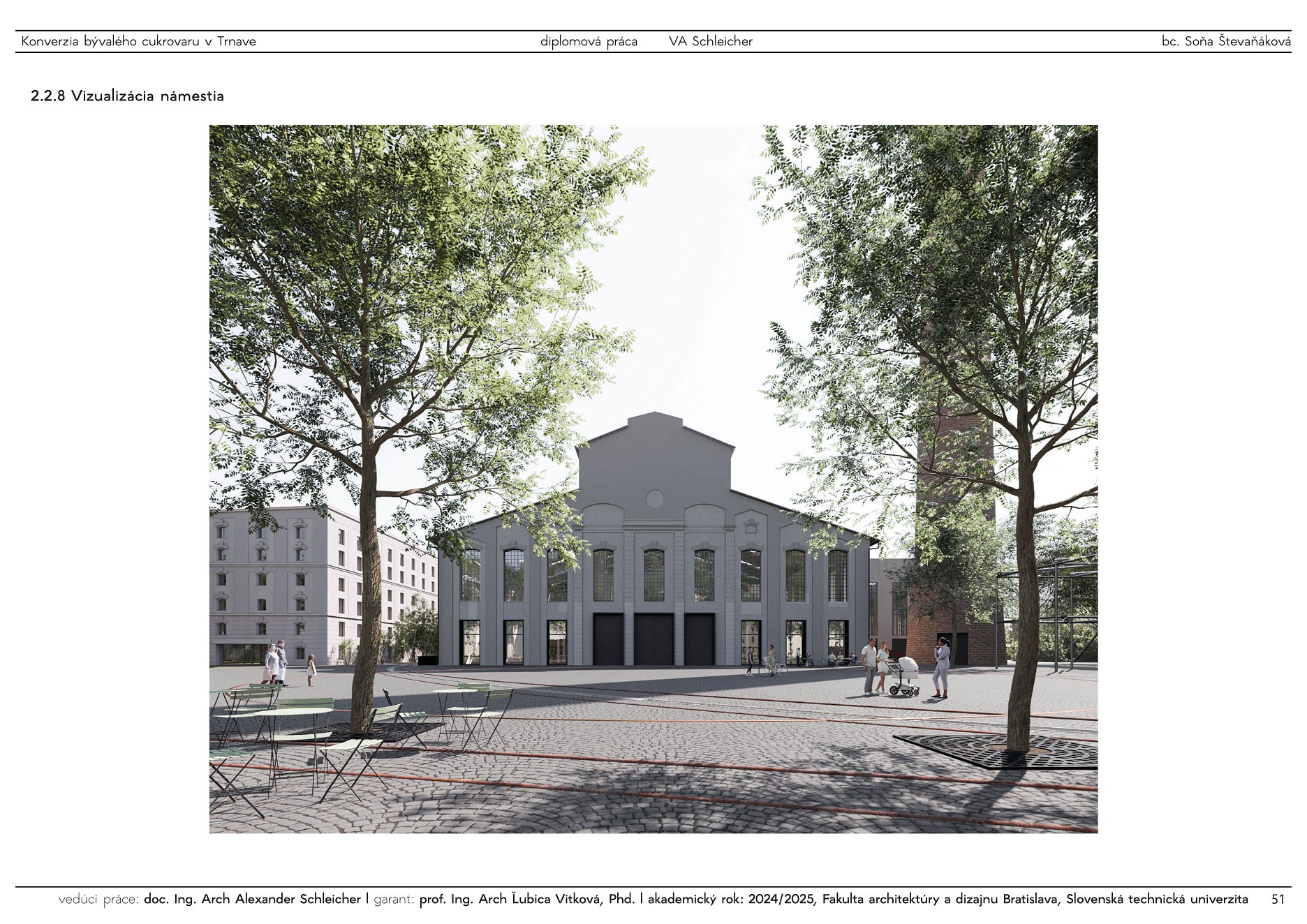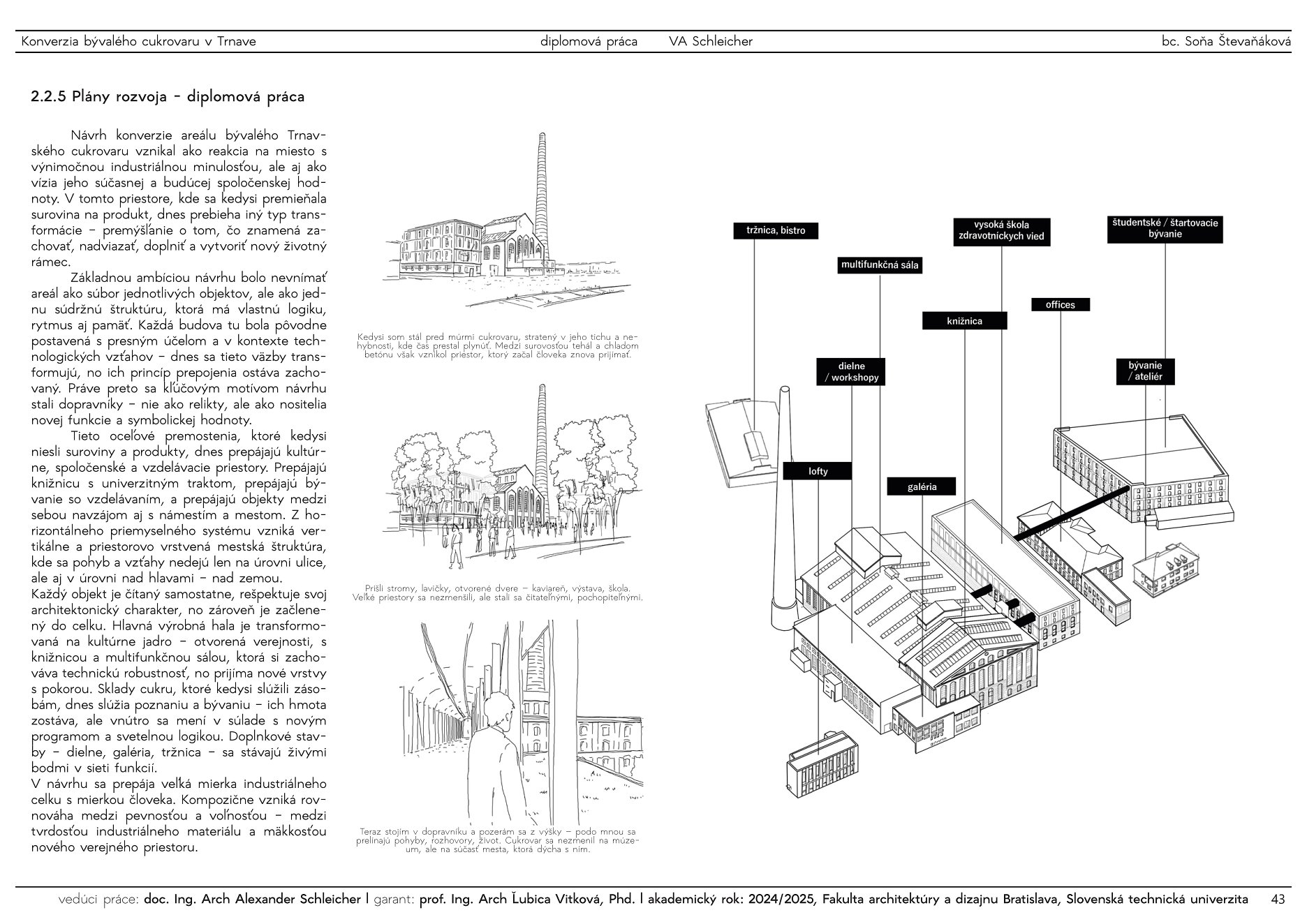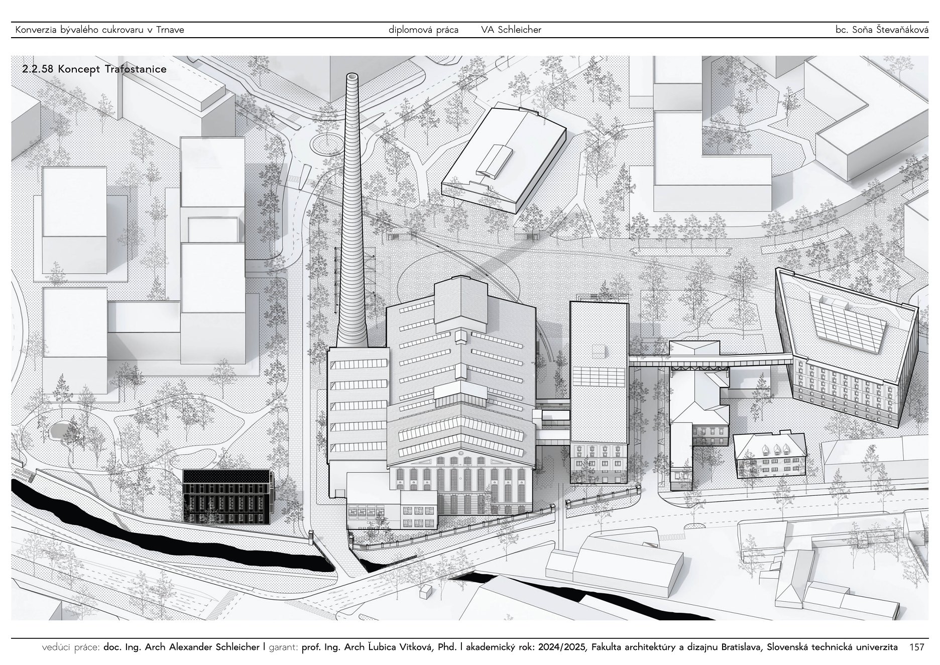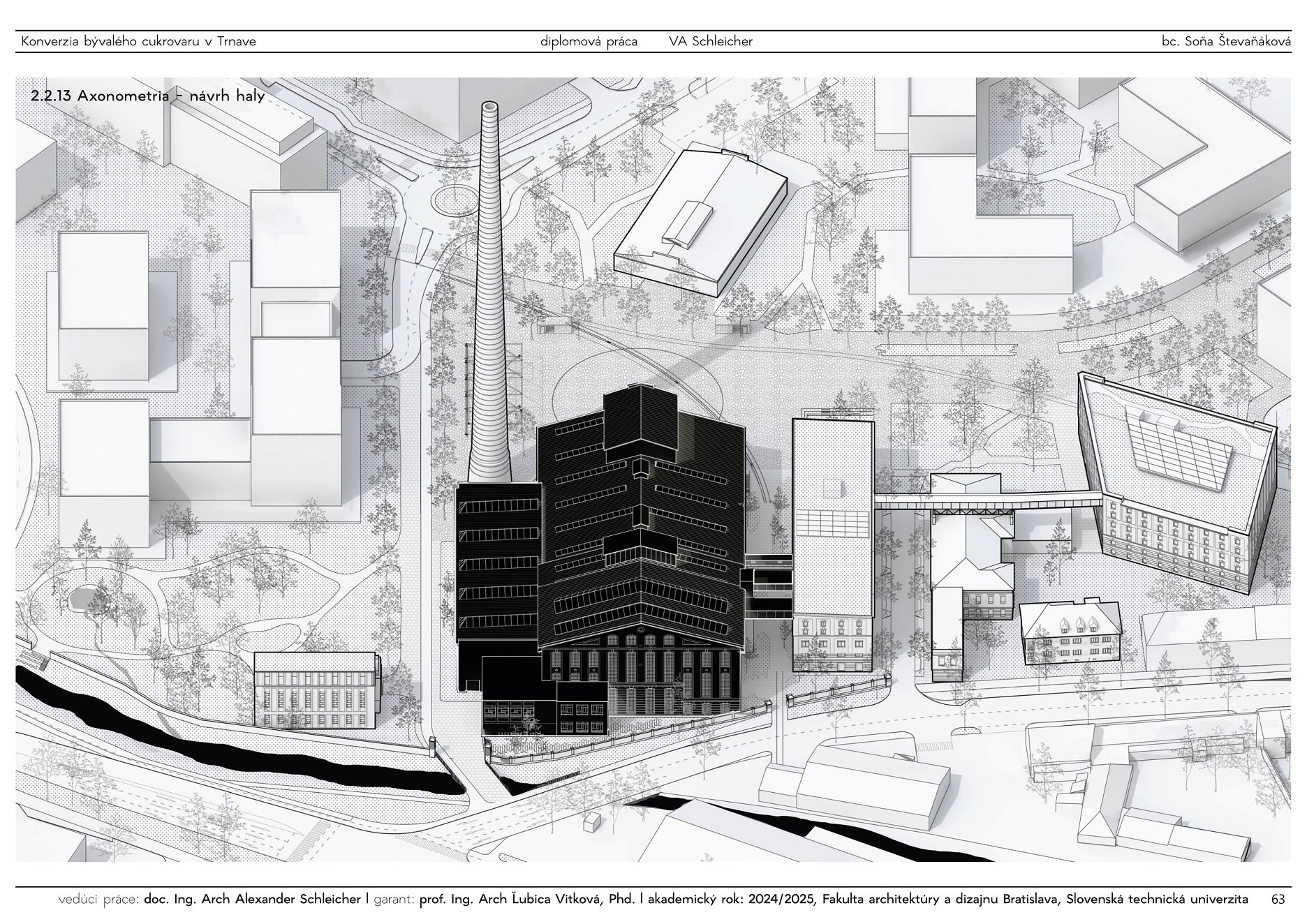 Dnes priblížime prácu „Konverzia cukrovaru a priemyselného areálu, Trnava“, ktorá vznikla na pôde Fakulty architektúry a dizajnu STU v Bratislave pod vedením Alexandra Schleichera. Diplomantka Soňa Števaňáková sa venuje budúcnosti bývalého cukrovaru a citlivému prekladu industriálneho dedičstva do súčasného mestského jazyka.