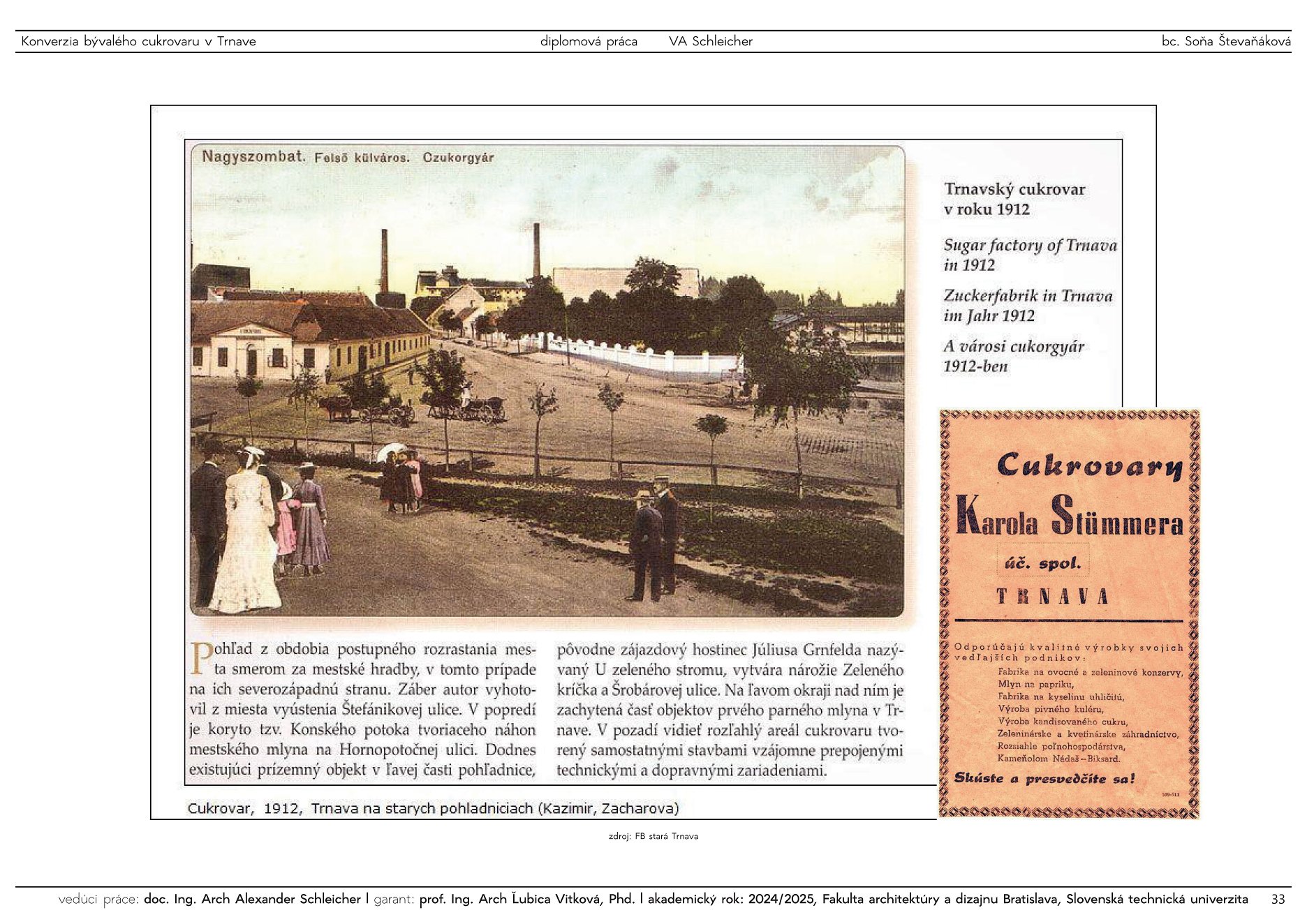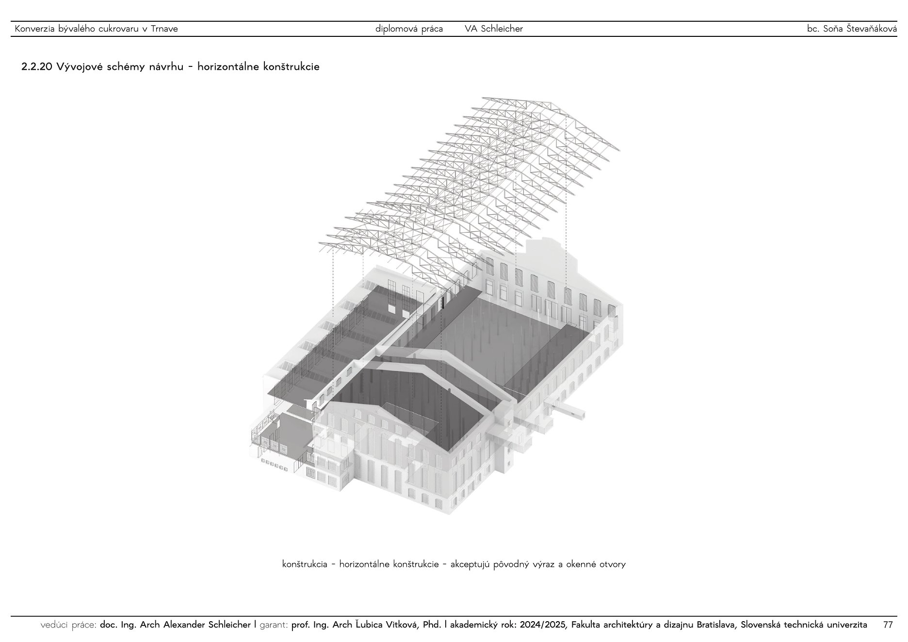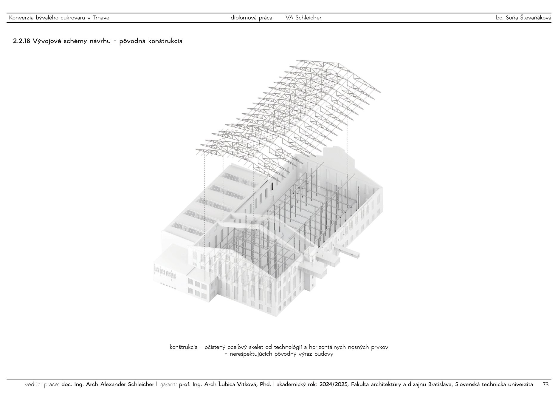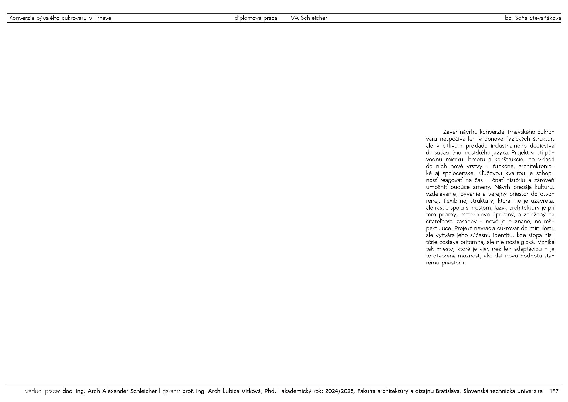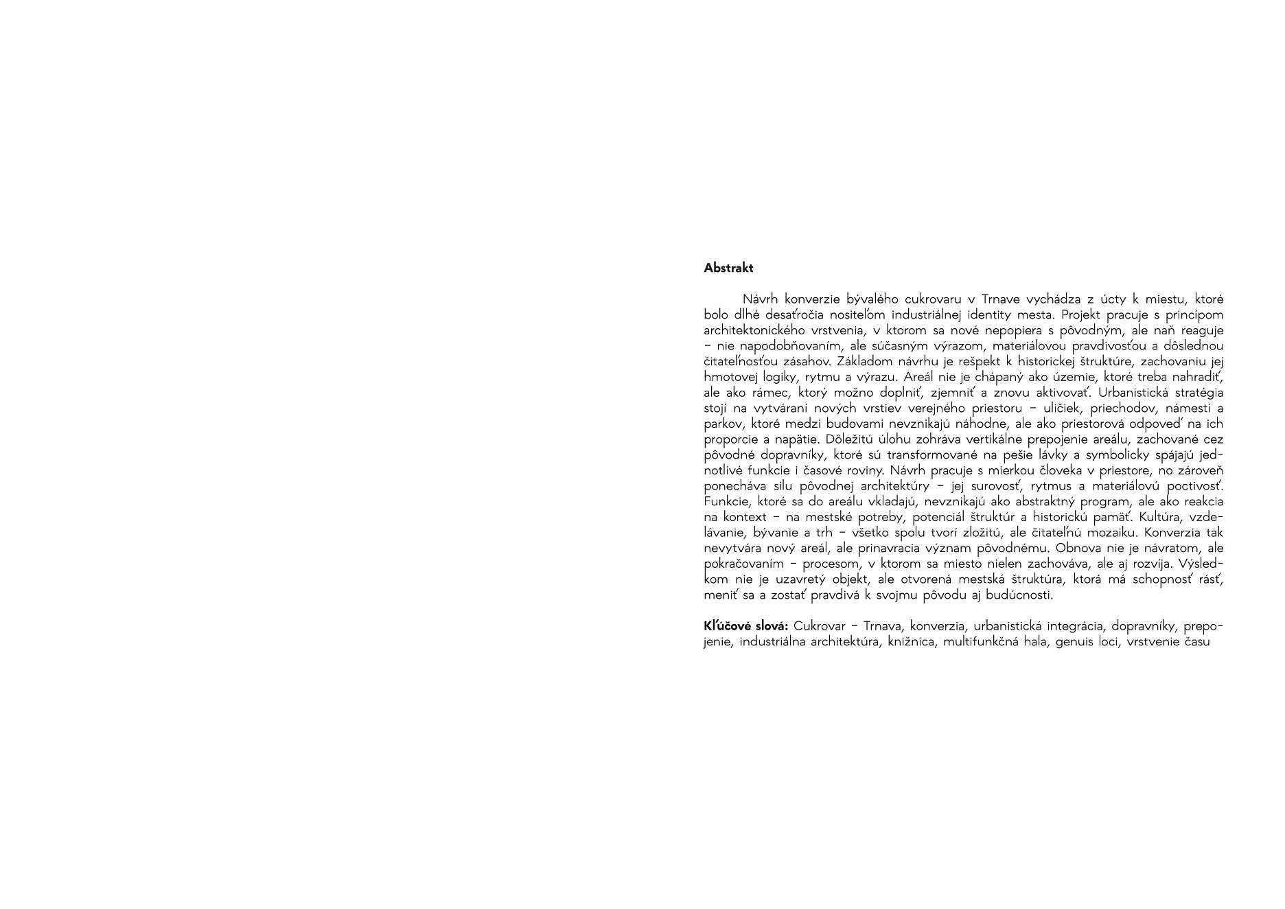 Dnes priblížime prácu „Konverzia cukrovaru a priemyselného areálu, Trnava“, ktorá vznikla na pôde Fakulty architektúry a dizajnu STU v Bratislave pod vedením Alexandra Schleichera. Diplomantka Soňa Števaňáková sa venuje budúcnosti bývalého cukrovaru a citlivému prekladu industriálneho dedičstva do súčasného mestského jazyka.