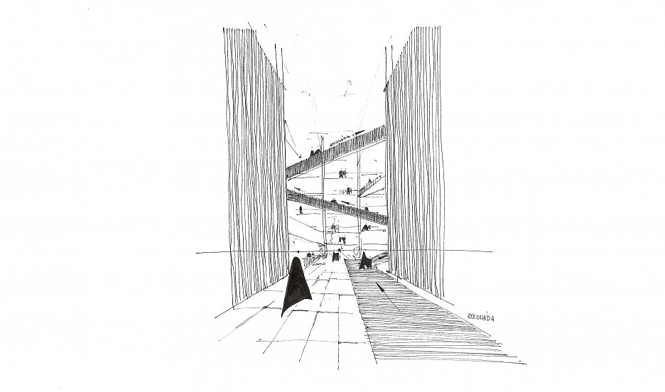 Vertikálny ateliér pod vedením Štefana Polakoviča a Jozefa Bátora sa od svojho vzniku zaoberá silnou a aktuálnou témou revitalizácie banských brownfieldov na Hornej Nitre (rozhovor s vedúcimi ateliéru o hľadaní potenciálu a možných riešení nájdete tu). Súčasťou rozsiahleho banského areálu v Handlovej, ktorý spoločný koncept ateliéru transformuje na mestskú zónu s pestrým mixom funkcií, je elektráreň. Objekt priamo v srdci brownfieldu premieňal energiu z vyťaženého uhlia spätne na energiu pre celý areál. Práve konverzia budovy elektrárne, prepojenej so sieťou lineárnych dopravníkov, sa stala témou diplomovej práce Viktora Mikovčáka: "Srdce vyhaslo a ostali iba rebrá pretkané tepnami, v ktorých krv už nemá čo pumpovať. Srdce bolo nahradené novým, mladším, výkonnejším a budova ostala iba tvrdou schránkou. S myšlienkou kúpelného sveta v banskom areáli a novým životom tečúcim v dopravníkoch, dostala táto krásna stavba novú nádej."