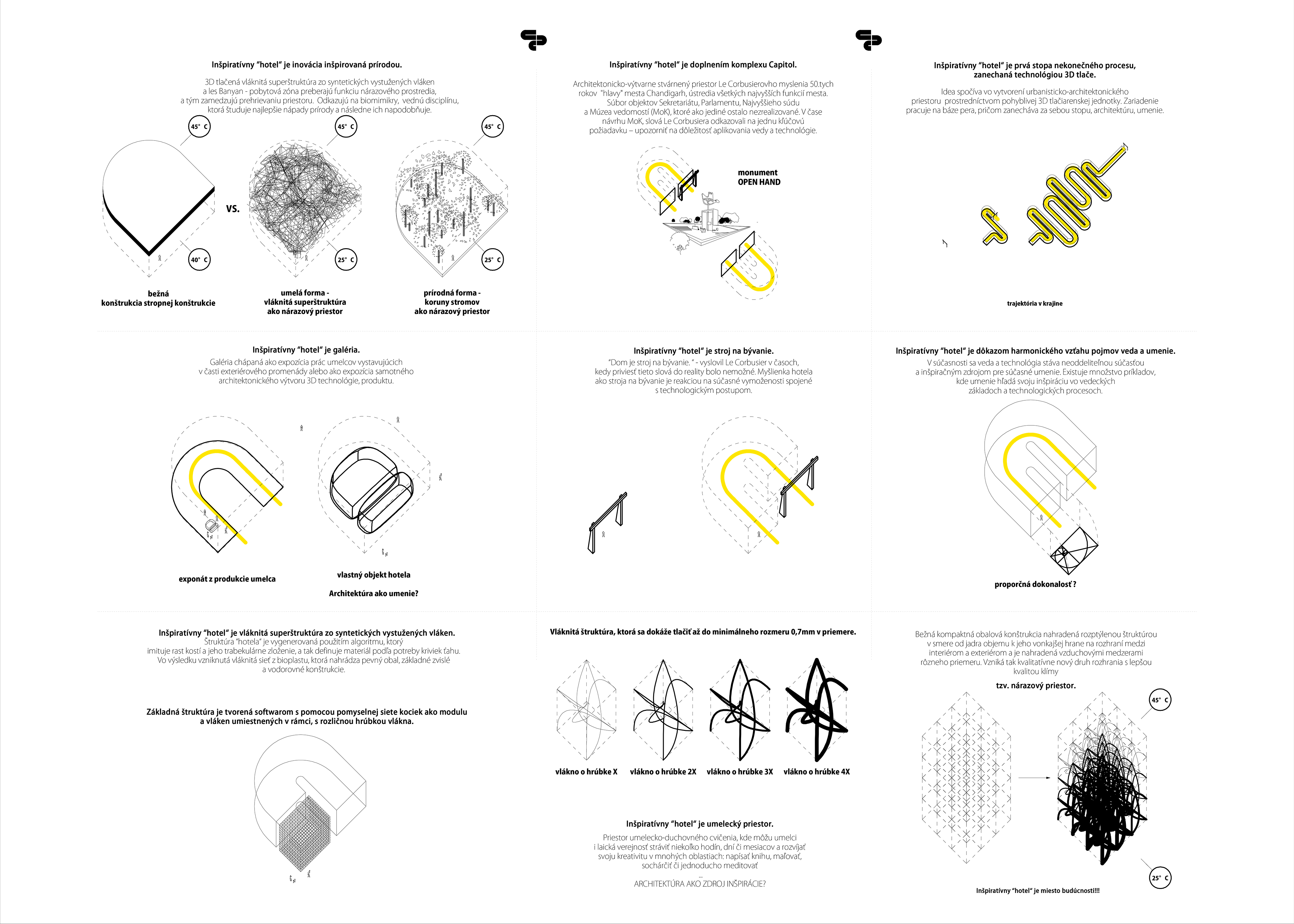 Navrhované objekty inšpiratívneho hotela sú doplnením existujúceho komplexu Capitol, nachádzajúceho sa v severovýchodnej časti mesta Chandigarh, Punjab, India. Architektonicko-výtvarne stvárnený priestor Le Corbusierovho myslenia 50.tych rokov "hlavy" mesta Chandigarh, ústredia všetkých najvyšších funkcií mesta, budovy Sekretariátu, Parlamentu a Najvyššieho súdu, tak dopĺňajú objemy hotela, ktorých celková parcela zaujíma polohu pôvodne navrhnutého štvrtého objektu Múzea vedomostí (MoK), ktoré ako jediné z celého projektu ostalo nezrealizované. K atmosfére komplexu nepochybne prispieva i prírodná danosť a výhľad na pohorie Himaláje, ktoré ležia na severovýchodnej strane komplexu. Mierne podnebie v krajine, špeciálne v období letných mesiacov, zvykne priniesť teploty až do 45°C. Preto, v krajine s tzv. zákonom Slnka, venujú veľkú pozornosť vytvoreniu tieňa. Aj túto danosť staveniska zohľadňuje návrh hotela, v ktorom práve 3D tlačená vláknitá superštruktúra zo syntetických vystužených vláken je riešením ako vytvoriť nové rozhranie s kvalitatívne lepšou kvalitou klímy. Terén je vo veľkej miere rovinatý.