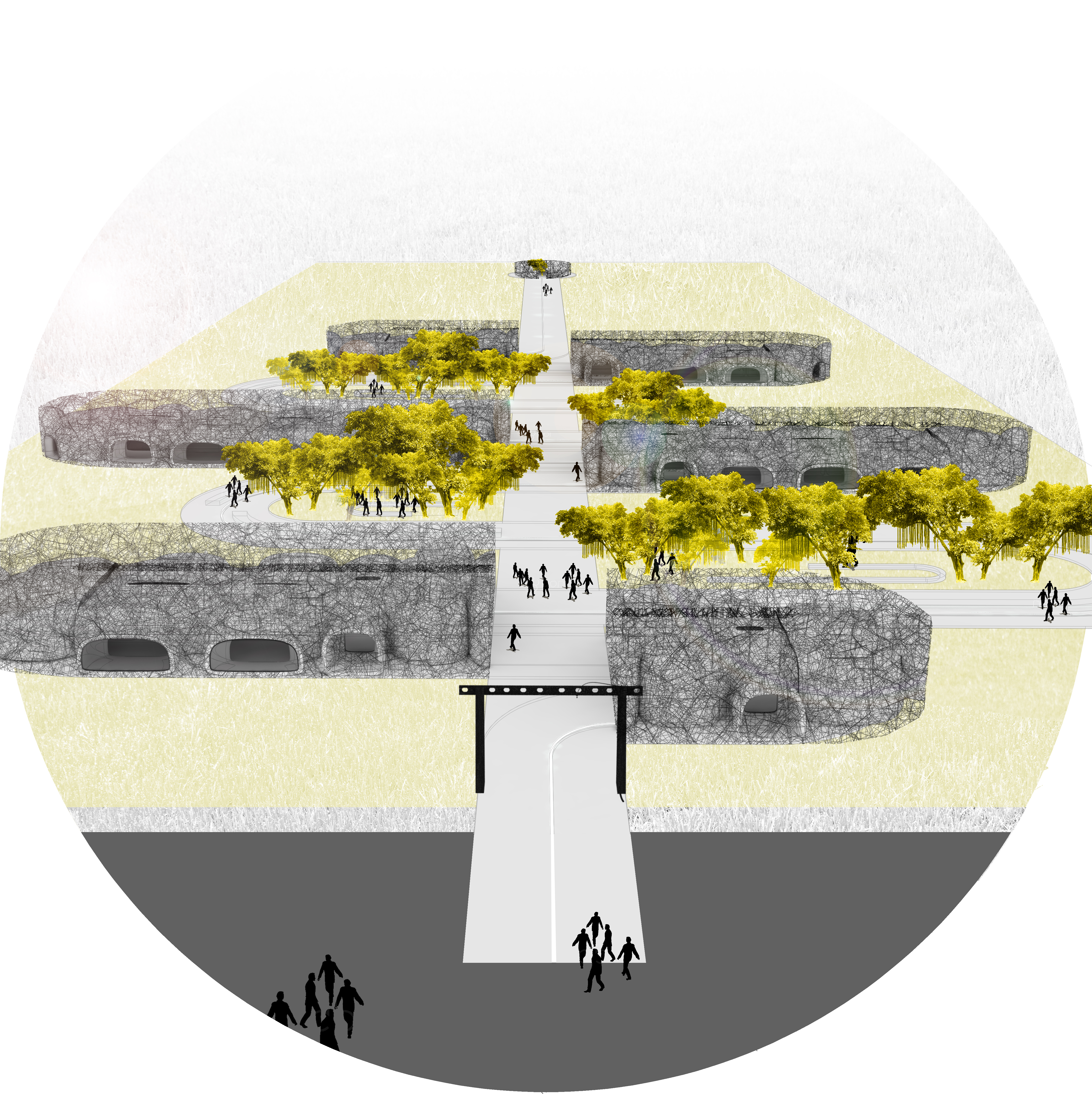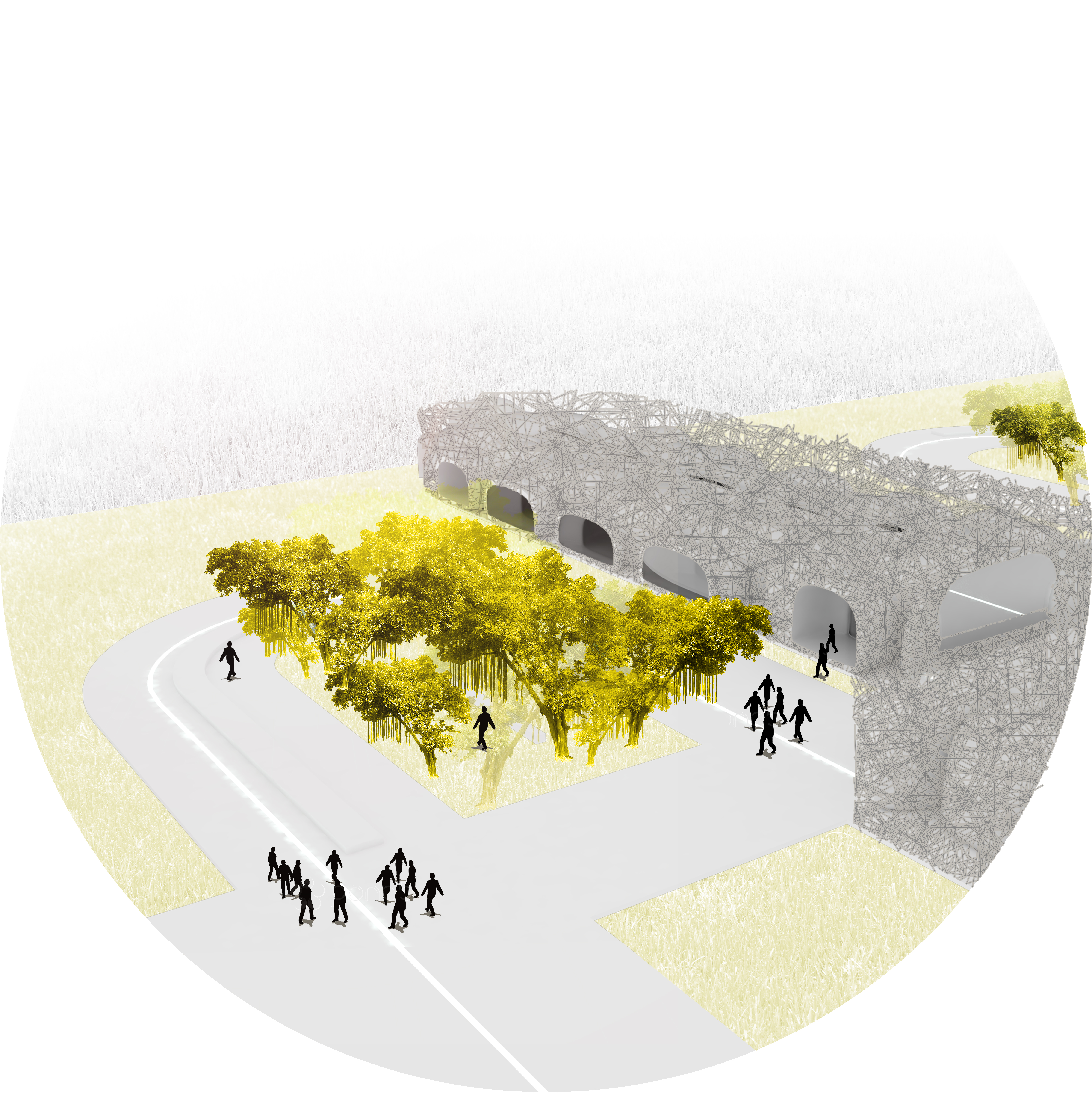 Návrh predstavuje súbor siedmich solitérnych stavieb, vzájomne poprepájaných príjemnou promenádou a exteriérovou galériou zároveň. Vzhľadom na fakt, že primárne ide o funkciu hotela, päť zo siedmich objektov je navrhnutých ako ubytovacia jednotka so súkromnými štúdiami pre svoj vlastný rozvoj a tvorbu, spoločenskými priestormi pre verejné diskusie, skromnou recepciou ako kontrolný bod prevádzky; jeden objekt situovaný v záverečnej časti promenády je navrhnutý ako meditačná miestnosť na samote a posledným objektom je lobby, návštevnícke a informačné centrum, kde sa človek môže bližšie informovať o celom procese vzniku areálu a 3D technológii v architektúre. Napriek tomu, že hotel zahŕňa viacero objektov odlišných funkcií, celkový výraz spolu s exteriérovou galériou má jednotný charakter architektúry vyrastajúcej z jednej linky šíriacej sa krajinou. Štruktúra hotela využíva jedinečnosť 3D tlače. Je vygenerovaná použitím algoritmu, ktorý imituje rast kostí a jeho trabekulárne zloženie, a tak definuje materiál podľa potreby kriviek ťahu. Vo výsledku vzniknutá vláknitá sieť z bioplastu, s rozličnou hustotou vláken podľa potreby. Opodstatnenosť použitia tohto druhu materiálu sa odkazuje na potrebu reagovať na problém prehrievania priestorov, a to vytvorením nárazového prostredia. Projekt zahŕňa aj návrh pobytových zón v exteriéri, v ktorých pracuje s výsadbou lokálneho národného stromu druhu Banyan. Táto zóna je v tomto prípade prírodným ekvivalentom priestoru, ktorý poskytuje úkryt pred ostrým slnkom, a tak vytvára nárazový priestor redukujúci teplotu prostredia, a to práve prostredníctvom prírodných elementov. Časť promenády je doplnená exteriérovými podstavcami pre umelecké diela a široké využitie; exteriérovým pásovým verejným osvetlením v časti podlahy tiahnucim sa pozdĺž celej krivky areálu, a tak posilňujúcim celkovú myšlienku procesu tvorby.