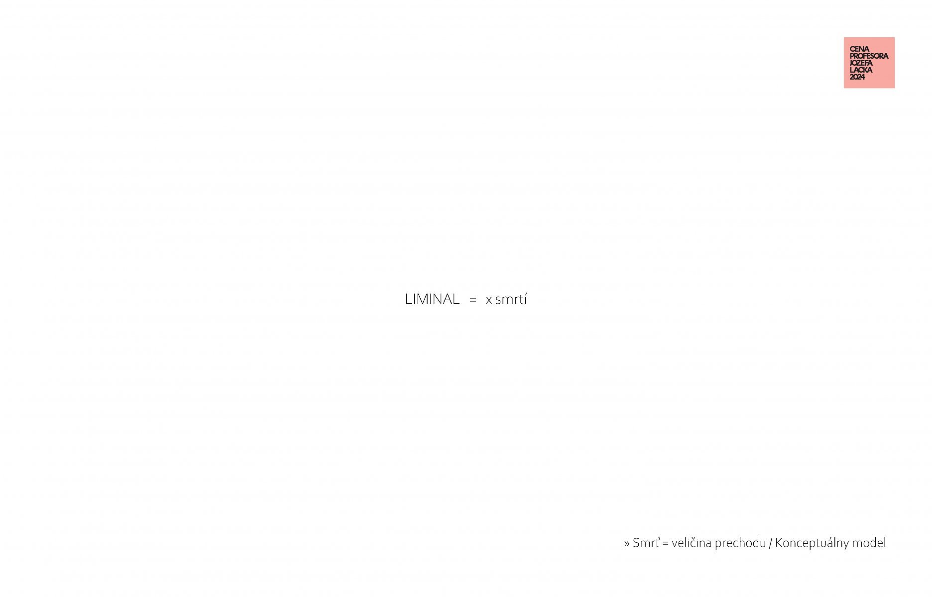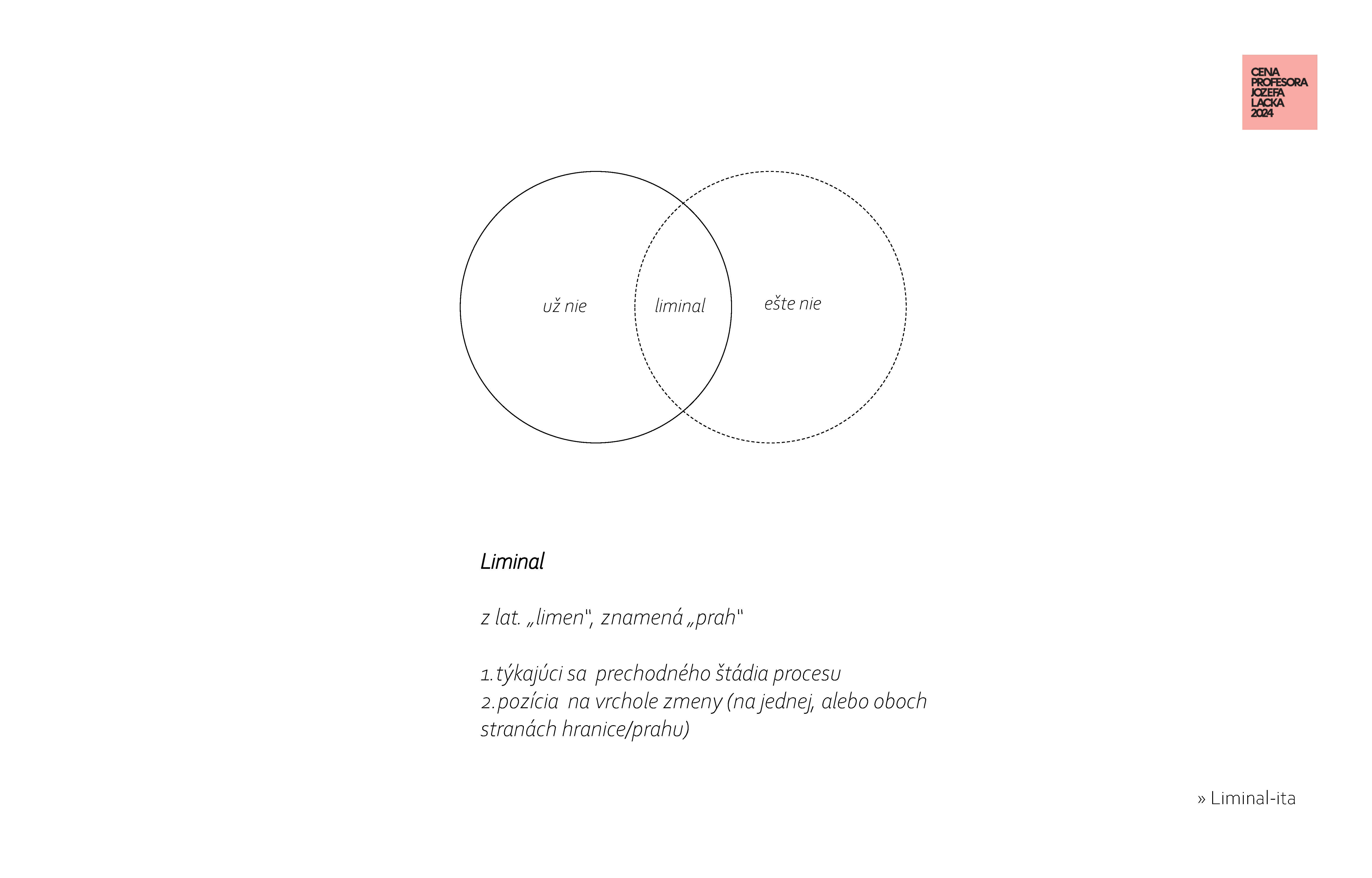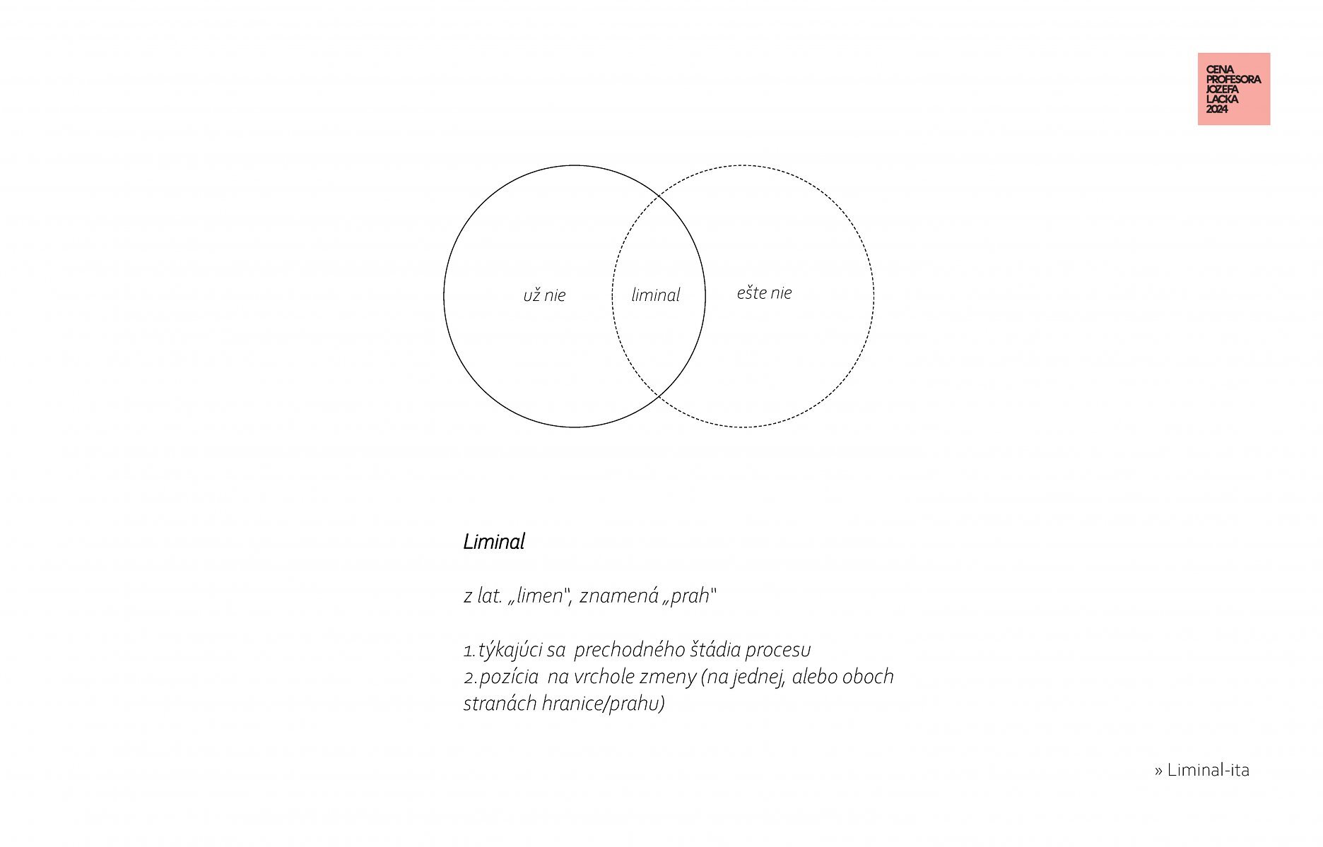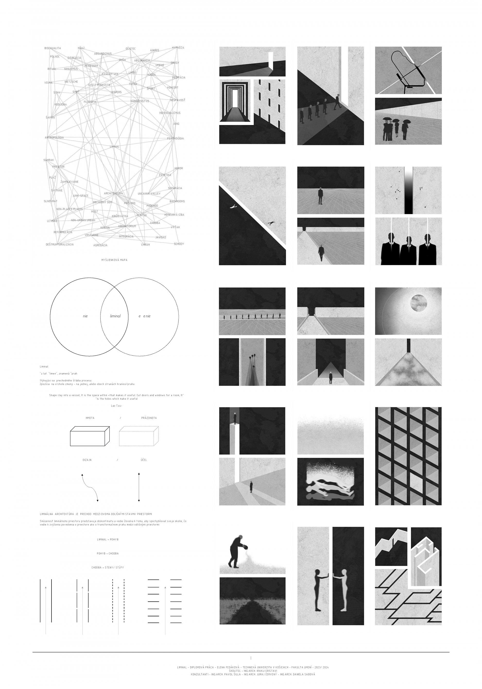 "Liminal / liminalita, z latinského slova limen (prah), je kvalita nejednoznačnosti, ktorá sa vyskytuje v strednej fáze medzi dvoma východiskovými bodmi. Diplomová práca zachytáva proces poznania prahových liminálnych javov. Rozpoznáva podobné aj odlišné vlastnosti takýchto fenoménov na individuálnej aj kolektívnej úrovni. Skúma manifestáciu hraničných fáz do fyzického prostredia a určuje ich všadeprítomnú univerzálnosť. Zachytáva emocionálnu reakciu človeka na prechodné priestory a ich následnú funkciu v oblasti architektúry.