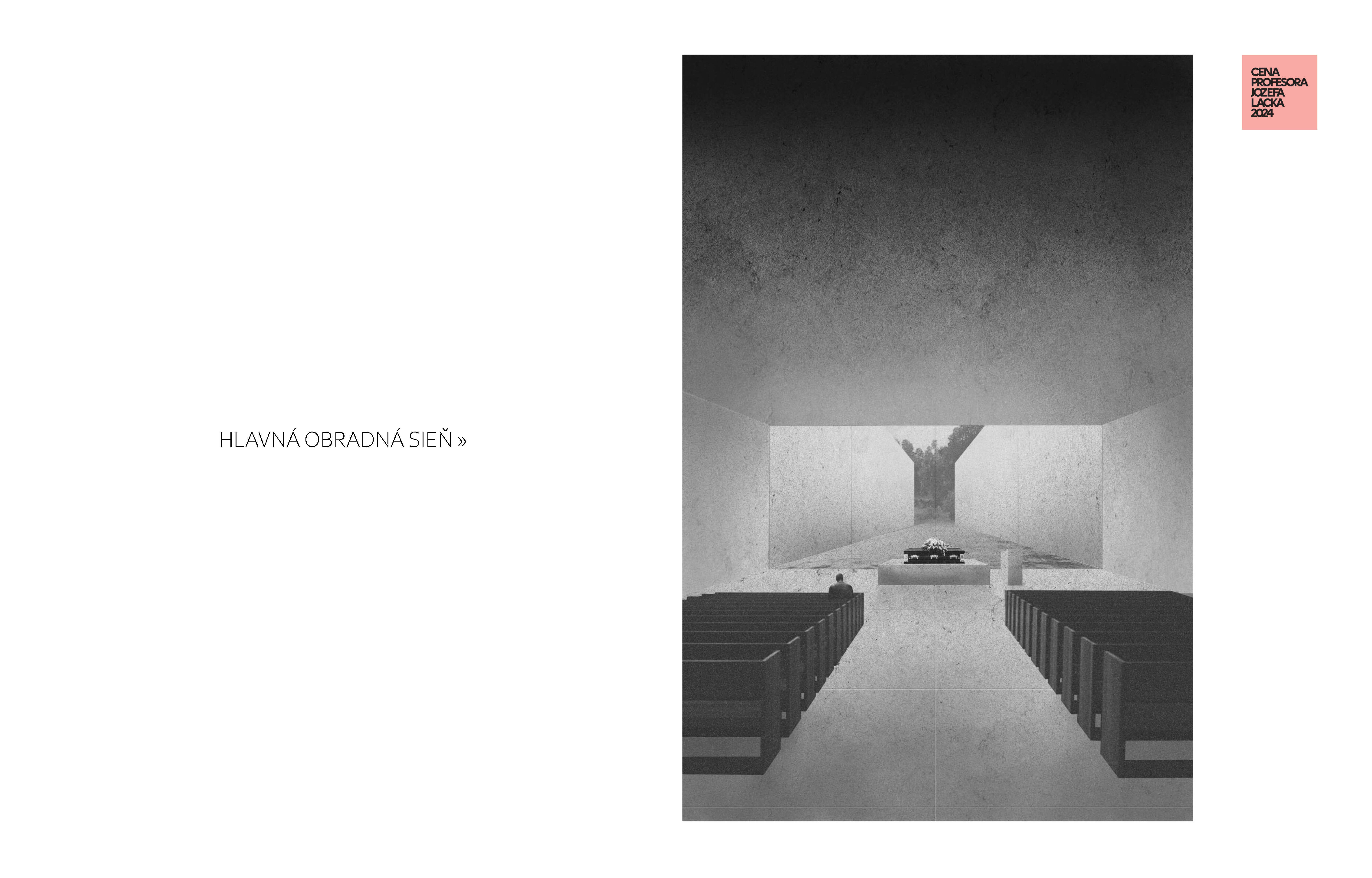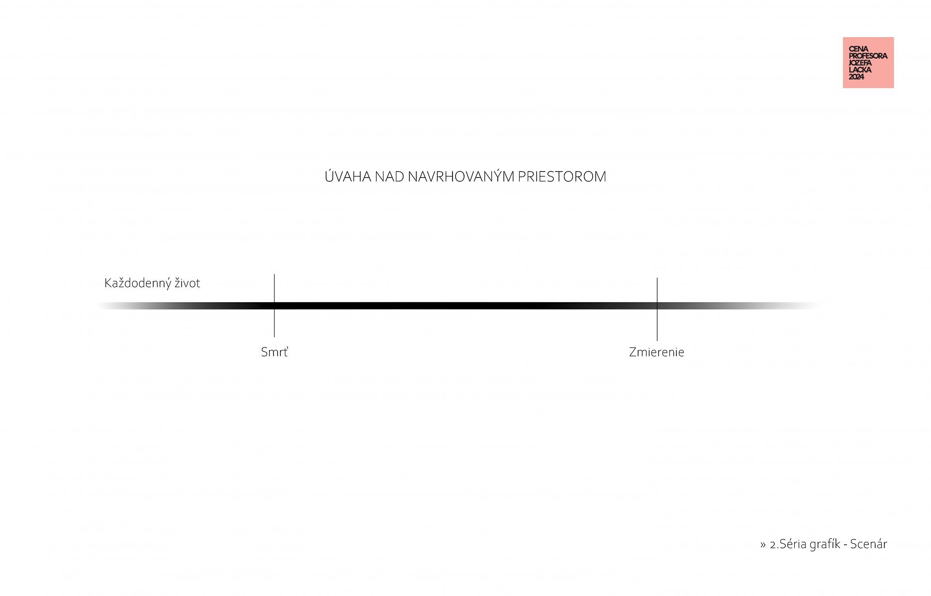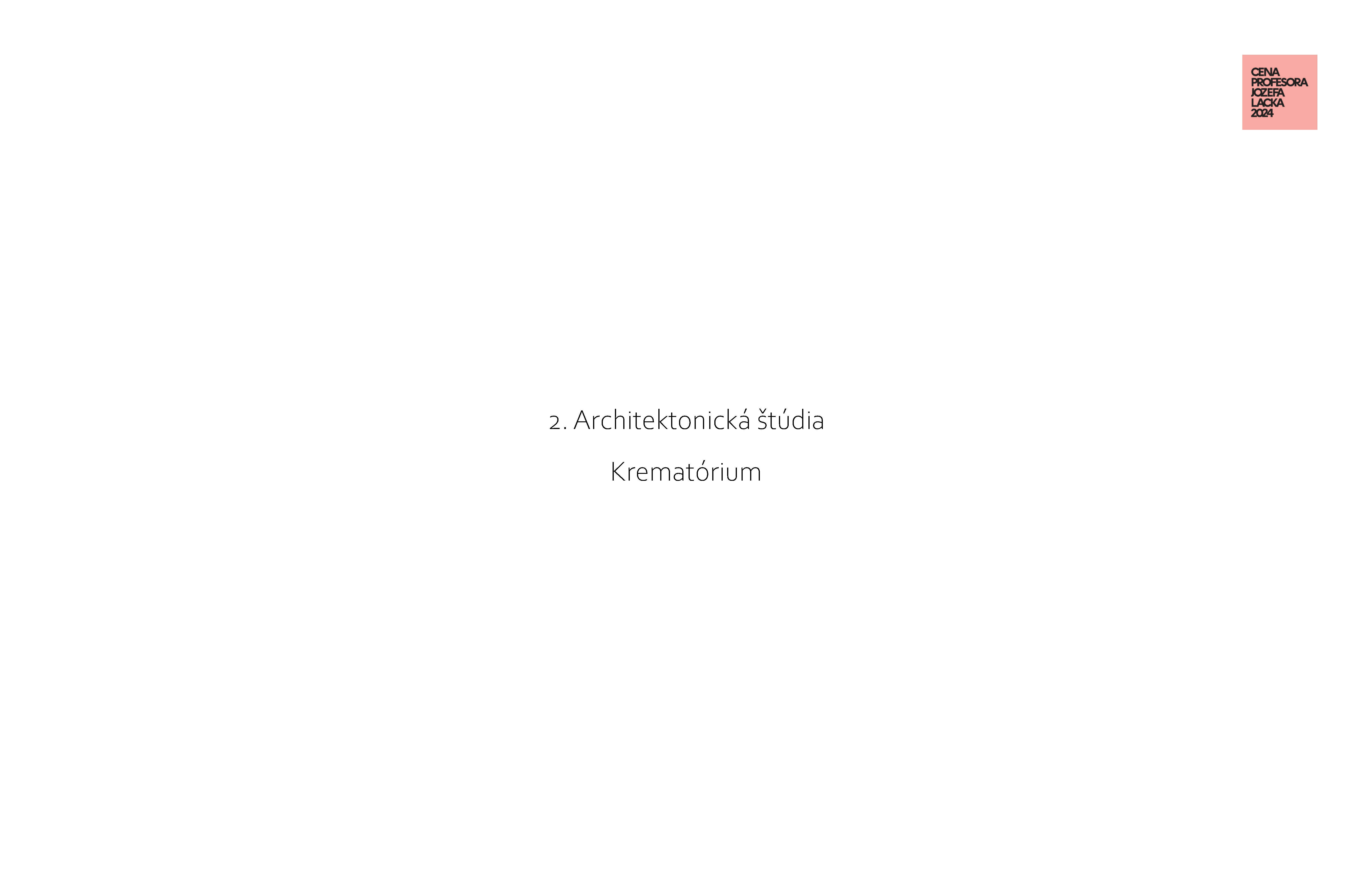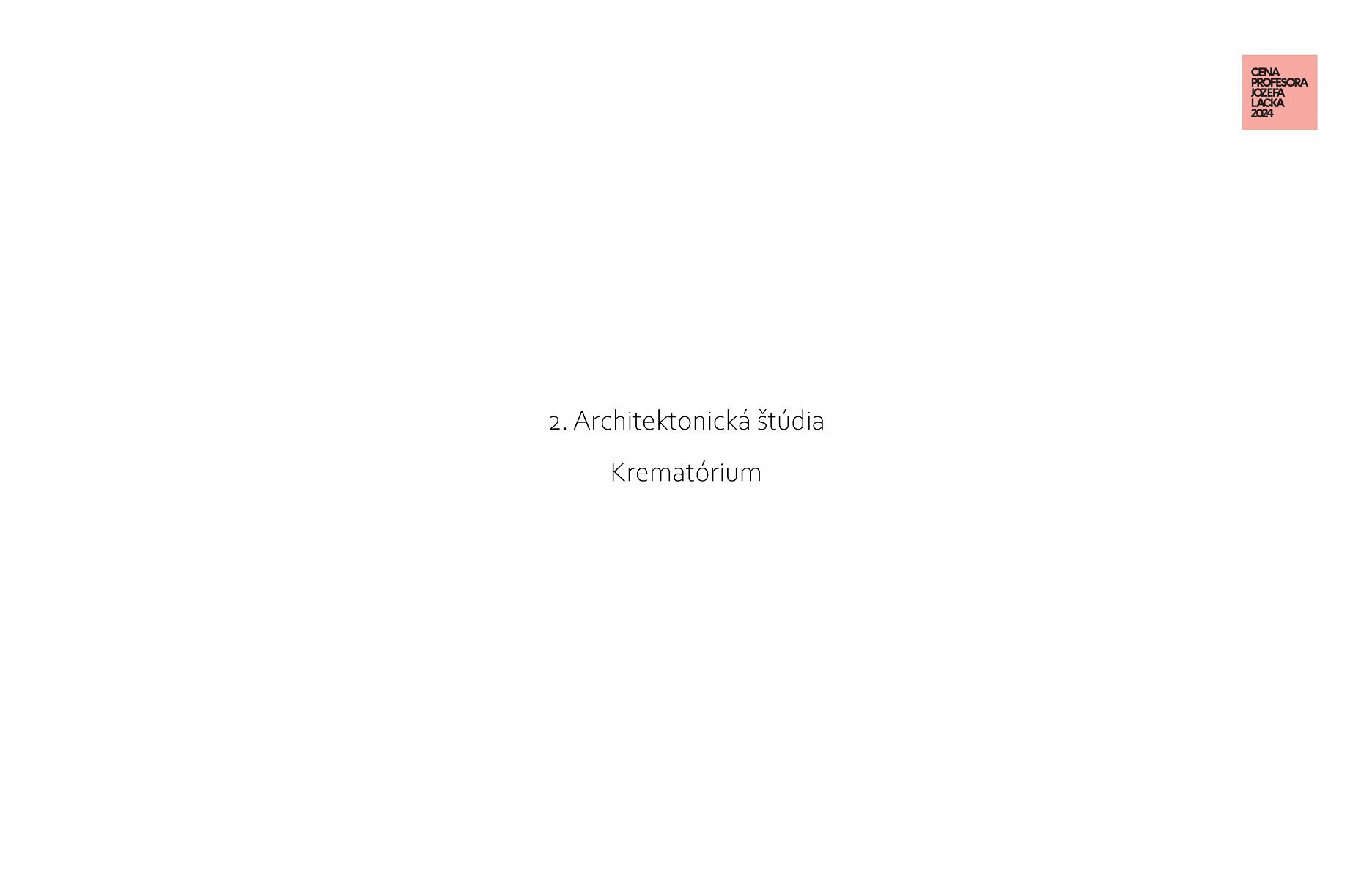 Výsledkom je návrh objektu krematória, ktorý vznikol z podstaty liminality a jej podmienením určitým druhom rituálu. Kým zosnulý človek je v takomto objekte už mŕtvy, no ešte nie pochovaný, a tým pádom fyzicky „čaká“ na svoj obrad rozlúčenia a spopolnenia, pre pozostalých má návšteva priestorov mentálny, či skôr metafyzický význam. Pohrebným aktom sa vykonáva pomyselné stretnutie zosnulého jednotlivca a jeho rodiny a blízkych na hranici sveta živých a mŕtvych. Podobne chápem aj koncept návrhu nového krematória v meste Prešov, jeho umiestňujem na rozhranie svahovitého terénu ako obrazné oddelenie sveta od podsvetia, lineárny tvar celého objektu ako vytvorenie bariéry, ktorá „zabraňuje“ vstupu do ríše mŕtvych, prácu s krajinou a svetlom ako pripomienku, že smrť symbolizuje prechod. Cieľom je vytvoriť vhodné prahové miesto na posledné stretnutie s blízkym človekom a jeho prípravu na ďalšie, posmrtné putovanie."