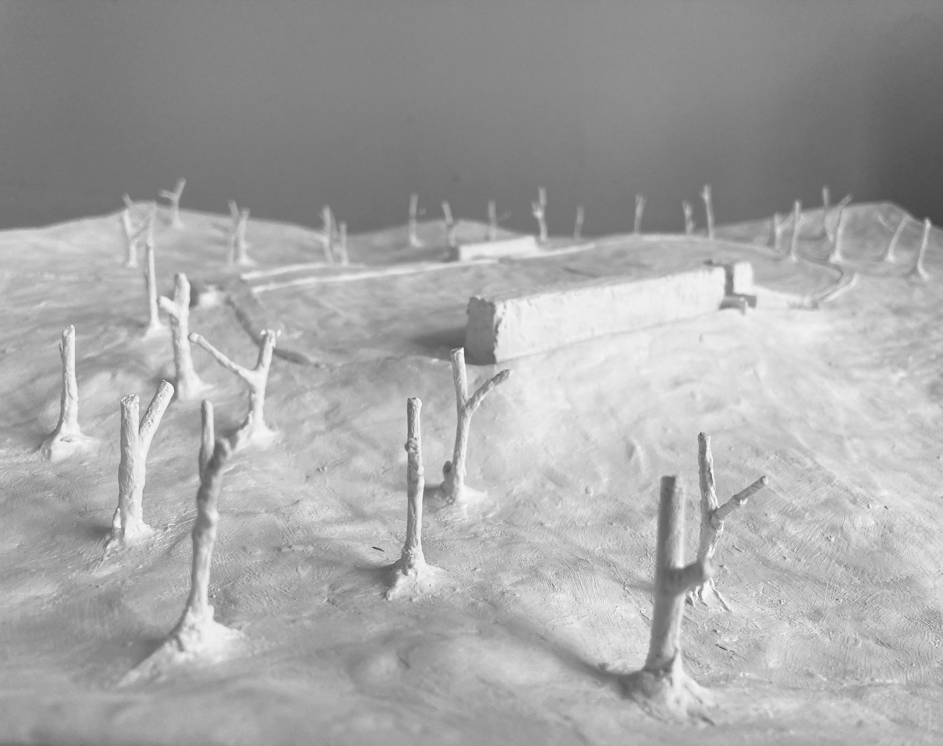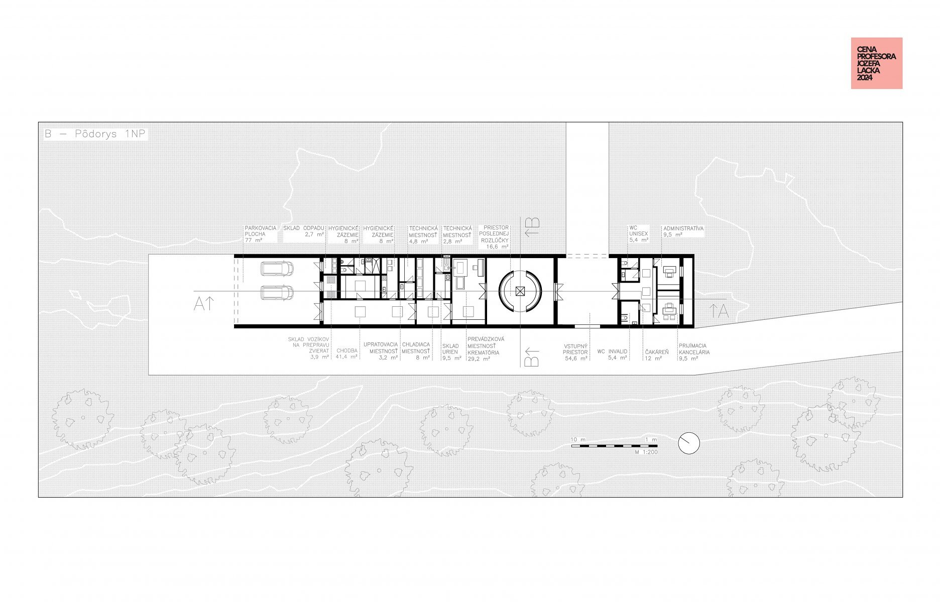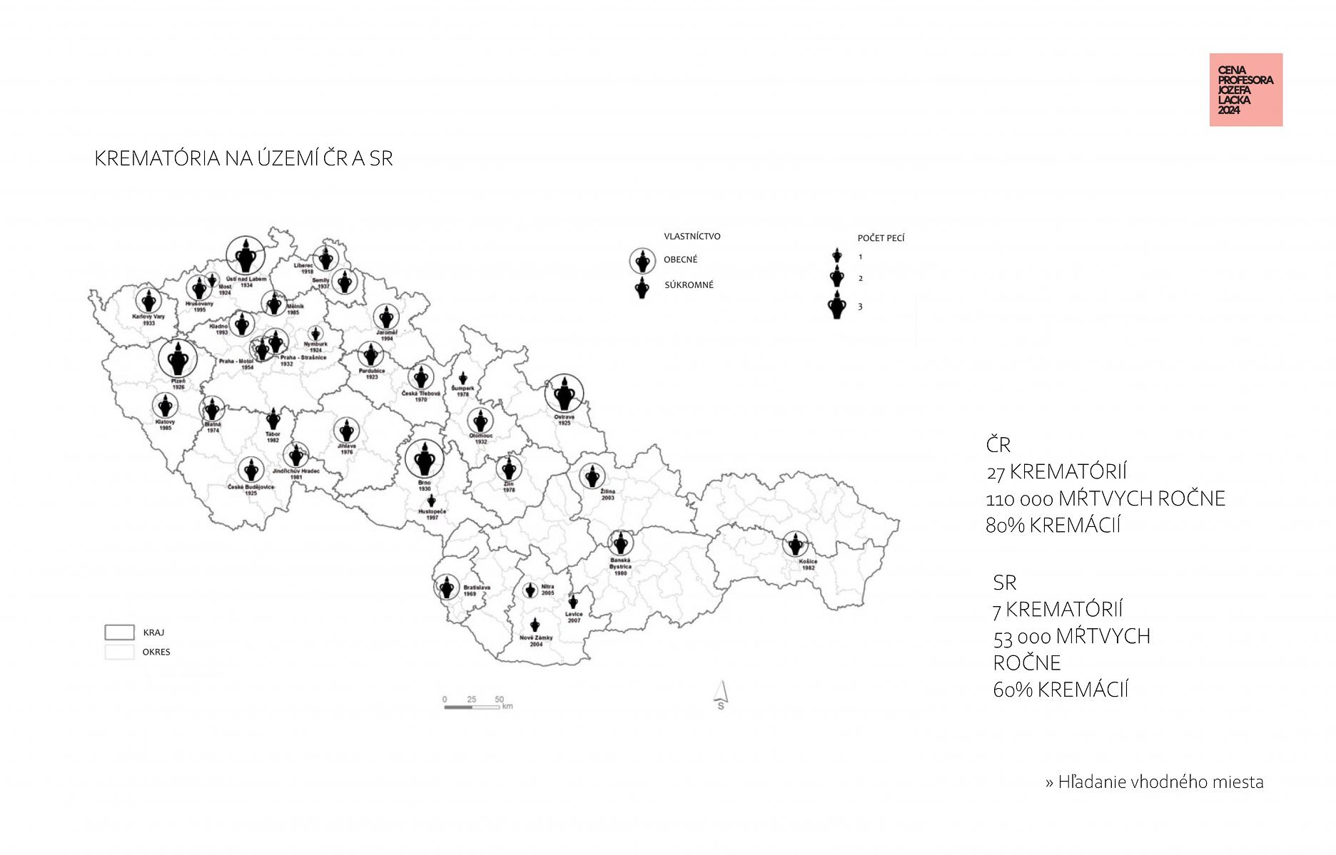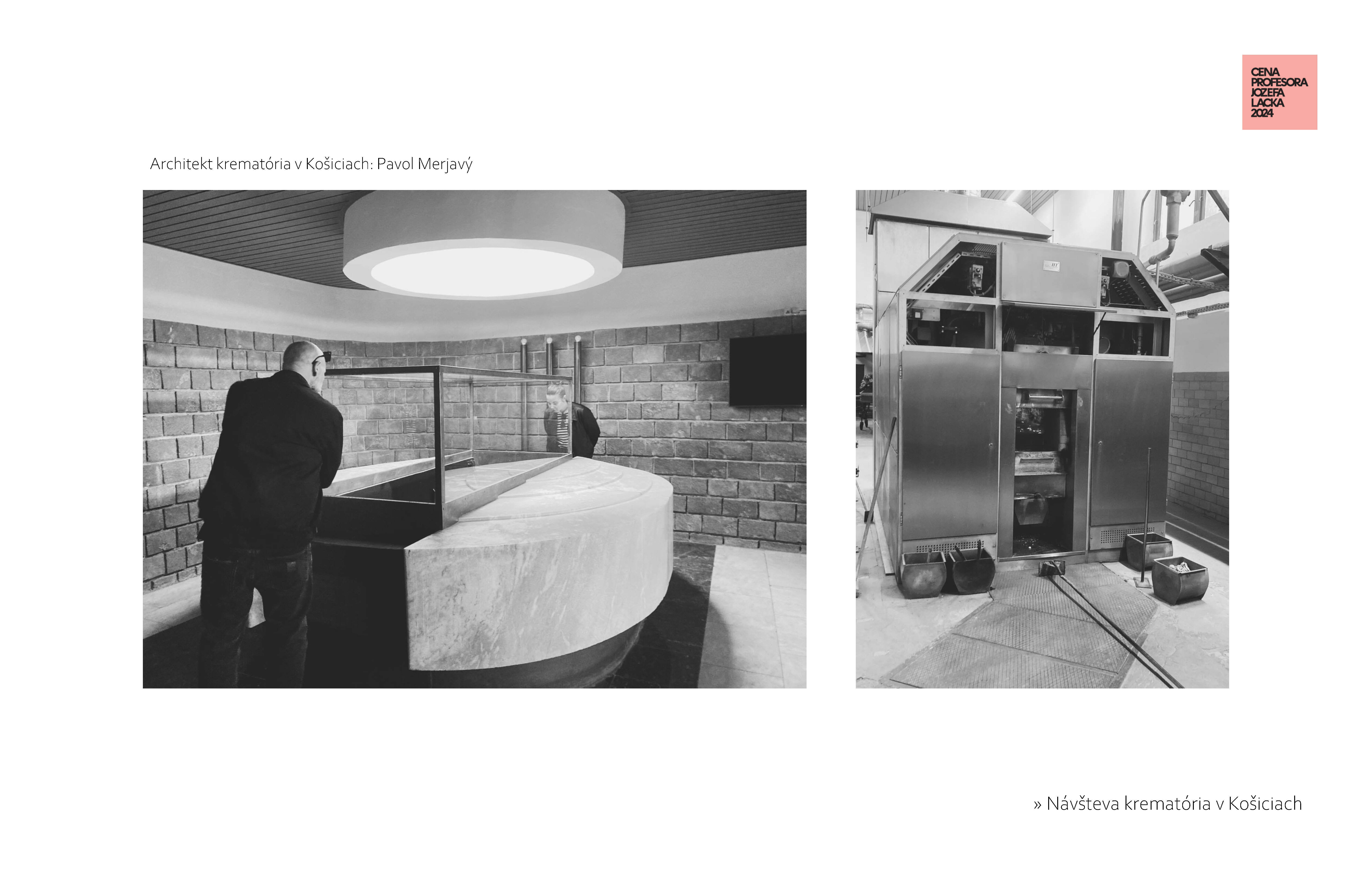 Výsledkom je návrh objektu krematória, ktorý vznikol z podstaty liminality a jej podmienením určitým druhom rituálu. Kým zosnulý človek je v takomto objekte už mŕtvy, no ešte nie pochovaný, a tým pádom fyzicky „čaká“ na svoj obrad rozlúčenia a spopolnenia, pre pozostalých má návšteva priestorov mentálny, či skôr metafyzický význam. Pohrebným aktom sa vykonáva pomyselné stretnutie zosnulého jednotlivca a jeho rodiny a blízkych na hranici sveta živých a mŕtvych. Podobne chápem aj koncept návrhu nového krematória v meste Prešov, jeho umiestňujem na rozhranie svahovitého terénu ako obrazné oddelenie sveta od podsvetia, lineárny tvar celého objektu ako vytvorenie bariéry, ktorá „zabraňuje“ vstupu do ríše mŕtvych, prácu s krajinou a svetlom ako pripomienku, že smrť symbolizuje prechod. Cieľom je vytvoriť vhodné prahové miesto na posledné stretnutie s blízkym človekom a jeho prípravu na ďalšie, posmrtné putovanie."