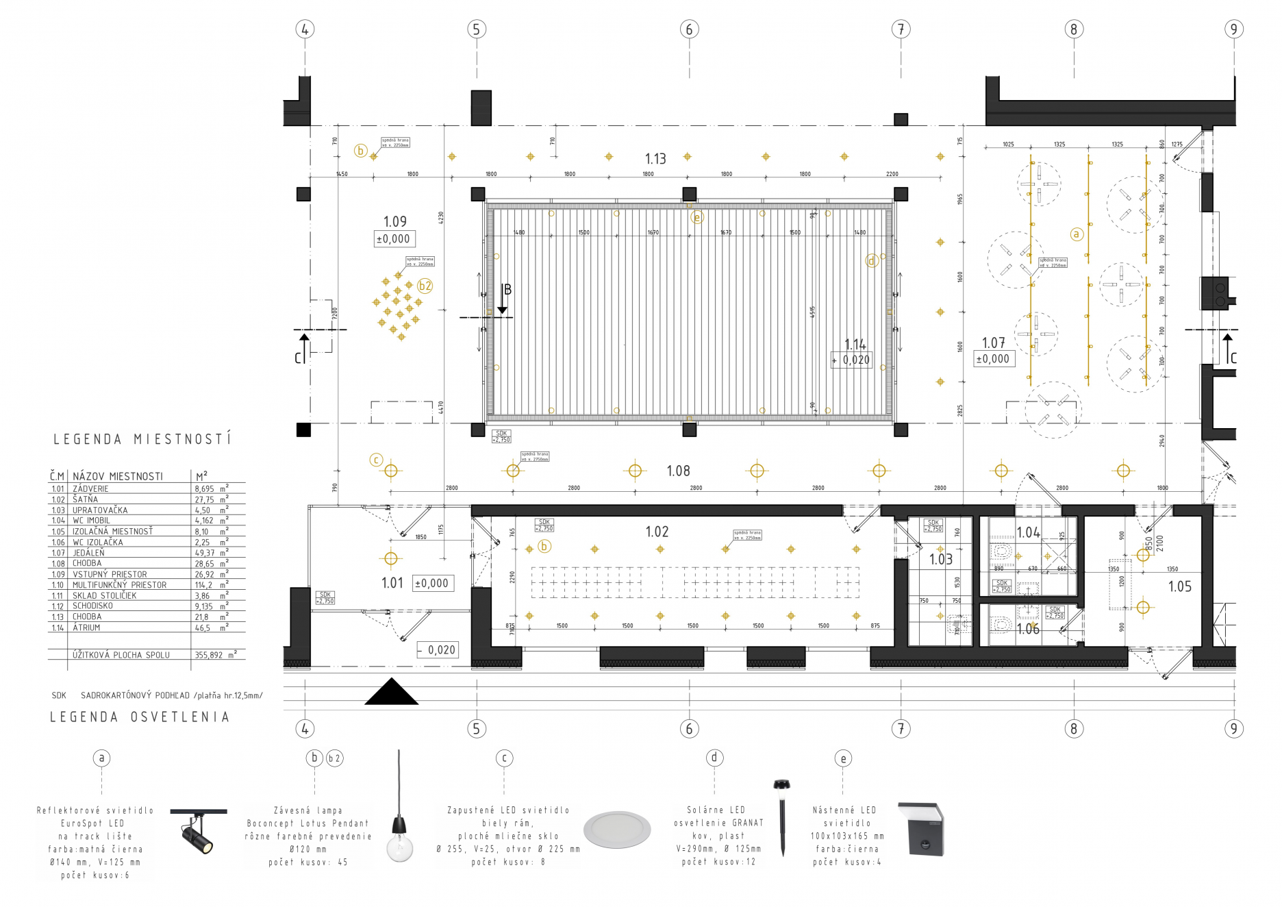 Svetlá výška v jednotlivých triedach je v najvyššom bode +3,3 m a v mieste najnižšieho bodu +2,375m. V priestore hlavnej časti budovy sa svetlá výška pohybuje od +2,75m – 8,3 m, v mieste vrcholu sedlovej strechy.