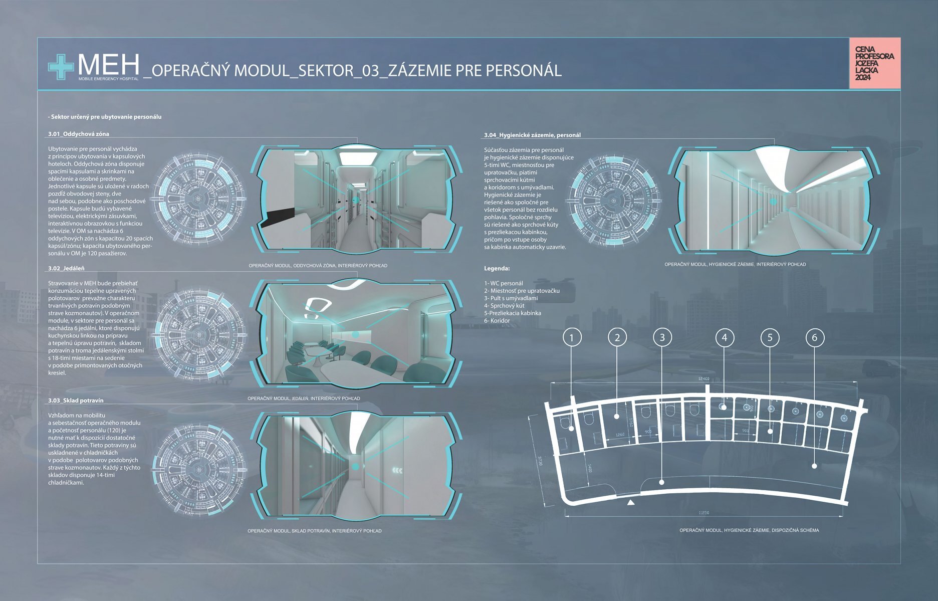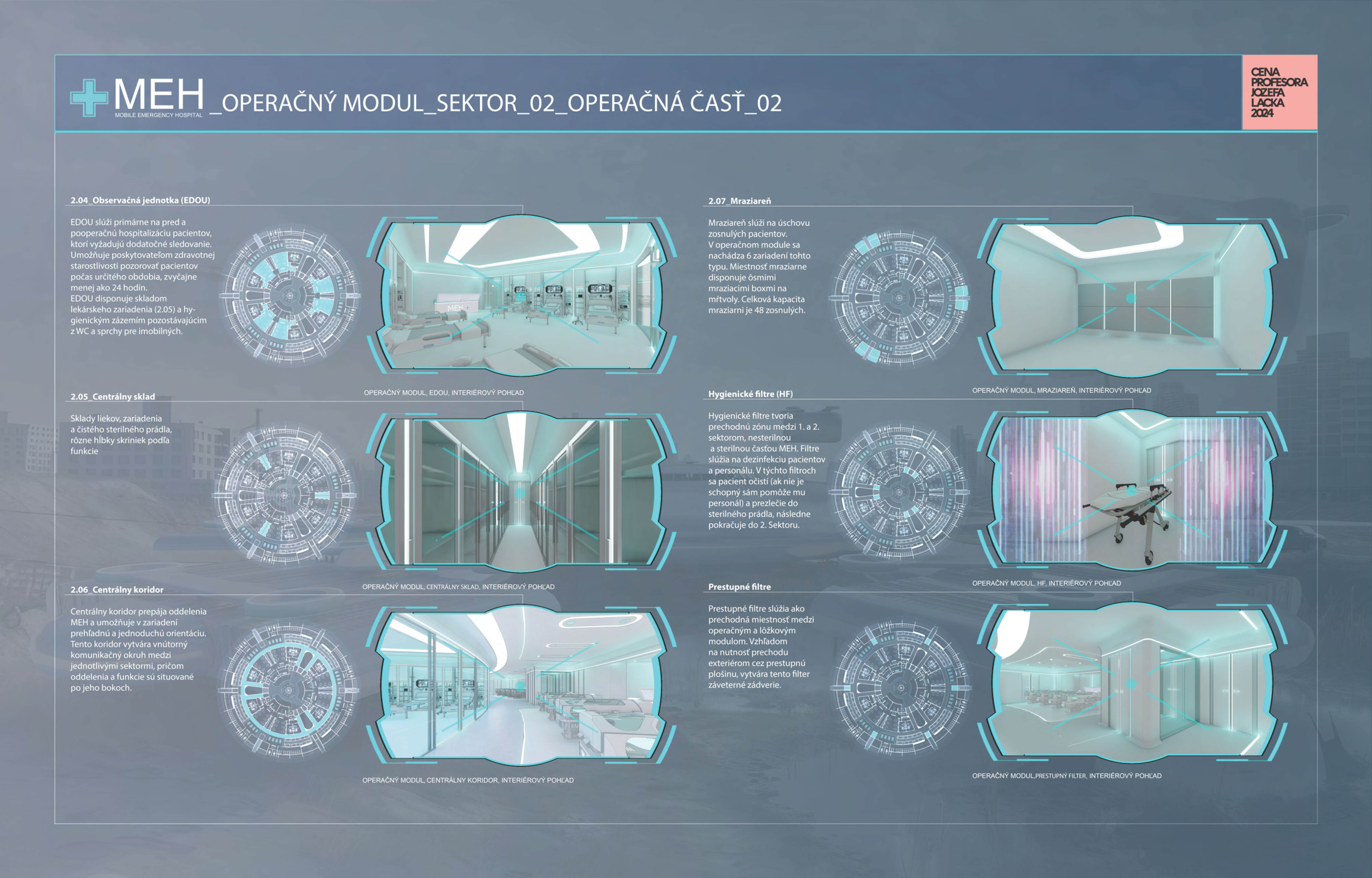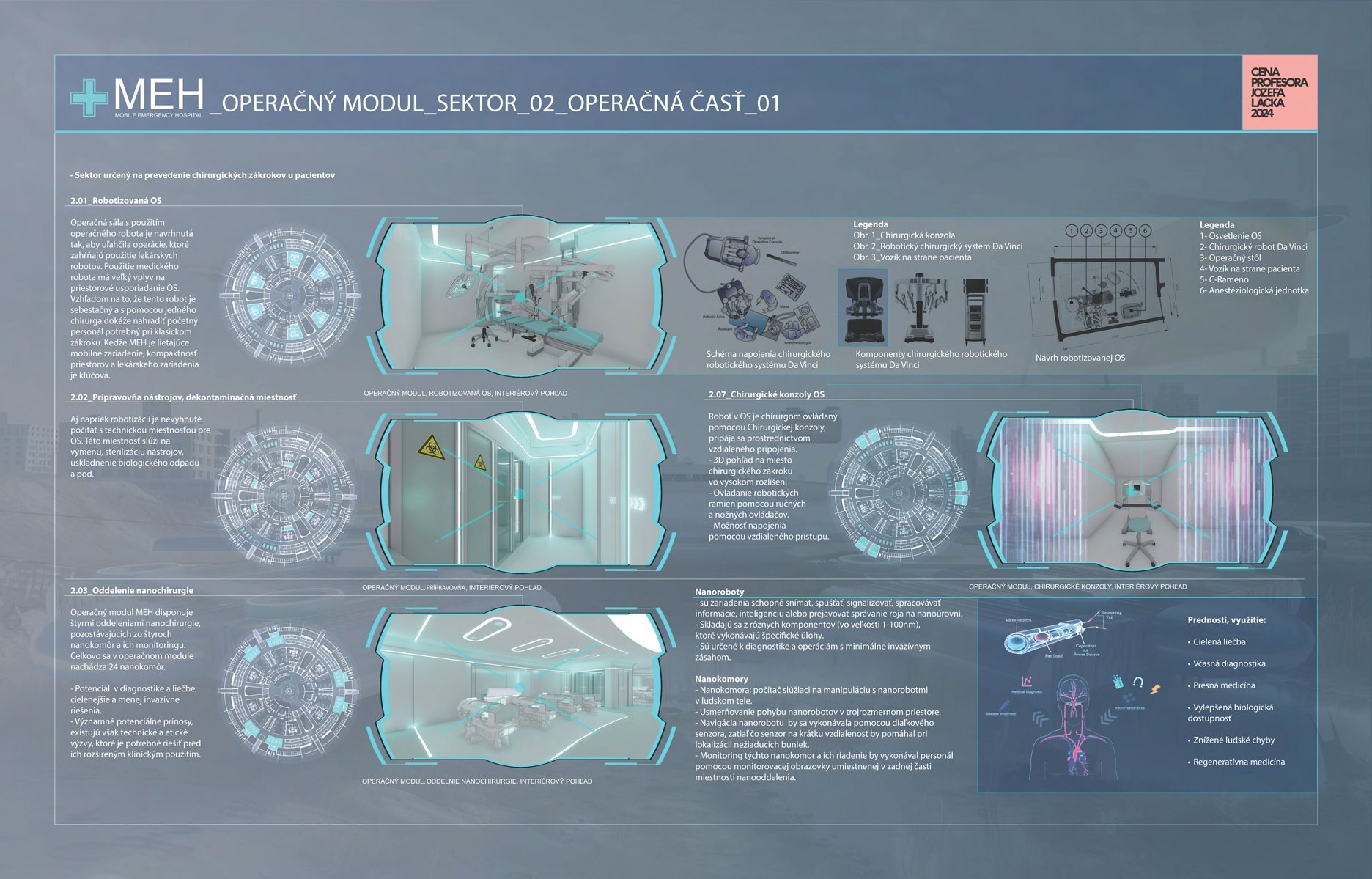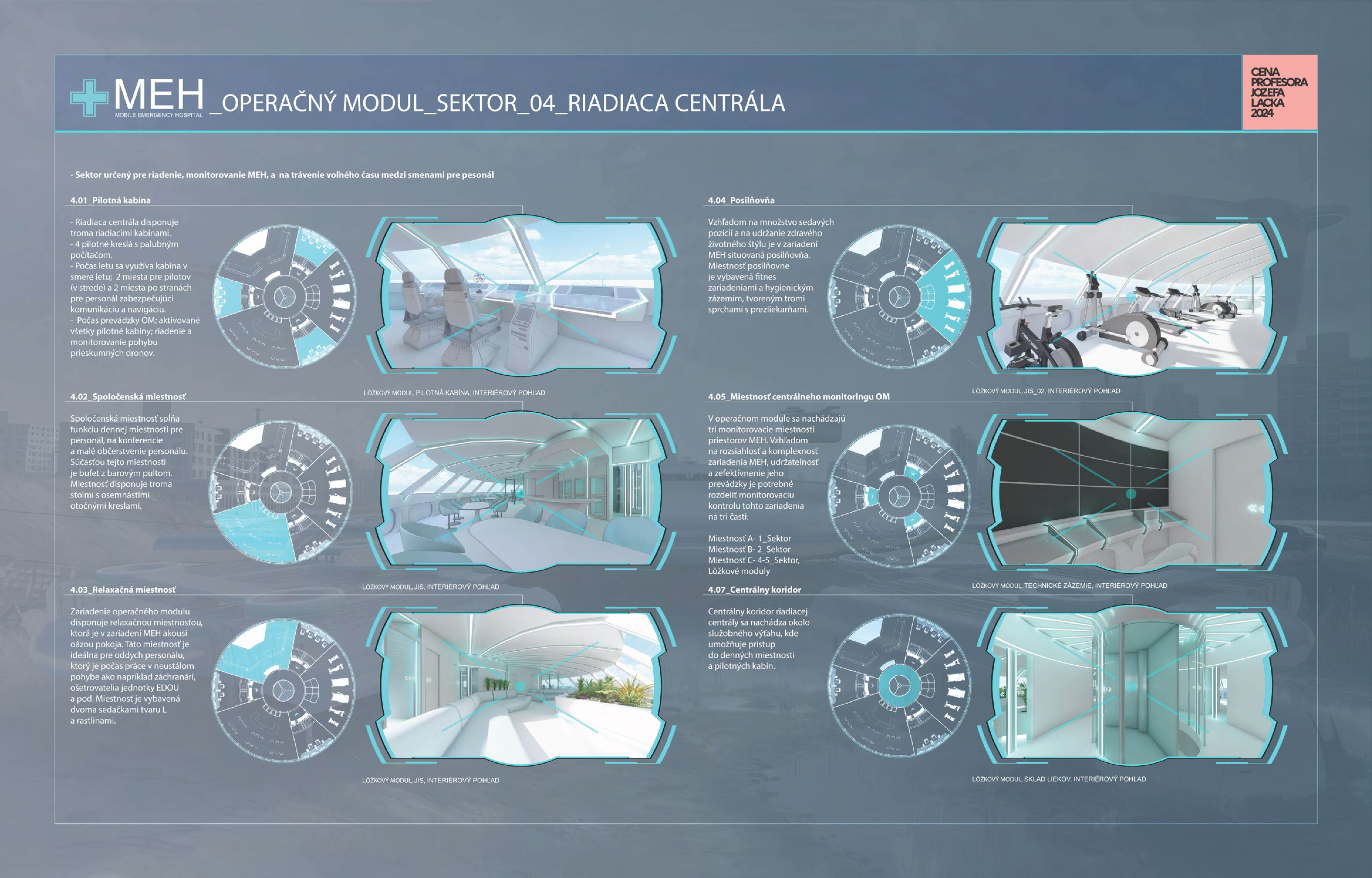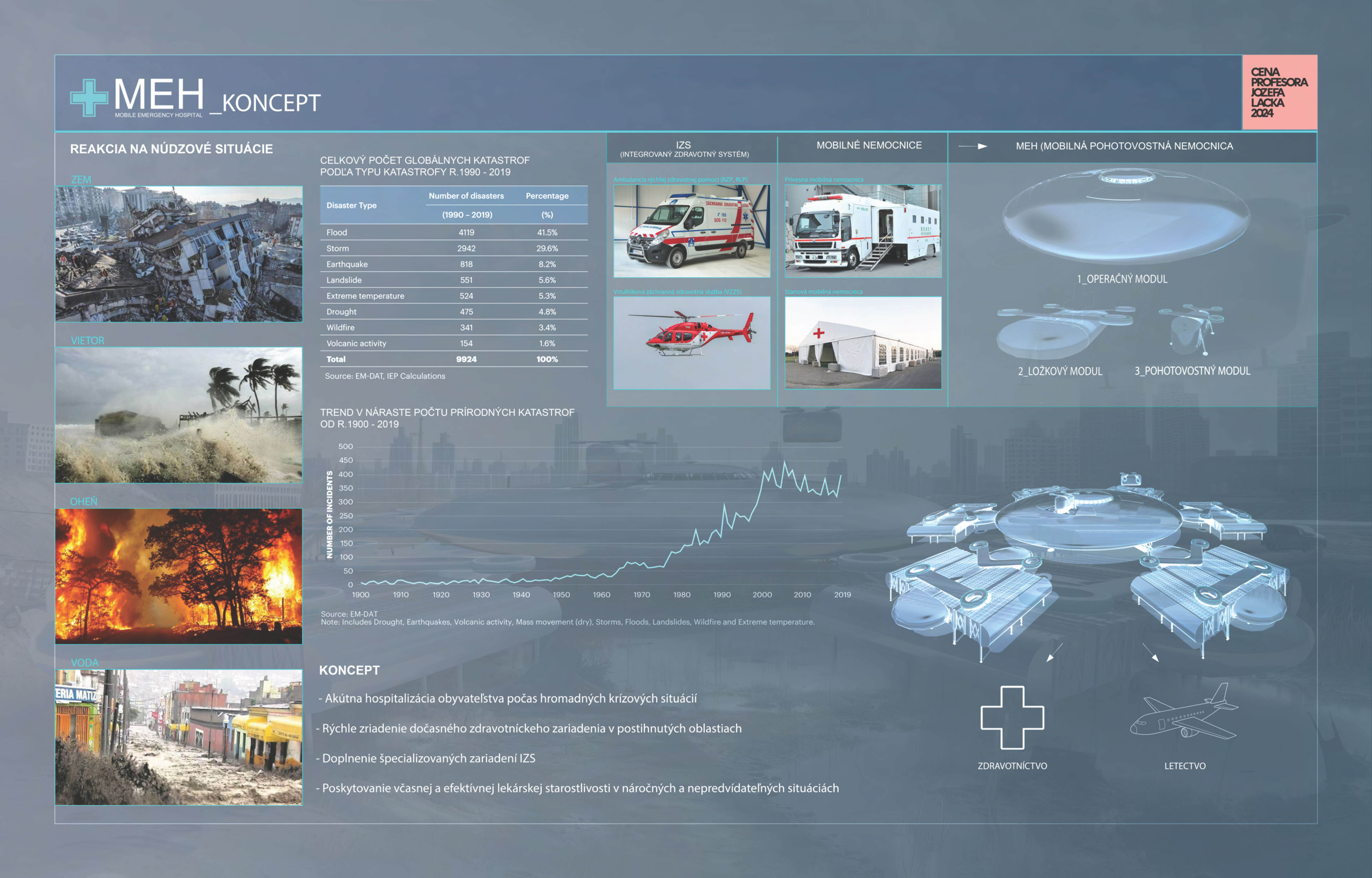 Dnes priblížime prácu "Mobilná pohotovostná nemocnica", ktorá vznikla na pôde Fakulty umení TU v Košiciach pod vedením Karola Gregora. Diplomant Peter Kopkáš sa venuje problematike akútnej hospitalizácie obyvateľstva počas krízových situácii. Hlavným cieľom práce je vytvorenie návrhu prototypu mobilnej pohotovostnej nemocnice (Mobile Emergency Hospital - MEH), ktorá je vizionárskym objektom spájajúcim architektúru s leteckou technikou.