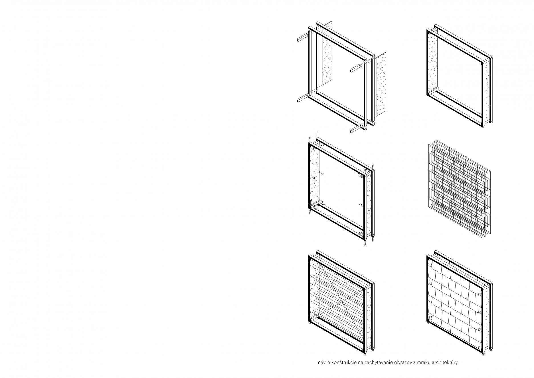 Súbežne s uvažovaním nad mrakom architektúry uvažujem o jeho prepise a vytváram nový druh konštrukcie – mraku. Jej základnou ideou je vytvorenie viacerých plôch zobrazovania obrazov, ktoré sú radené za sebou vyrábajúcu hĺbku, tak ako pracuje ľudská pamäť, pracuje aj táto nástenka, nepodstatné údaje ustupujú do úzadia a sú prekrývané novými obrazmi, podstatné obrazy prerážajú do popredia. Hĺbka konštrukcie umožňuje v sebe pohltiť viacero vrstiev obrazov, čo v praxi s dimenziami (2000 x 2000 x 300 mm) vytvorilo kompaktnú konštrukciu, na rozdiel od predošlej nástenky s jednou zbernou plochou. Po rôznych skúškach osadzovania konštrukcie v priestore som sa rozhodol ju osadiť na kolieska, čo z nej vyrába pohybujúci sa objekt. Takto môžem definovať tento objekt ako figúru s dynamickým pozadím, čo je vlastne protiklad statickej nástenky.