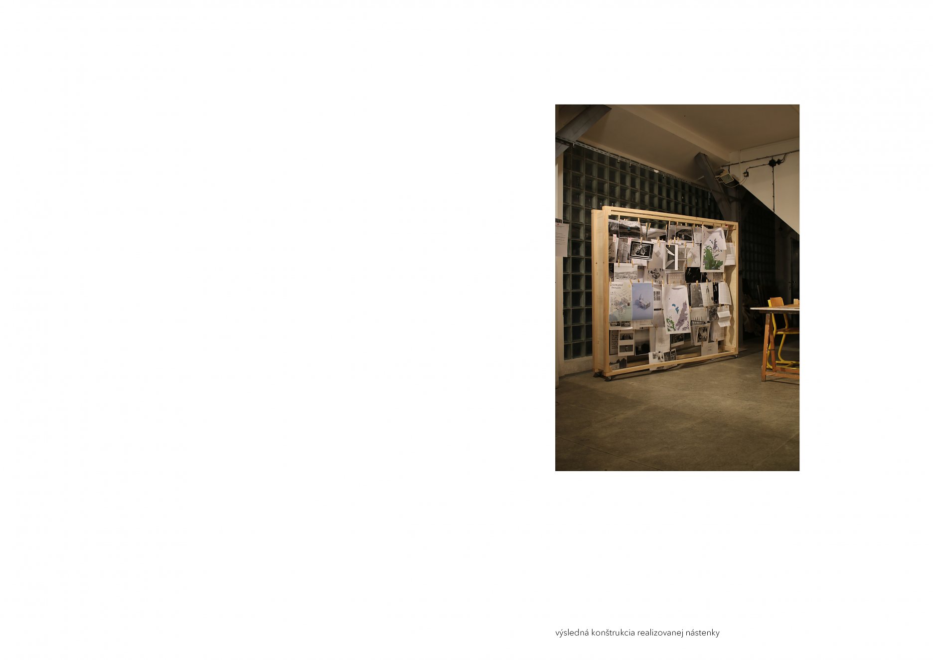 Premýšľam o architektúre ako o mraku, ktorý je nejednoznačný, plný/prázdny, nestály, nejasný. Frustrácia, fragment, absencia témy, absencia smeru, pluralita, prekrývanie, preplnenosť, otupenosť to sú pojmy, ktoré sa objavujú v súčasnej architektúre. Mrak/architektúru zaznamenávam v nástenkách. Z nástenky vyberám pojmy, ktoré rozpracovávam ako projekty.